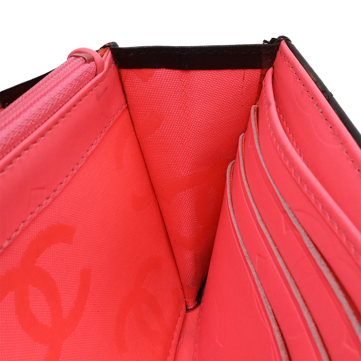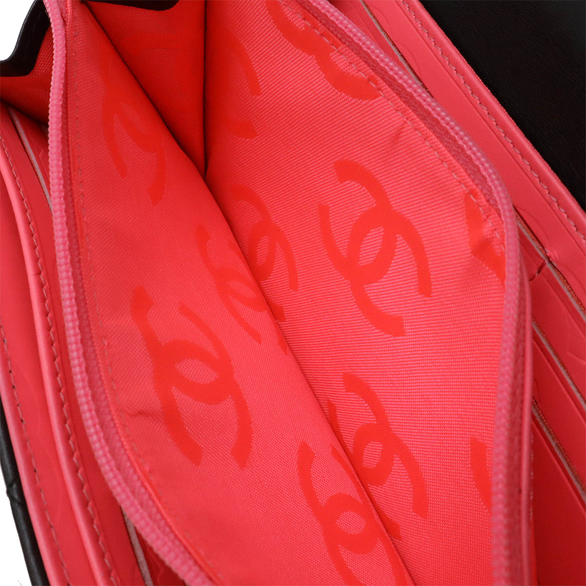 Chanel Cambon Line Bifold Long Wallet Soft Calf/Enamel Black Pink A50077