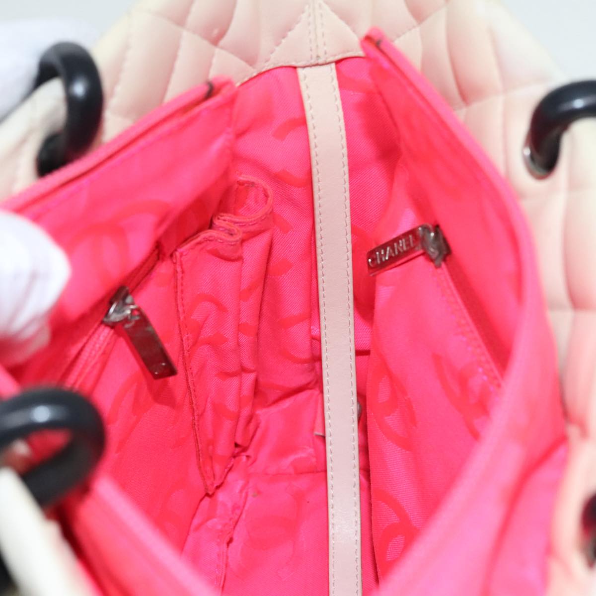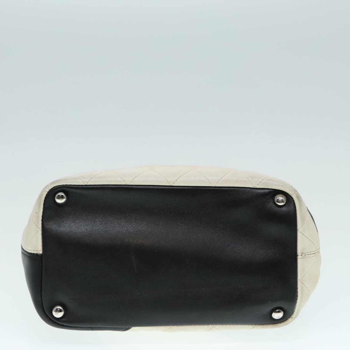 CHANEL Cambon Line Hand Bag Leather White Silver black CC bs17836