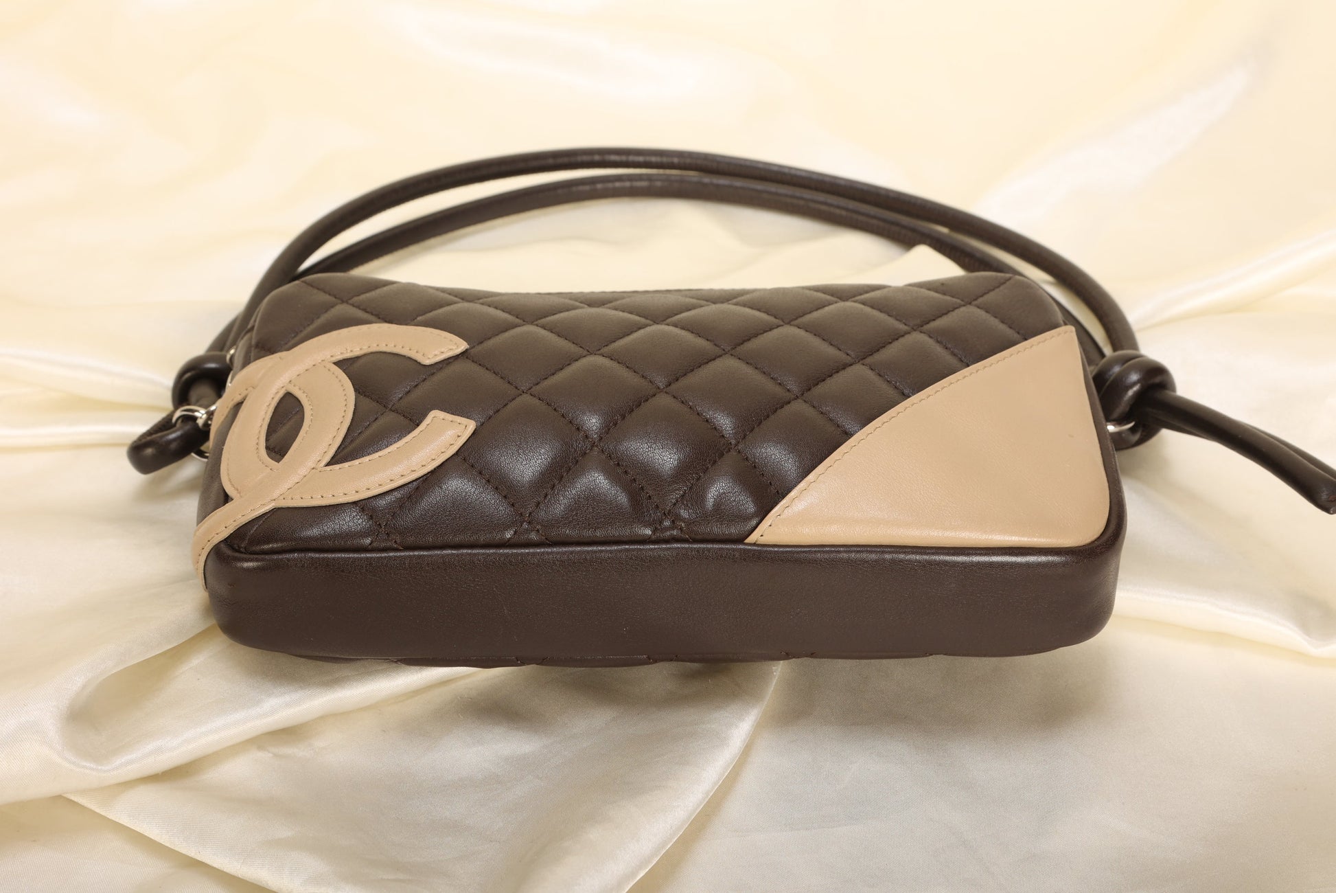 The chocolate brown color is complemented by a sand-colored CC logo, making it a versatile accessory that will pair beautifully with any outfit. The compact size of the pochette makes it perfect for carrying your essentials on the go, while the calfskin leather ensures that it will last for years to come.??The striking neon orange interior interior provides a bold pop to this classic vintage piece.