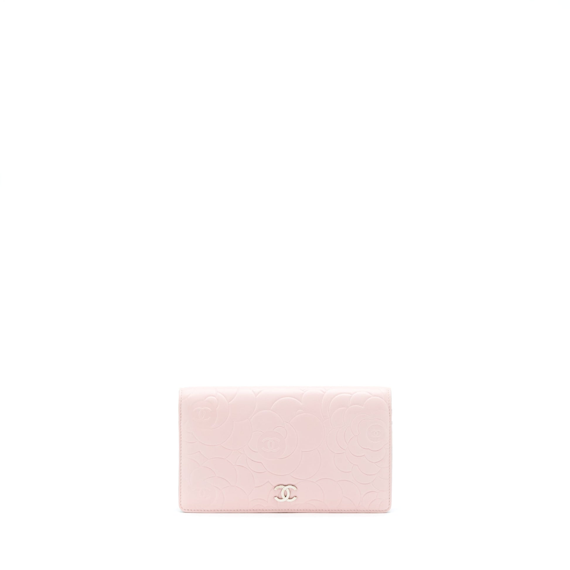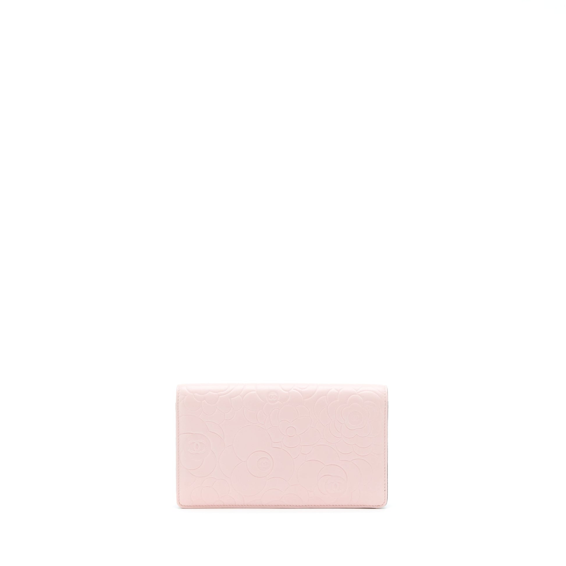 Chanel Camellia Long Wallet Lambskin Light Pink/Dark Brown SHW
