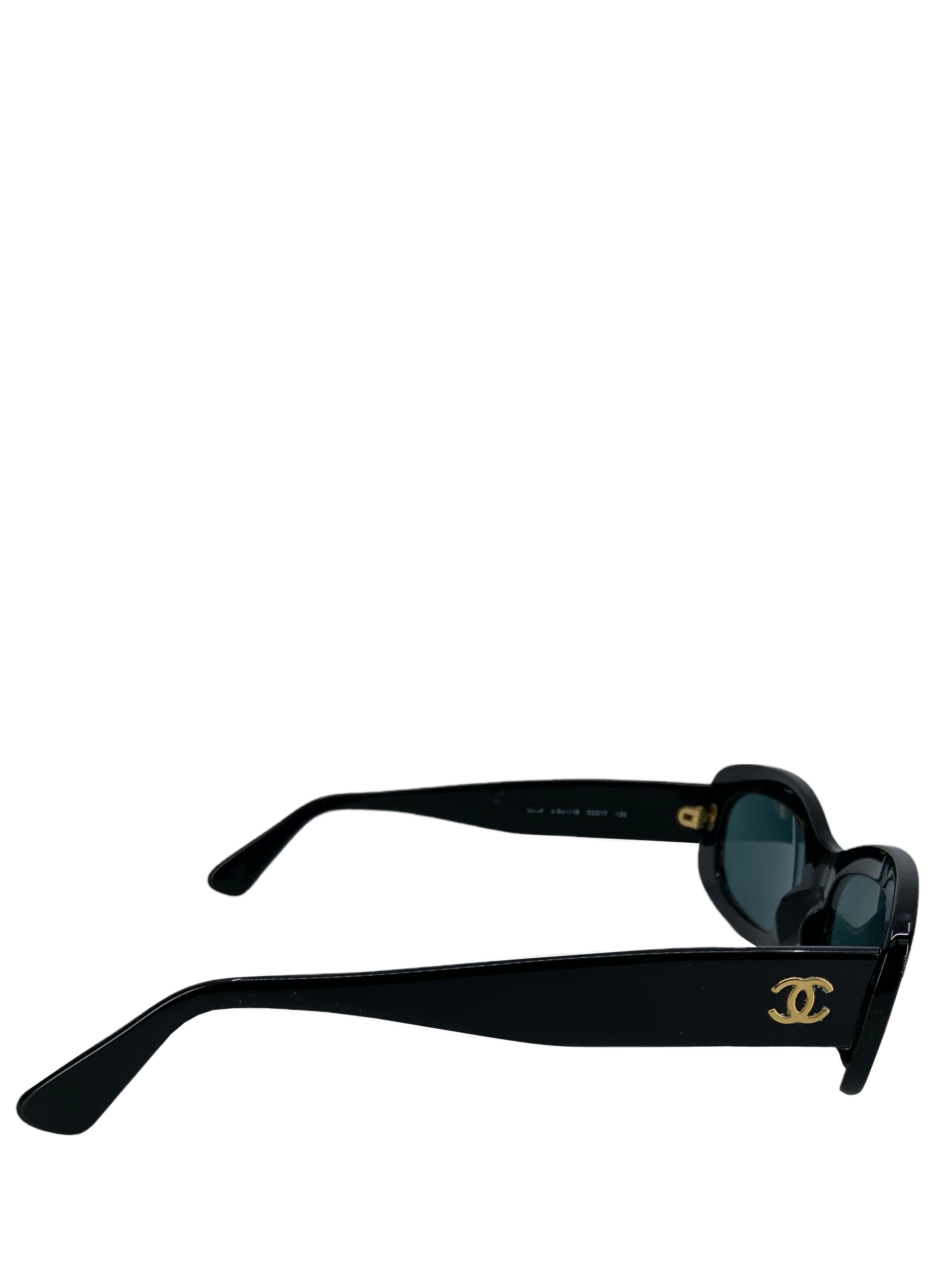 Add to your collection this?d pair of Chanel Camellia Flower CC Sunglasses 5054 featuring?black acetate frames and?signature 'CC' and Camellia flower?accents on each temple.