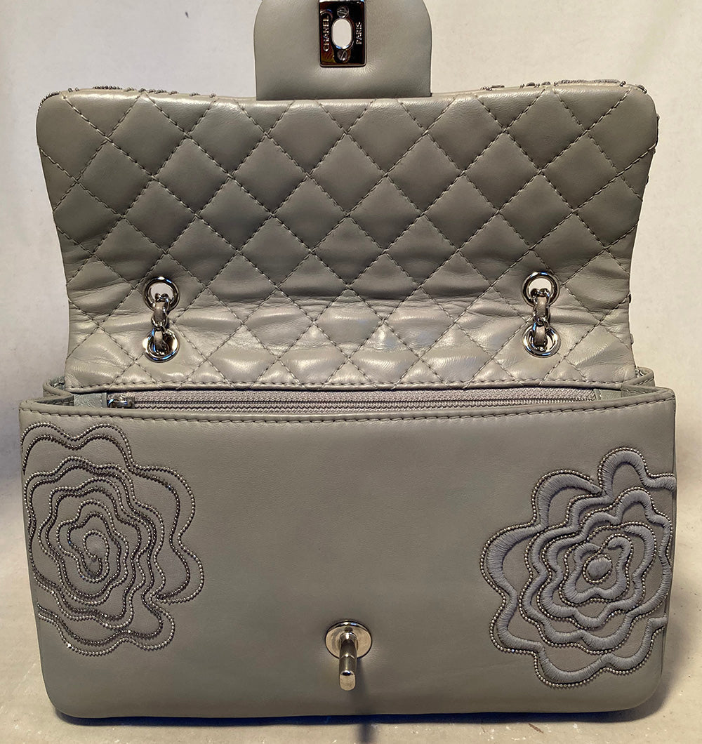 Chanel Camellia Follies Embroidered Medium Classic Flap Excellent condition. measurements: 10x6x2" 10.5-19" strap