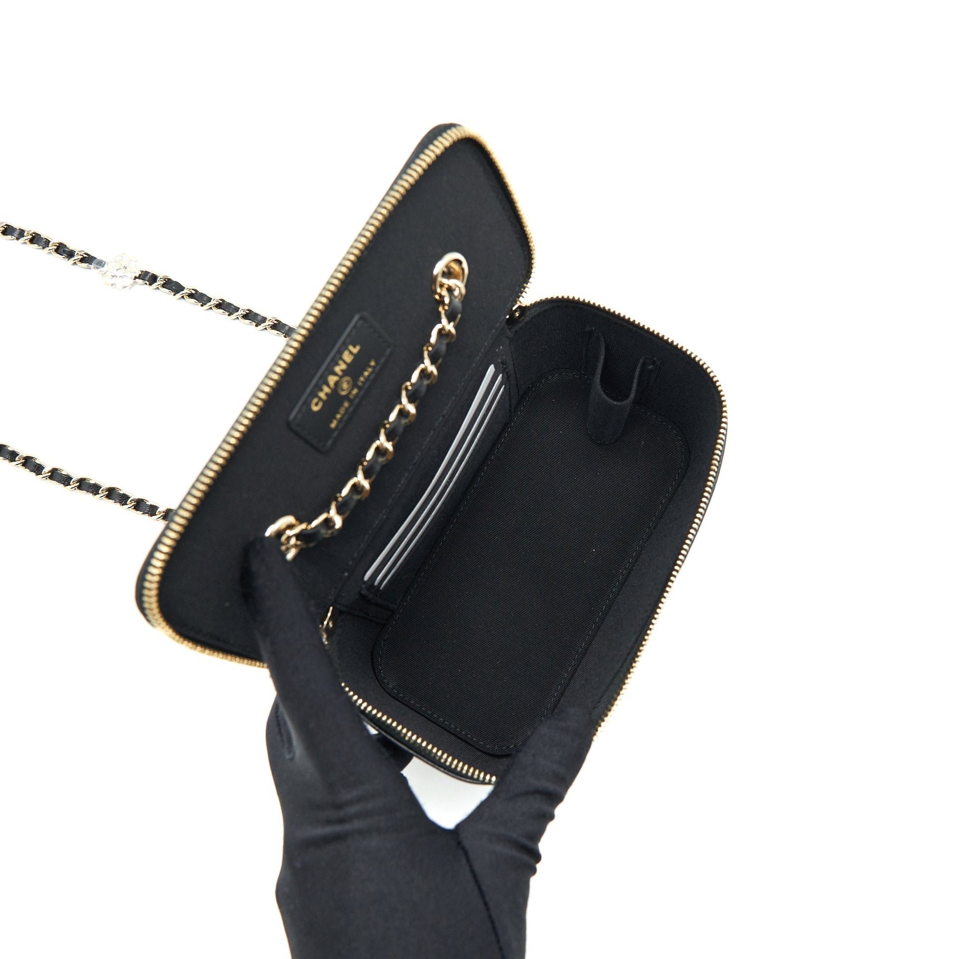 Chanel Camellia Long vanity with chains lambskin black LGHW