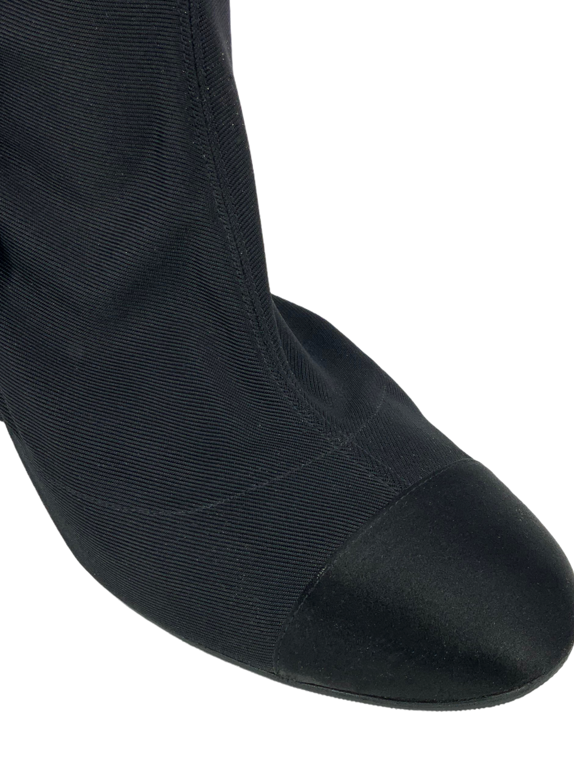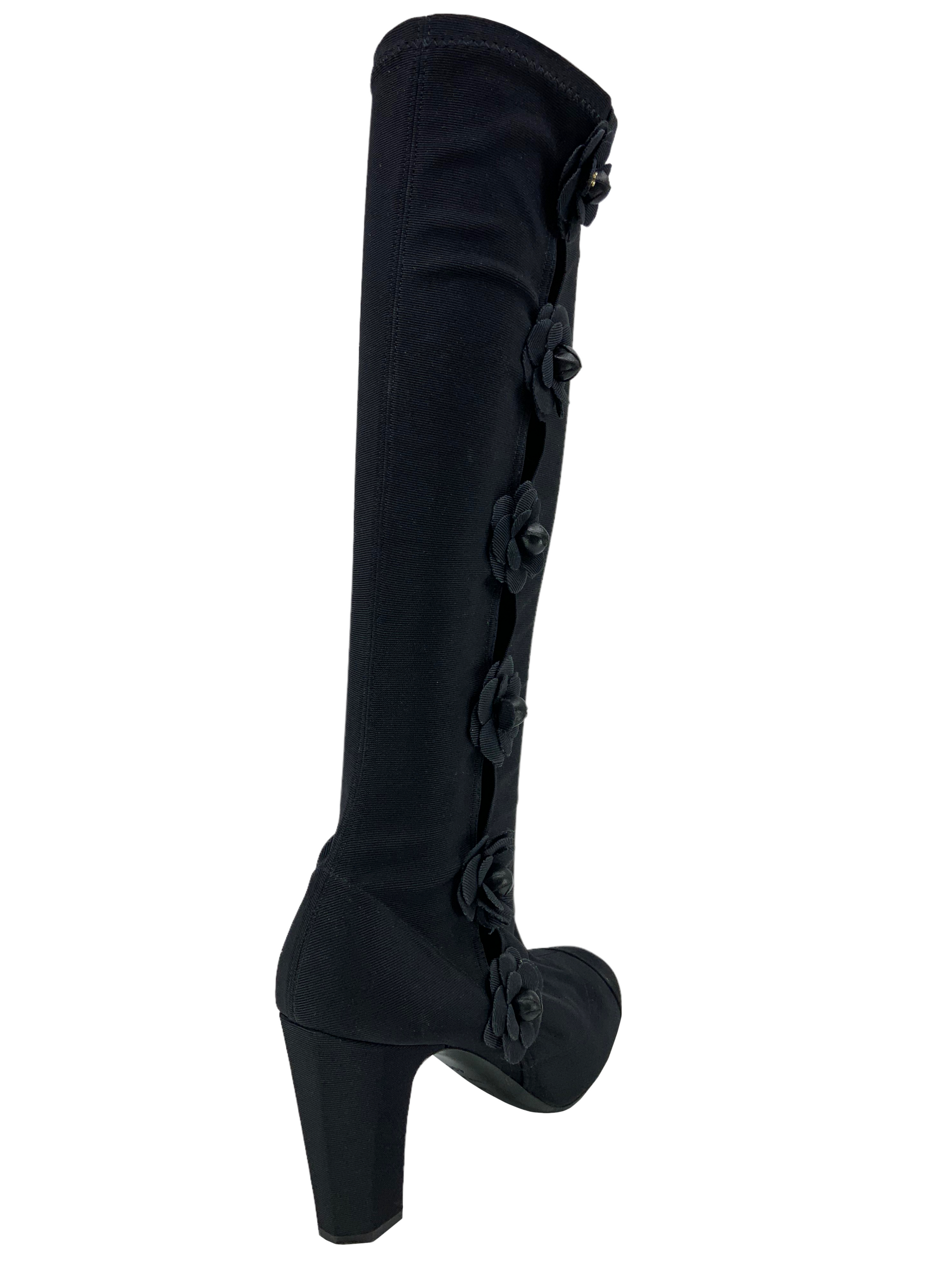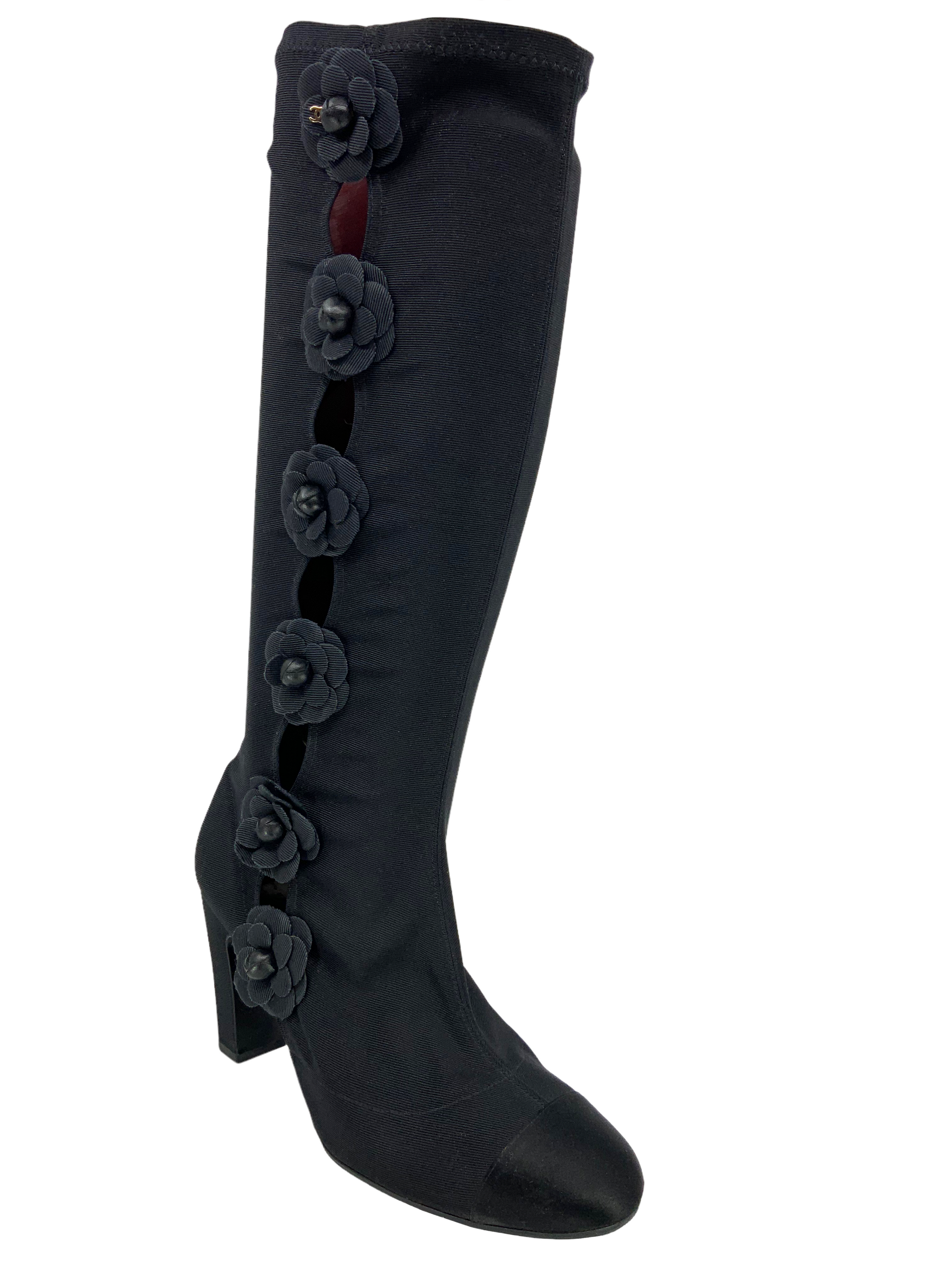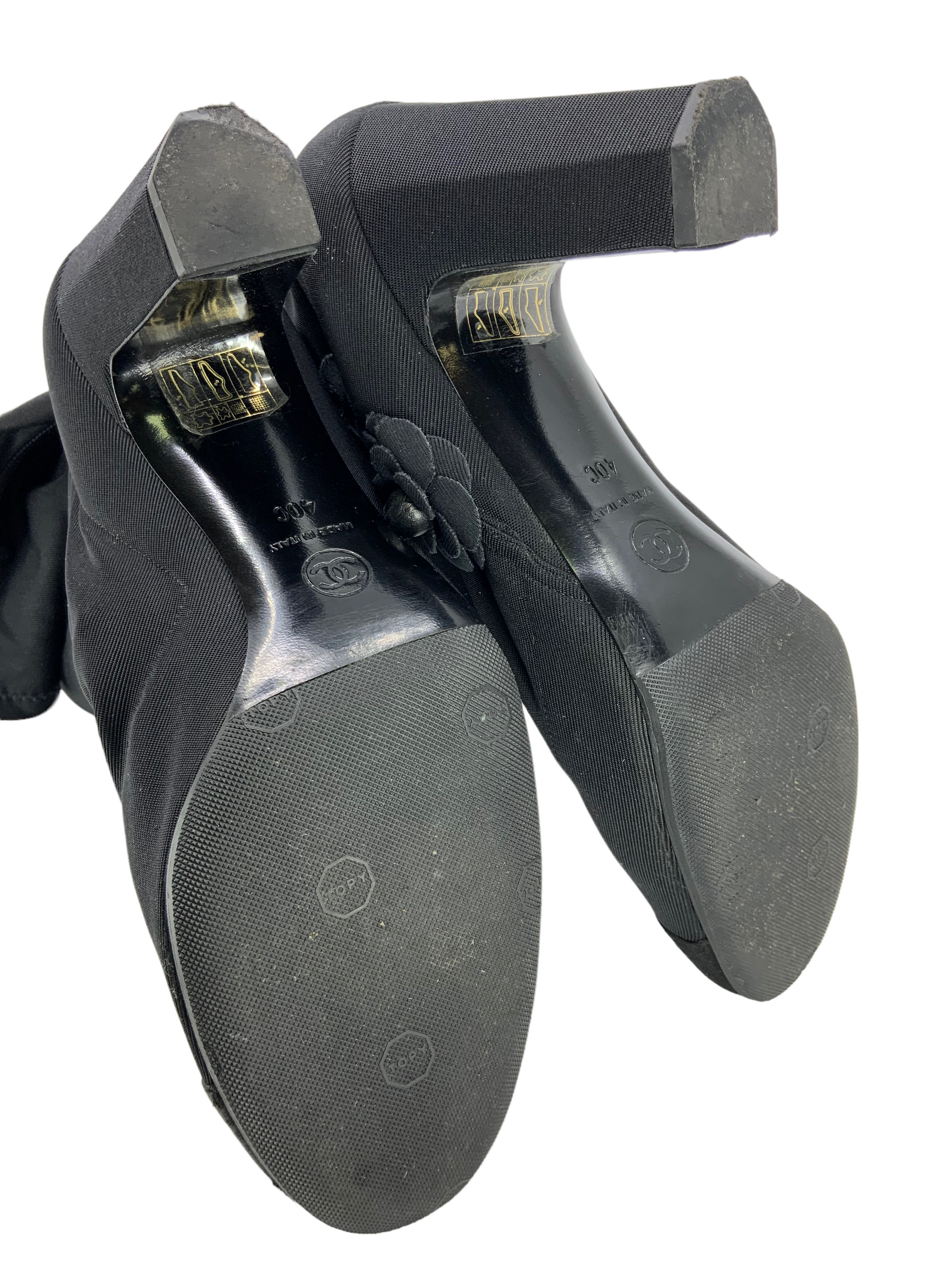 CHANEL Camellia Satin Sock Mid Calf Boots Size 10