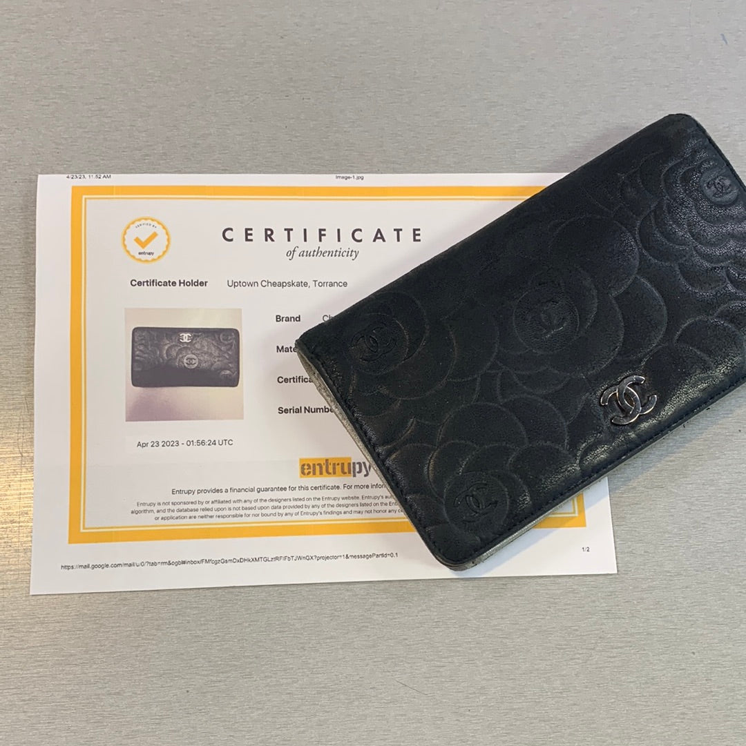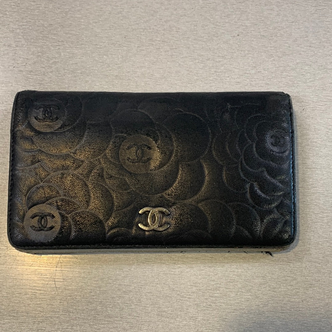 Chanel Camellia Wallet This embossed wallet does have some signs of wear. Comes with