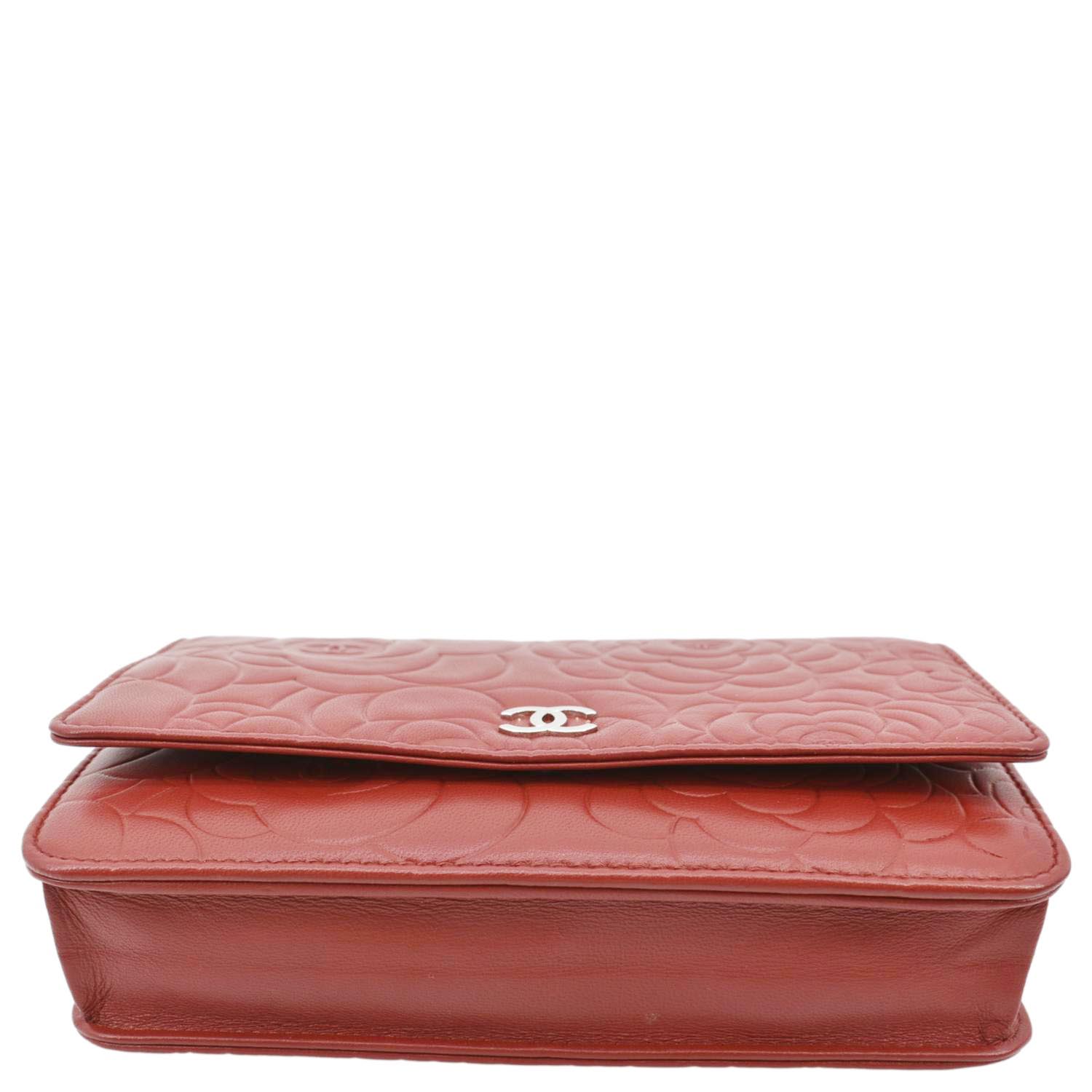 CHANEL Camellia Wallet On Chain Leather Woc Crossbody Bag Red
