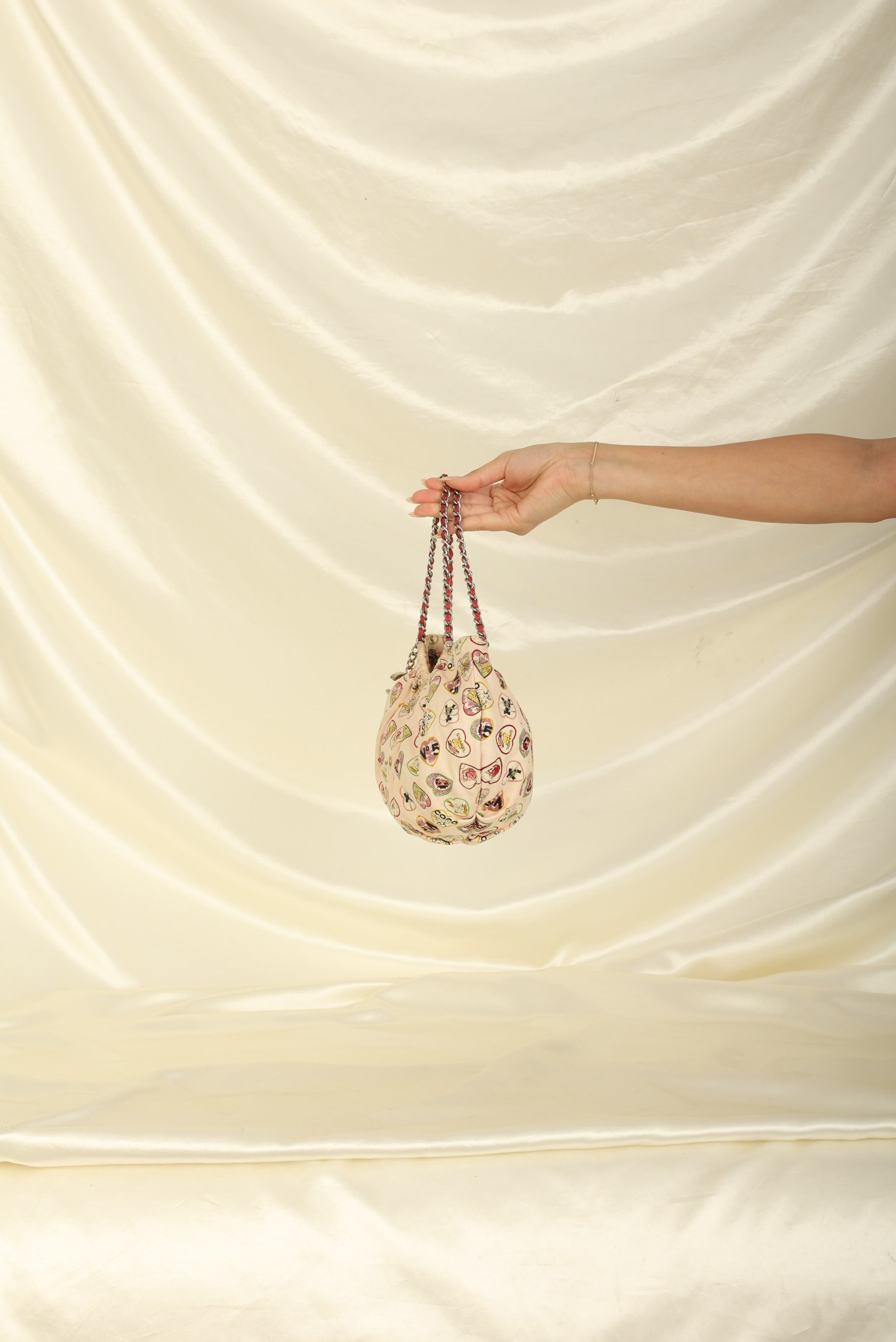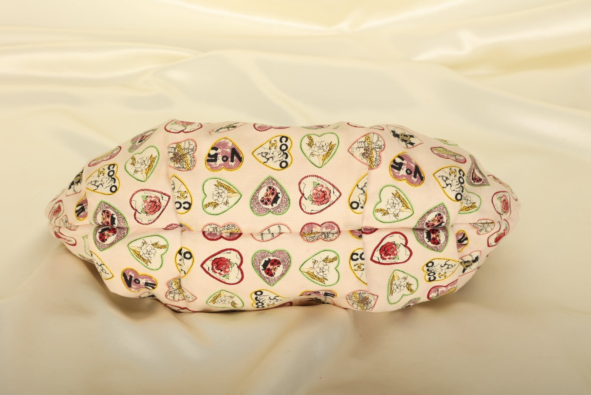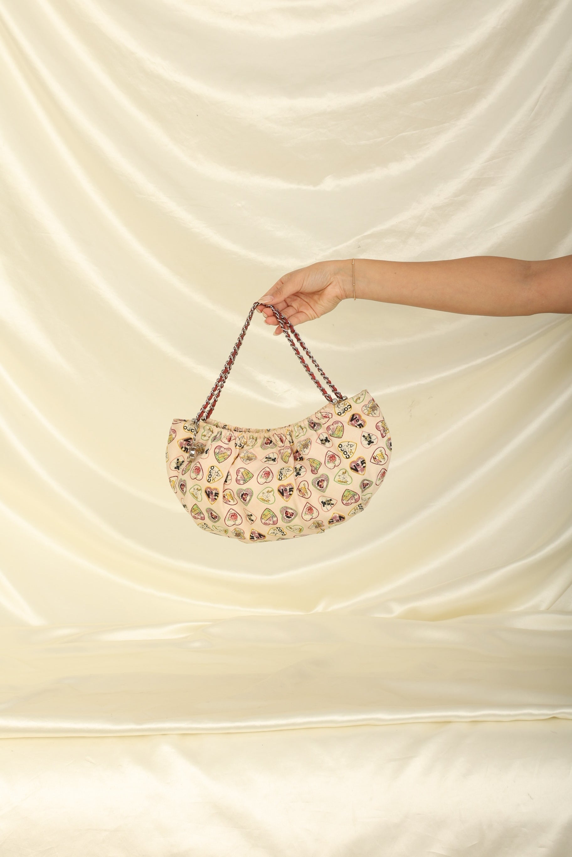 Dropping in the shop is this fun Chanel Canvas Heart Icon Pochette! A collector's piece that will add such charm to your collection! Crafted from canvas material, the bag features?adorable Chanel "Coco heart" motifs laid out on a baby pink canvas with a dark red leather strap and silver hardware. The bag closes with a magnetic closure and is large enough to fit your phone, keys, wallet, sunglasses, and a few other smaller essentials.?