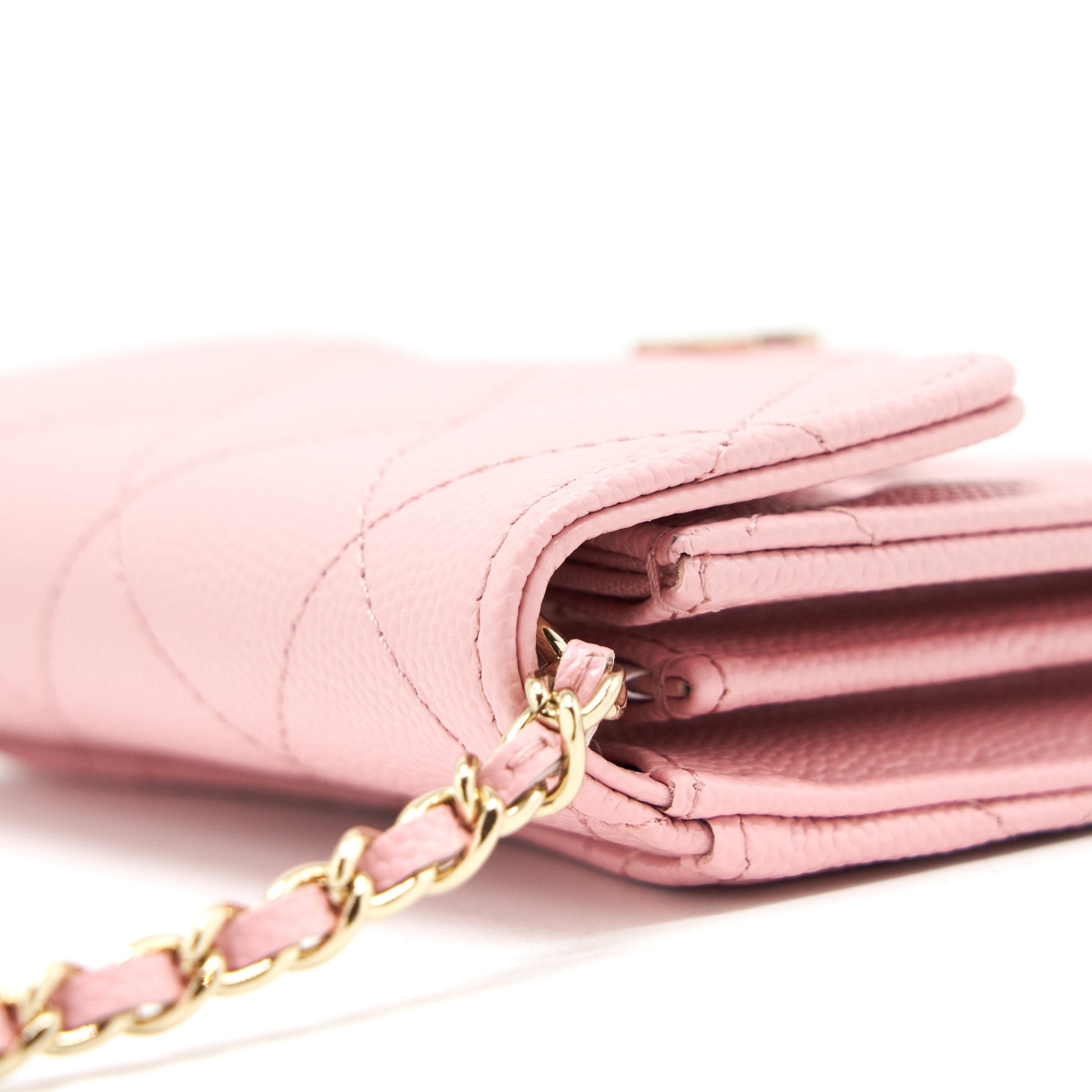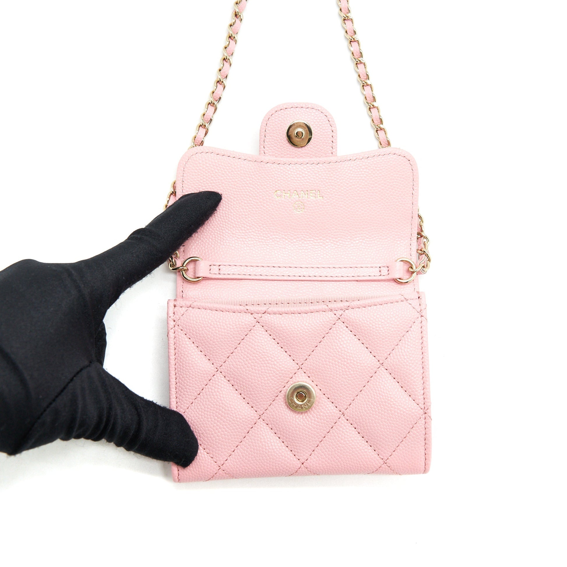 Chanel Card Holder On Chain Caviar Pink LGHW