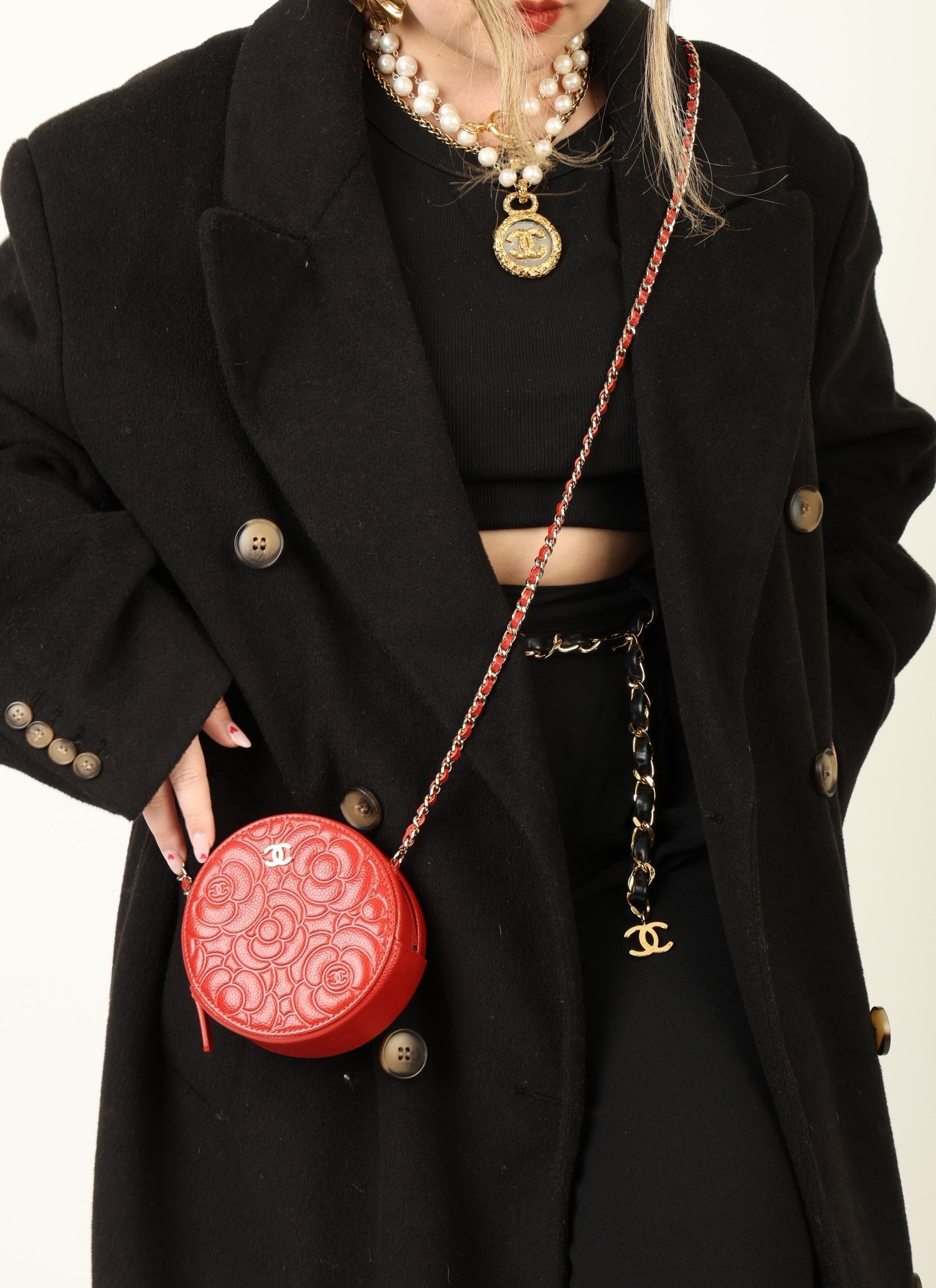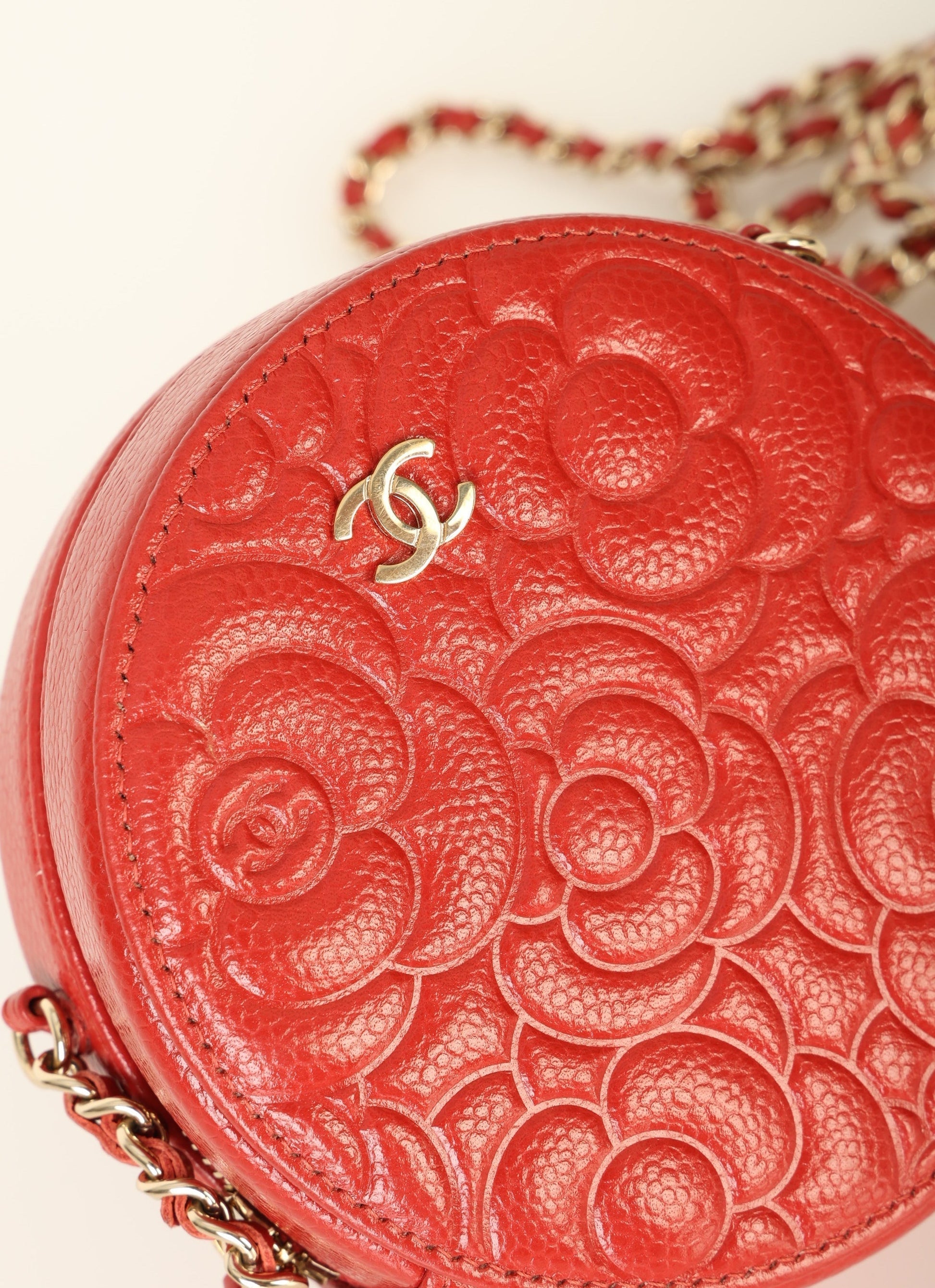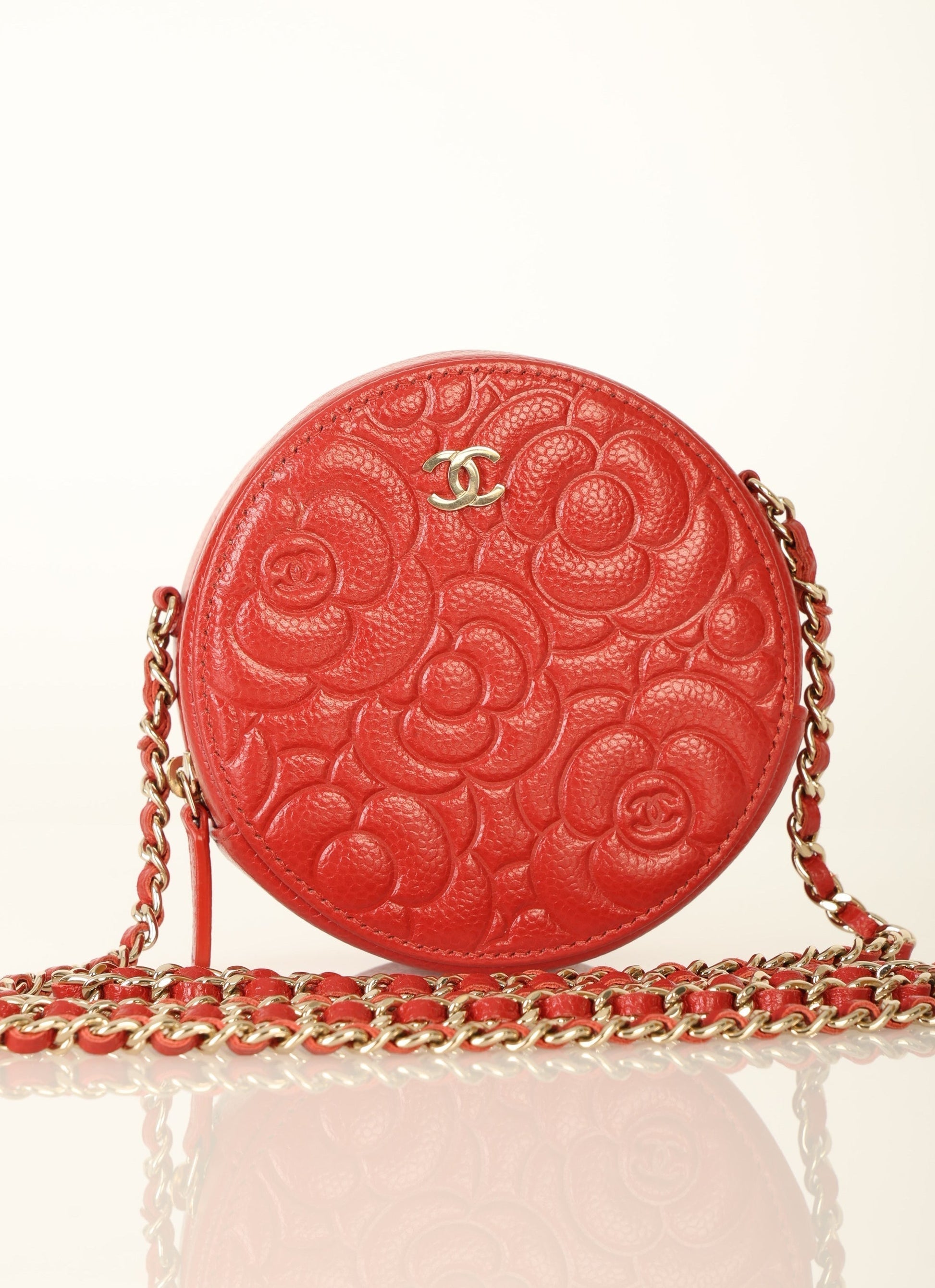 Dropping in the shop is a Chanel Caviar Camellia Crossbody in red with champagne gold hardware! Camellias are embossed throughout the front and back of the bag and the front features a little CC logo. Such a fun little bag to grab when you're feeling like wearing a pop of color. The interior features three compartments, two being smaller slots. You can fit your cardholder, keys, and a few other smaller essentials.?