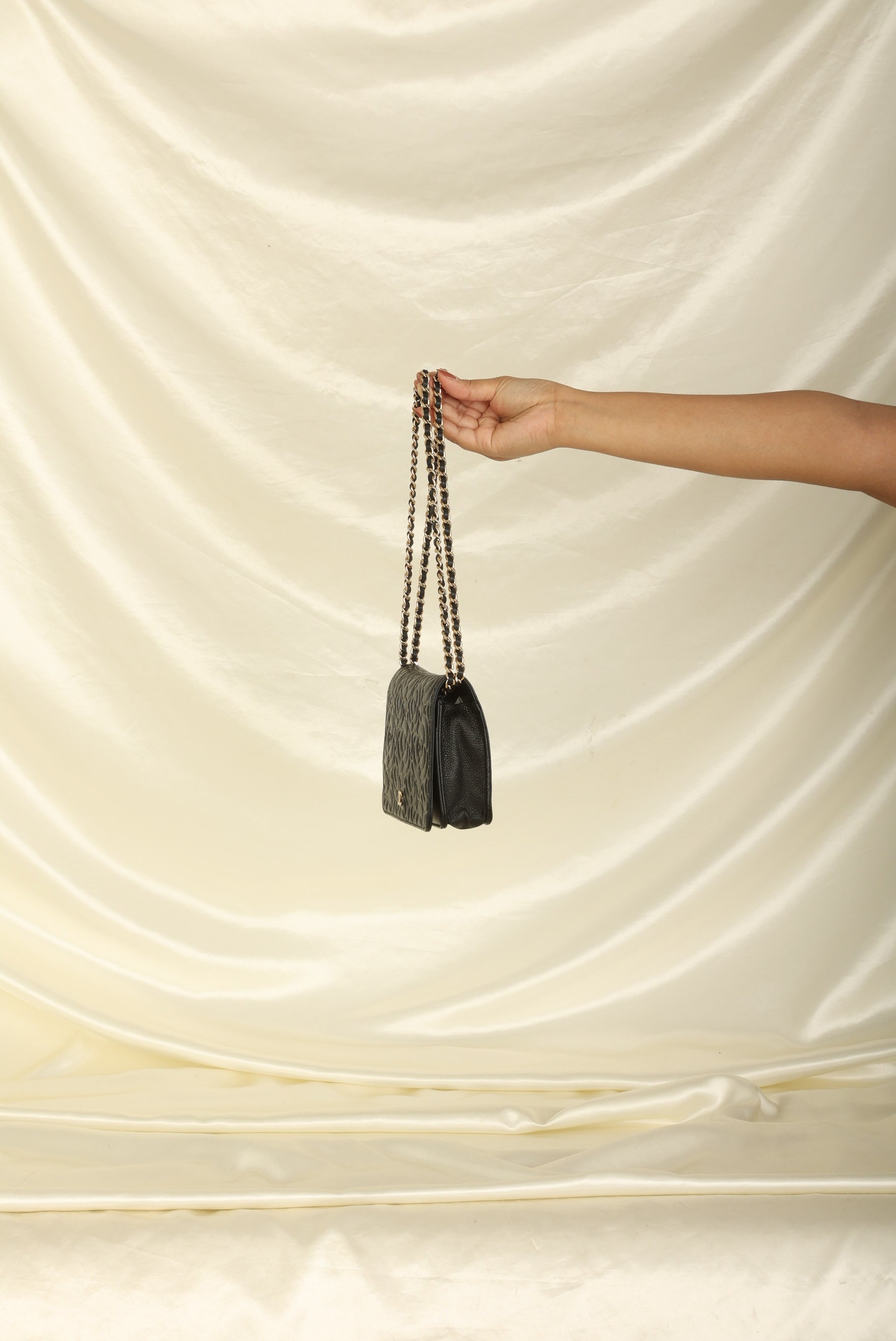This versatile bag can be in multiple ways, making it the perfect accessory for any occasion. Wear it as a shoulder bag or crossbody for a chic and stylish look, or tuck in?the chain strap and use it as a clutch for a more formal event. The spacious interior provides ample room for your phone and a few smaller essentials, while the multiple card slots and zippered pockets keep your belongings organized and secure.