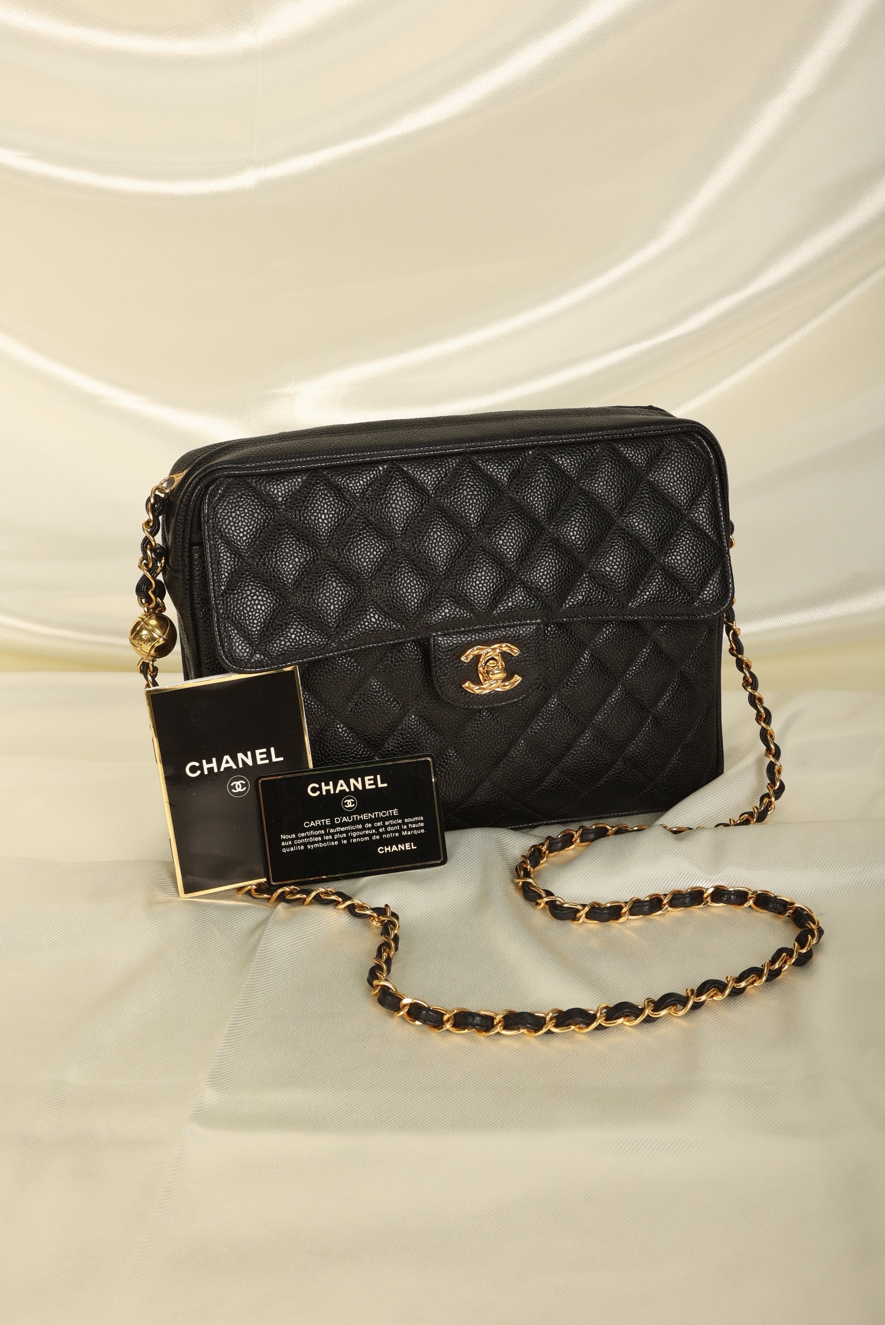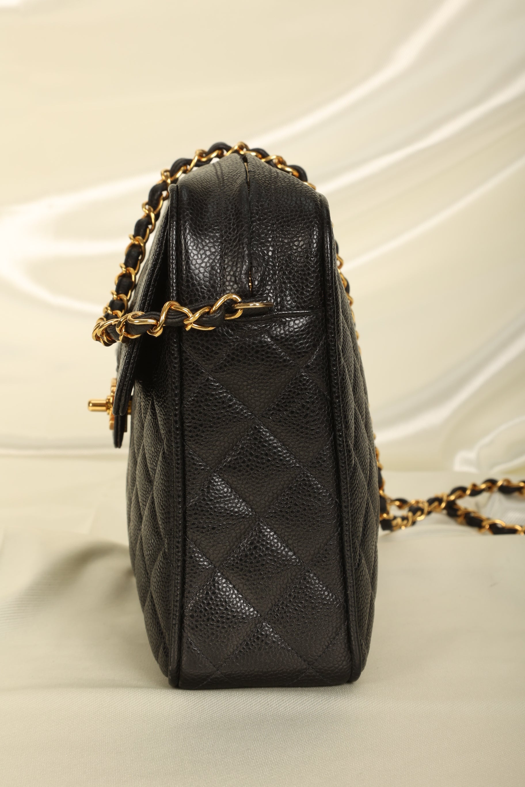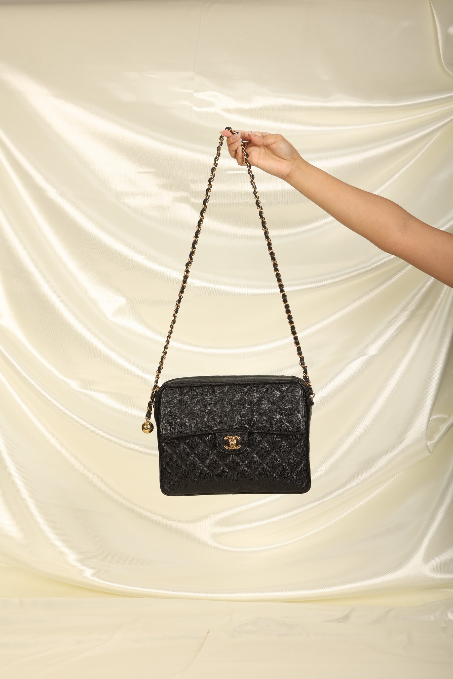 A??exquisite accessory that combines timeless elegance with practical luxury! Crafted from durable caviar leather, this camera bag features the iconic Coco Crush turnlock design in 24K gold plating, making it a standout piece that is sure to catch the eye of any fashionista.