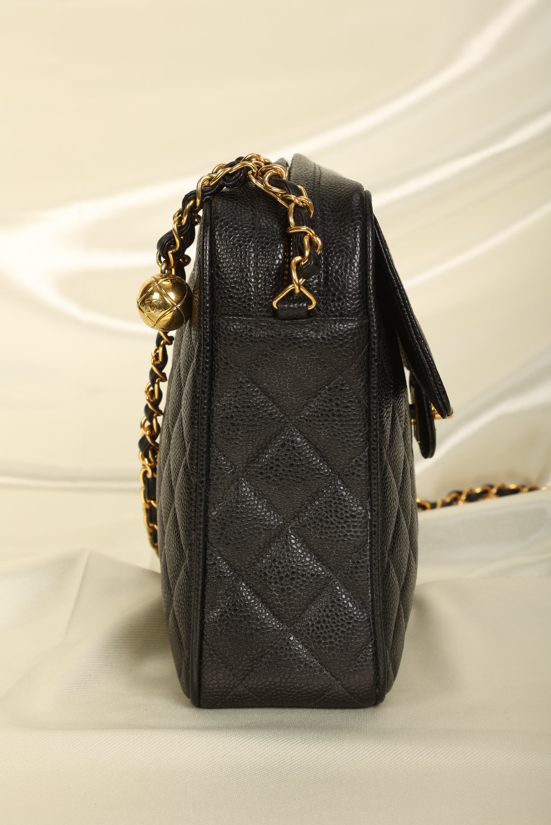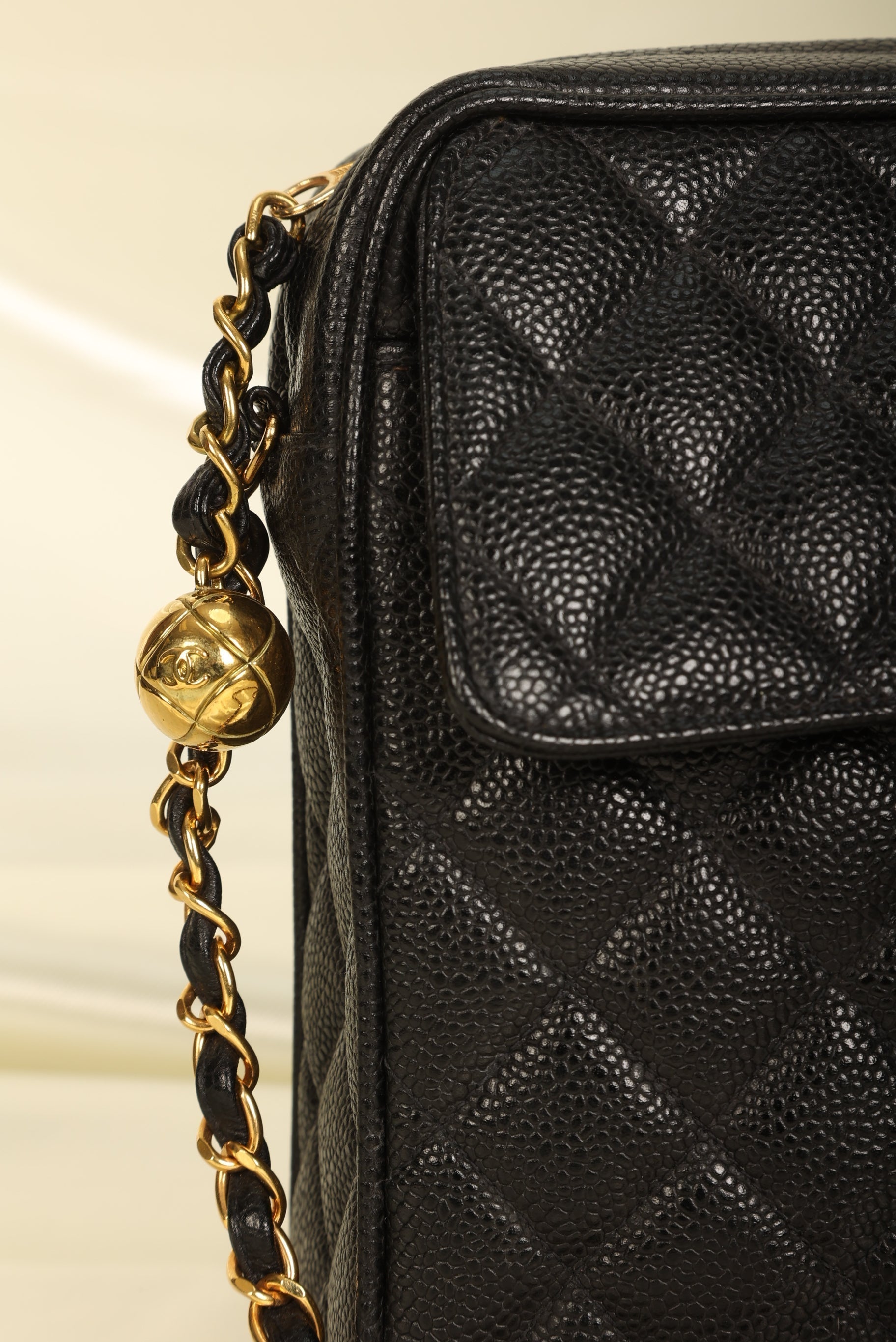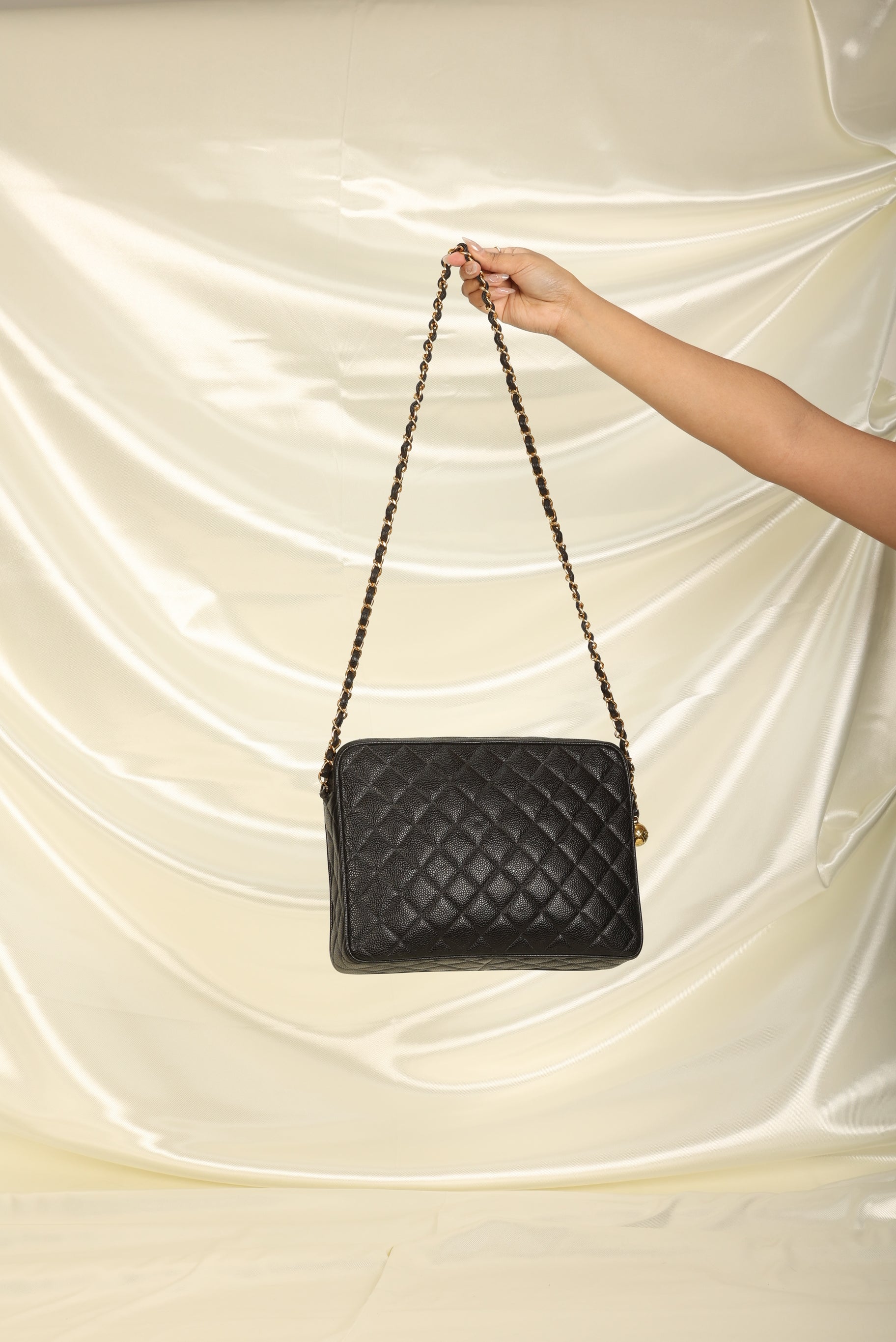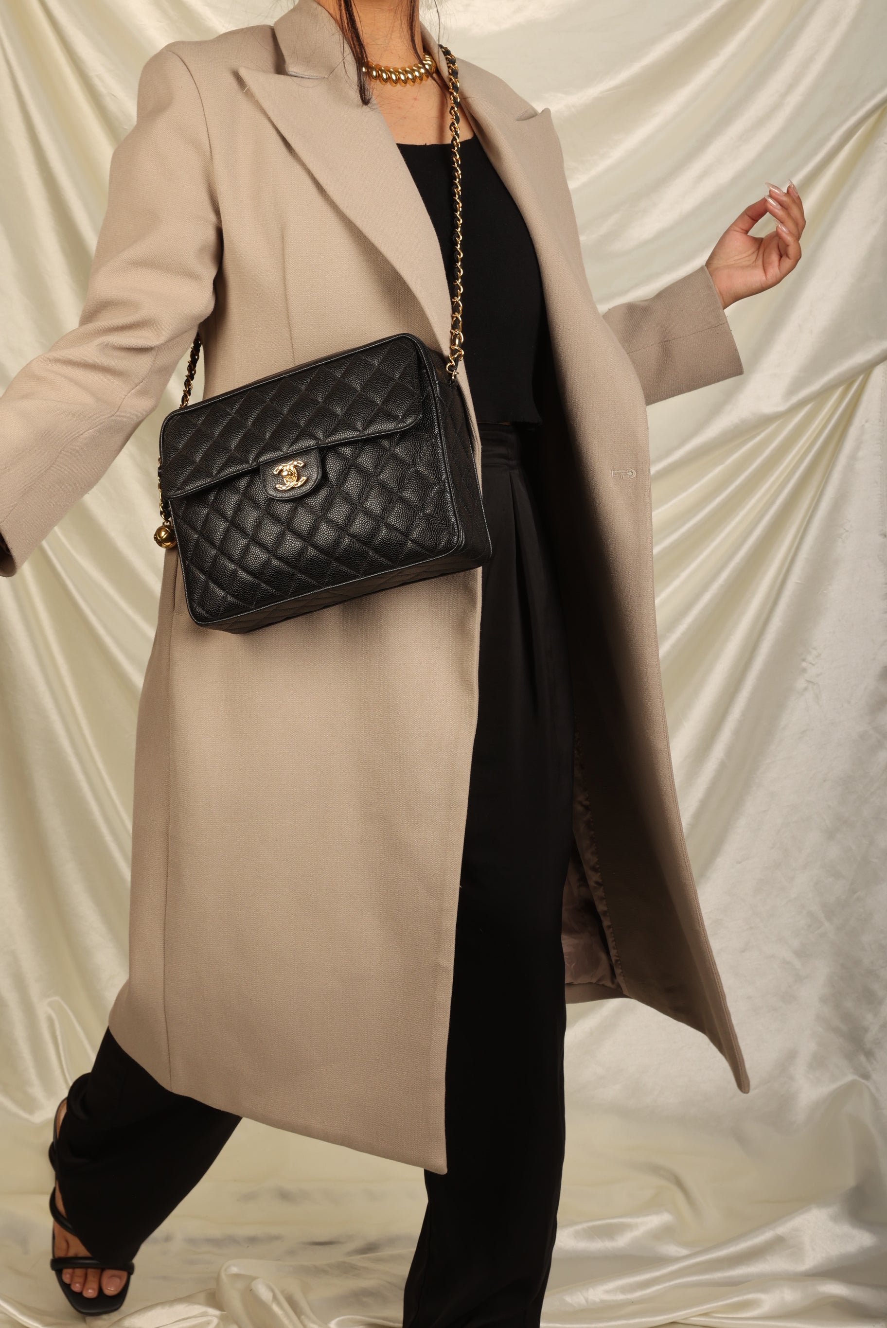 A??exquisite accessory that combines timeless elegance with practical luxury! Crafted from durable caviar leather, this camera bag features the iconic Coco Crush turnlock design in 24K gold plating, making it a standout piece that is sure to catch the eye of any fashionista.