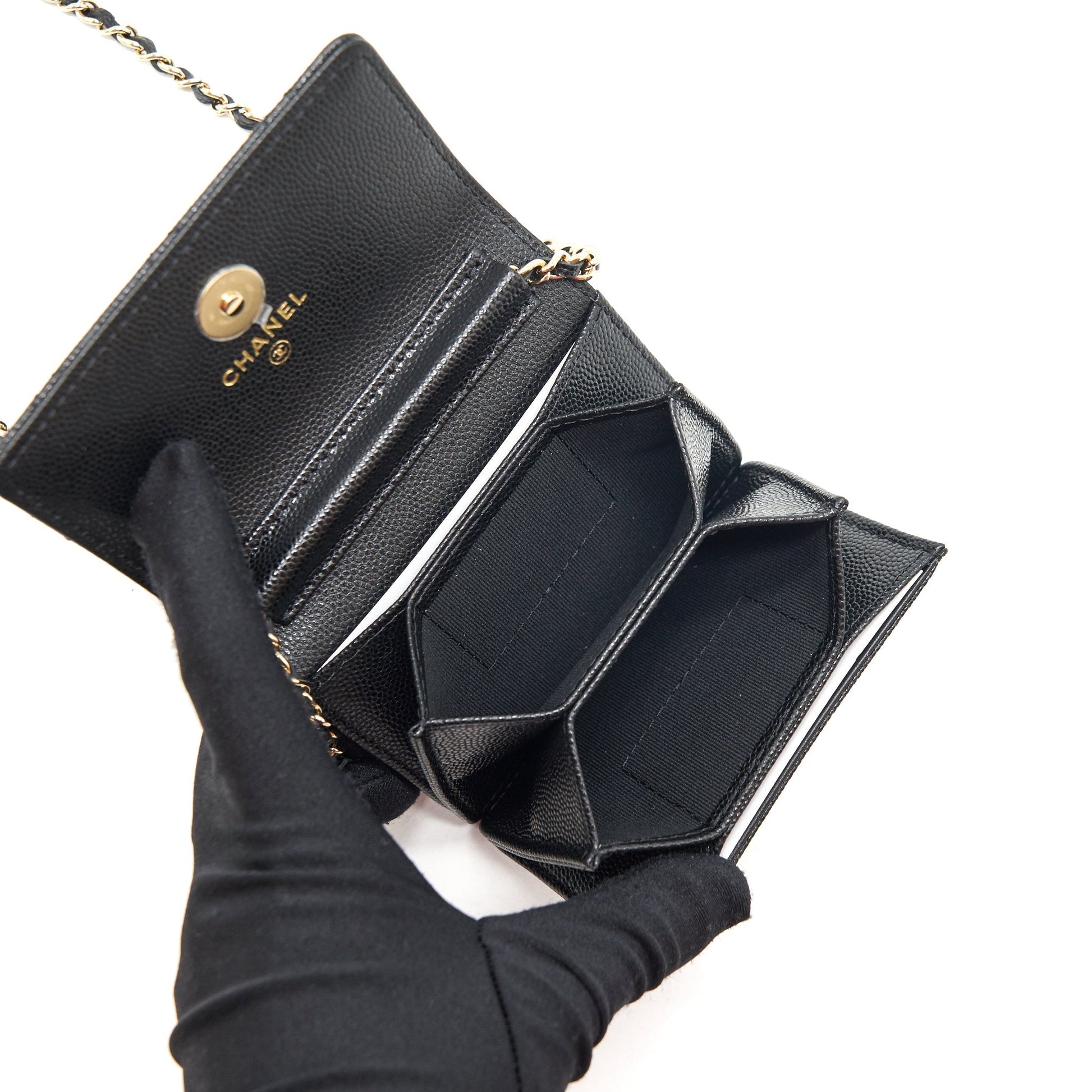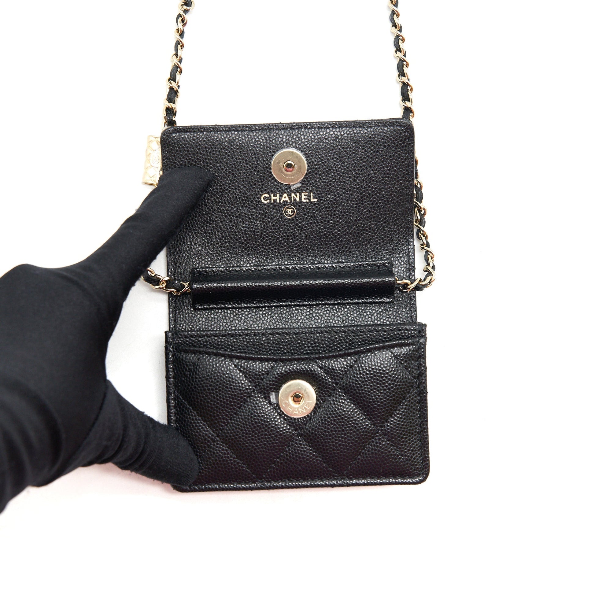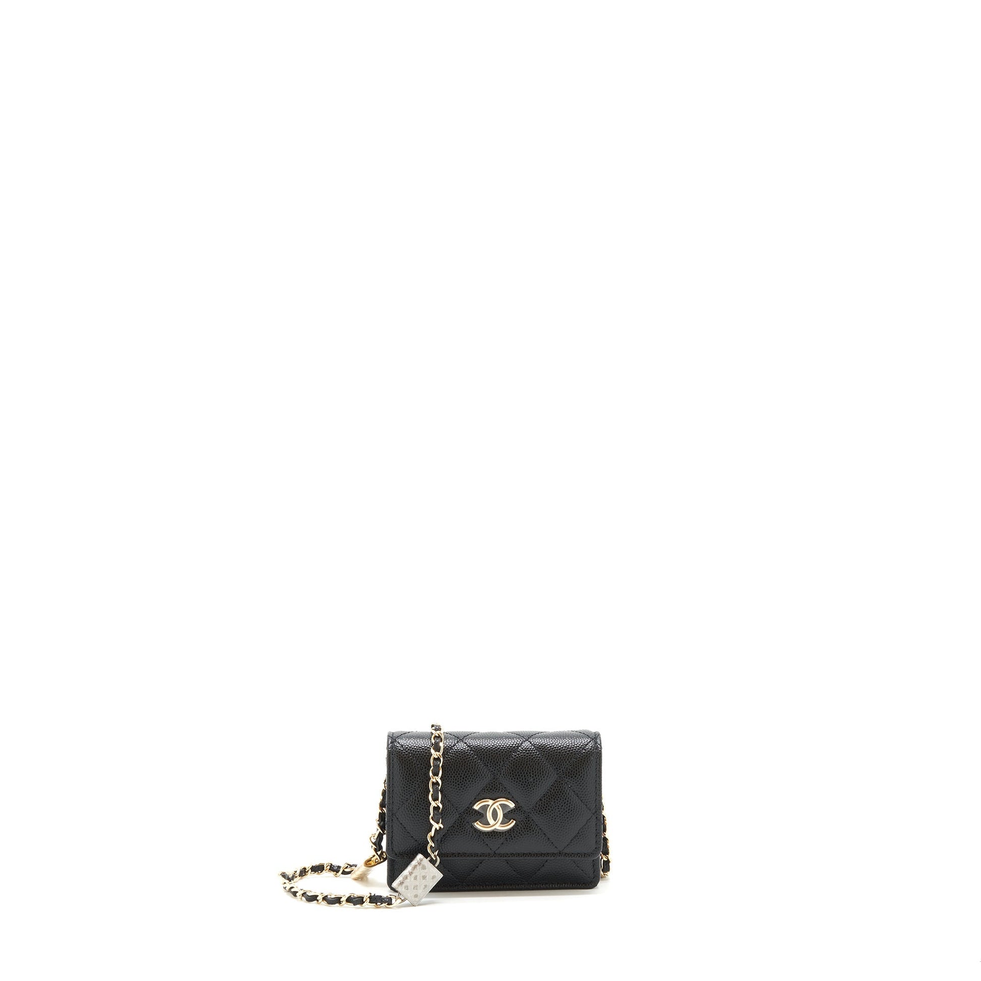 Chanel Caviar Card Holer with chain and bag charm Black LGHW