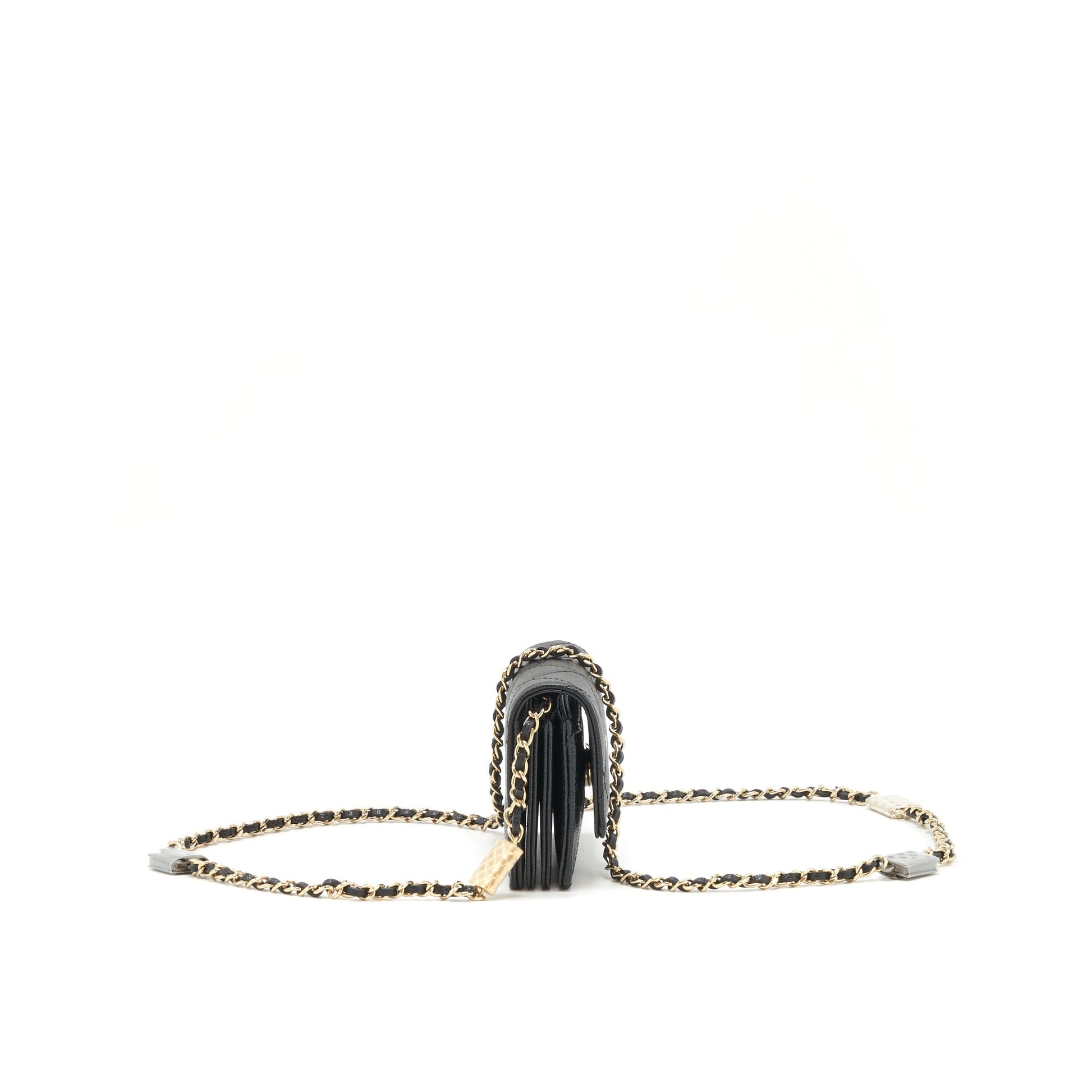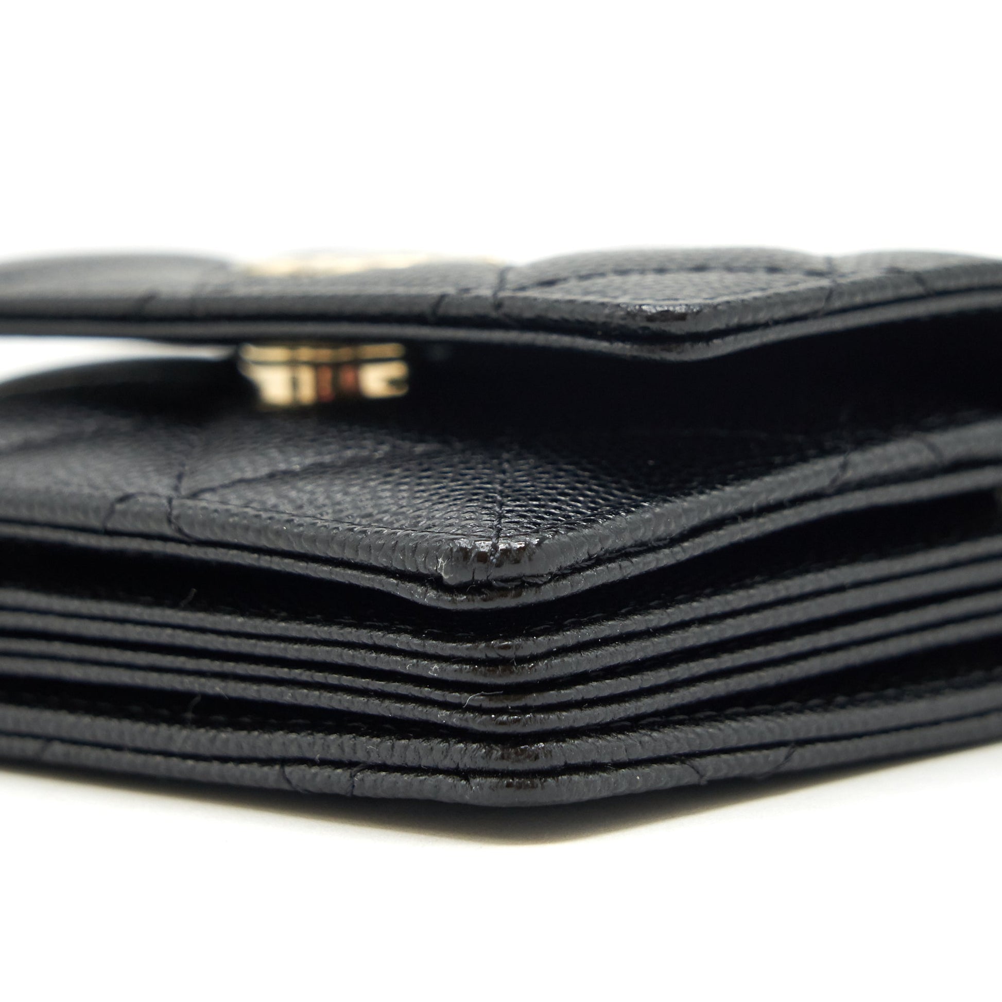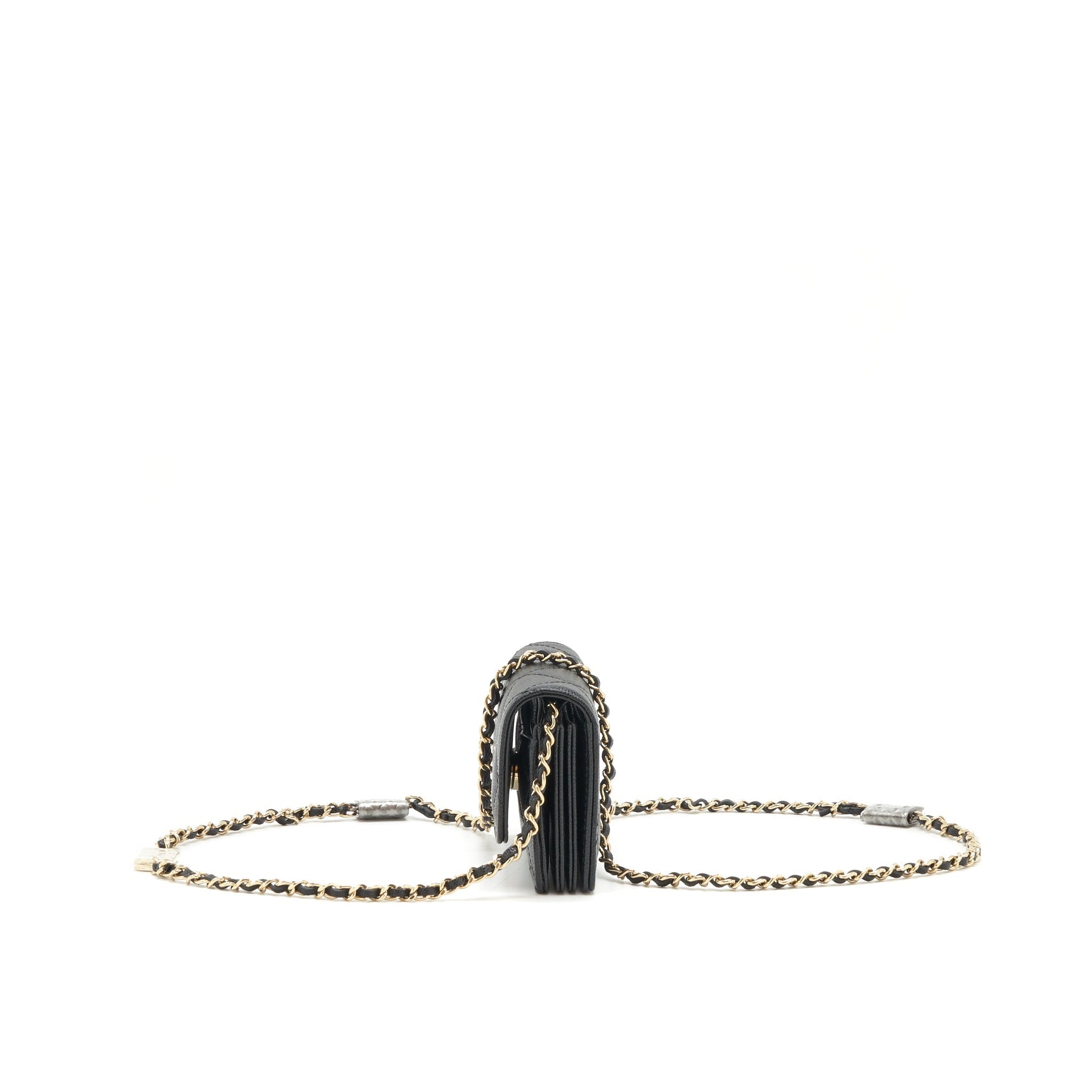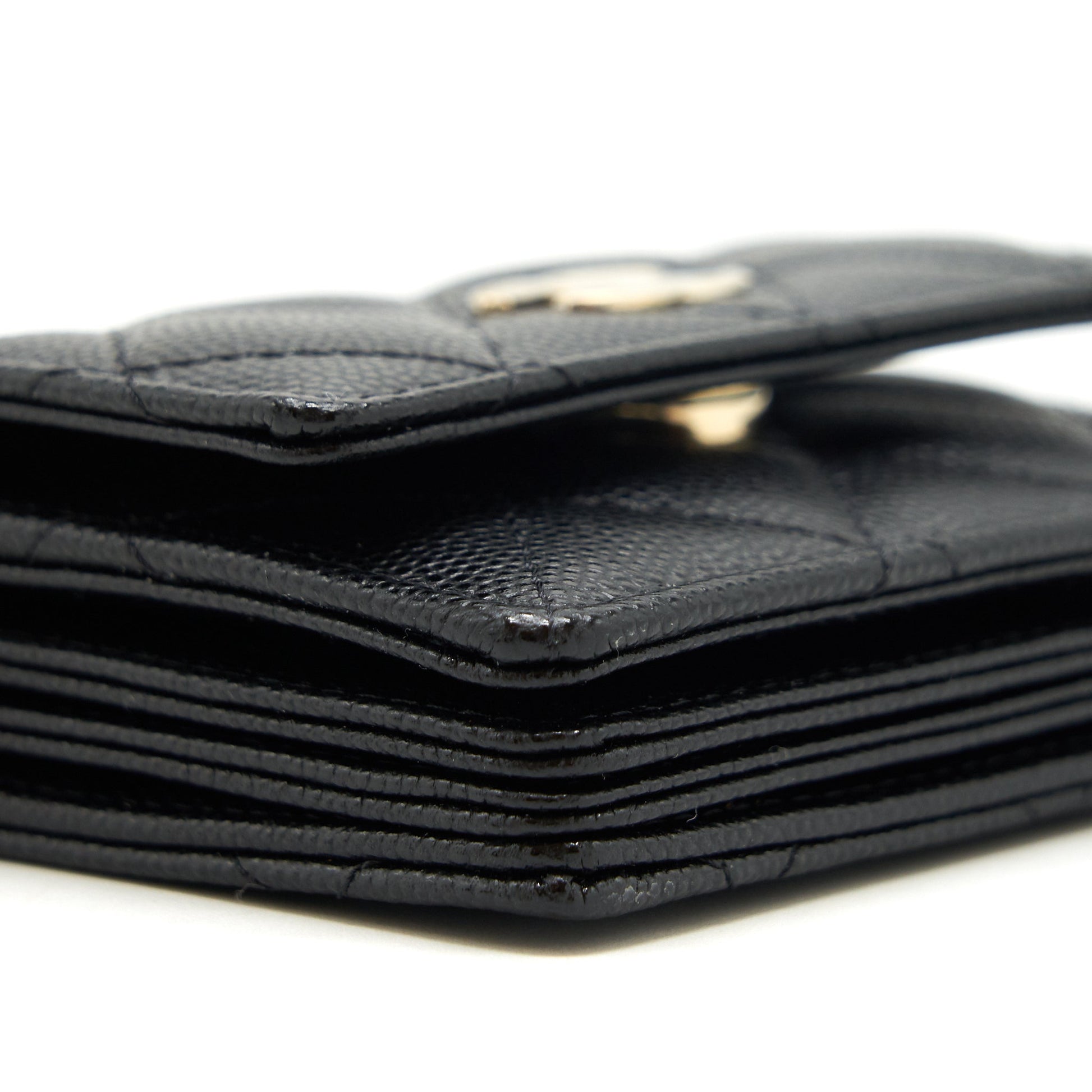 Chanel Caviar Card Holer with chain and bag charm Black LGHW