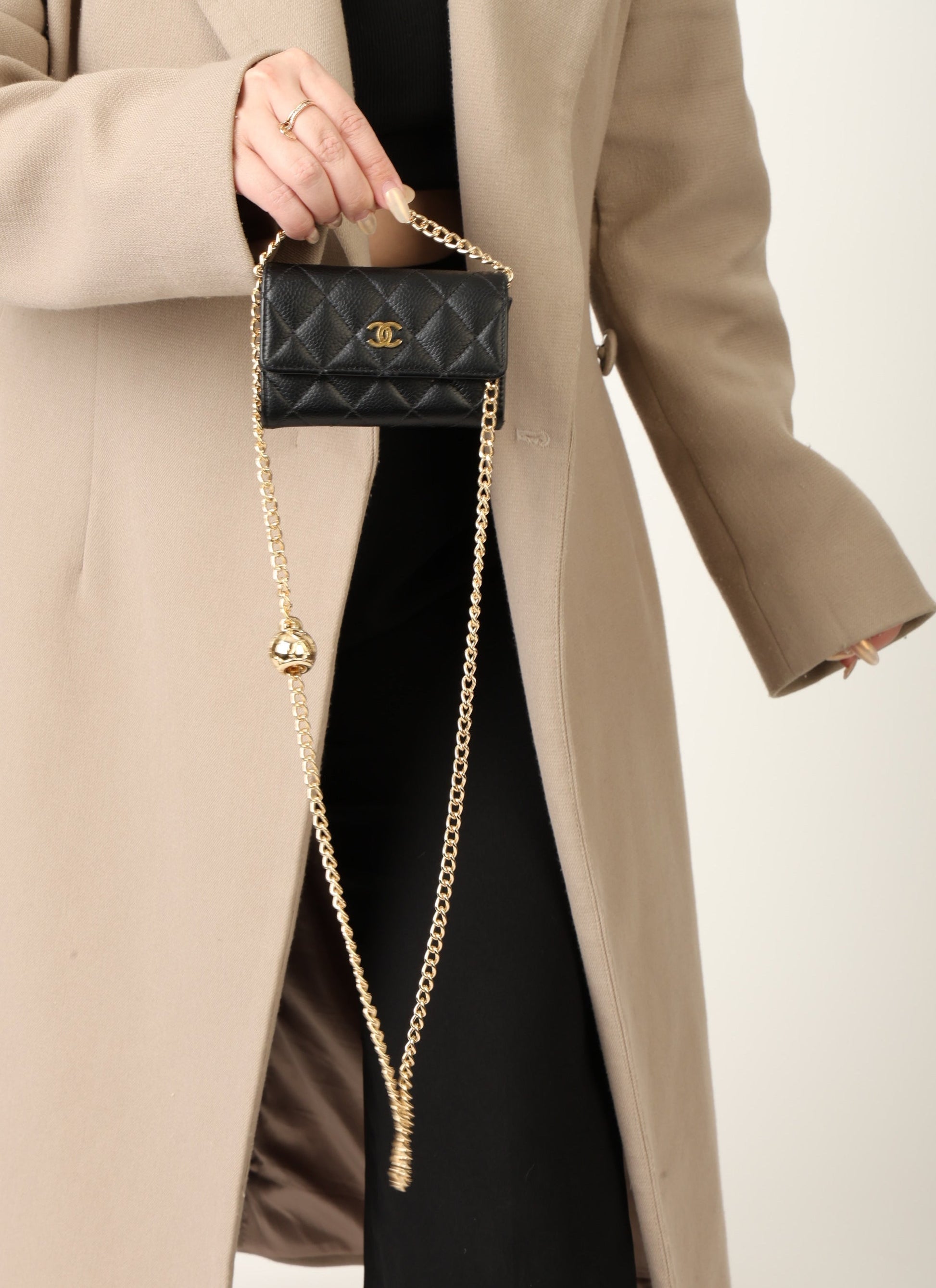 Dropping in the shop is a classic Chanel Caviar Cardholder w/ Chain in black with gold hardware!?We've even included a generic chain to use as a crossbody or short-shoulder bag. This cutie can be on its own for the minimalist girlies/guys out there or thrown into a larger bag. You can fit multiple cards, cash, and coins.?