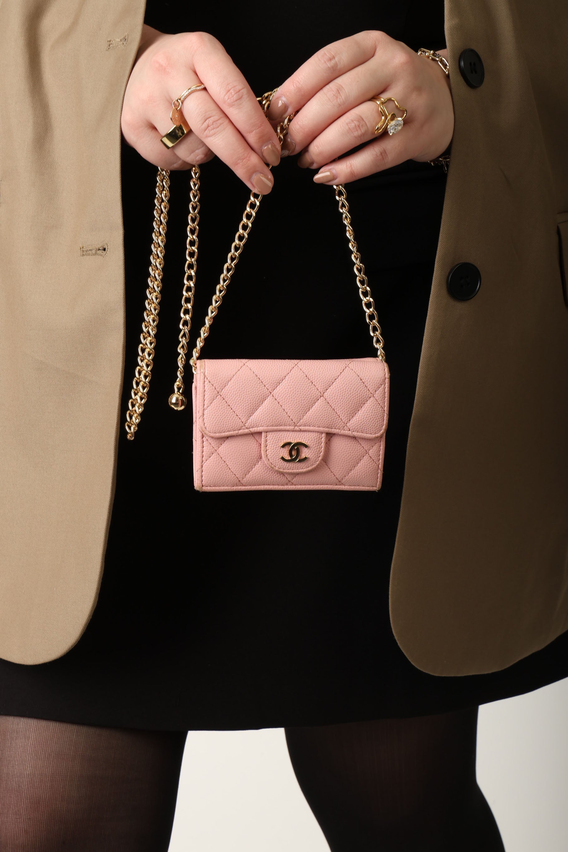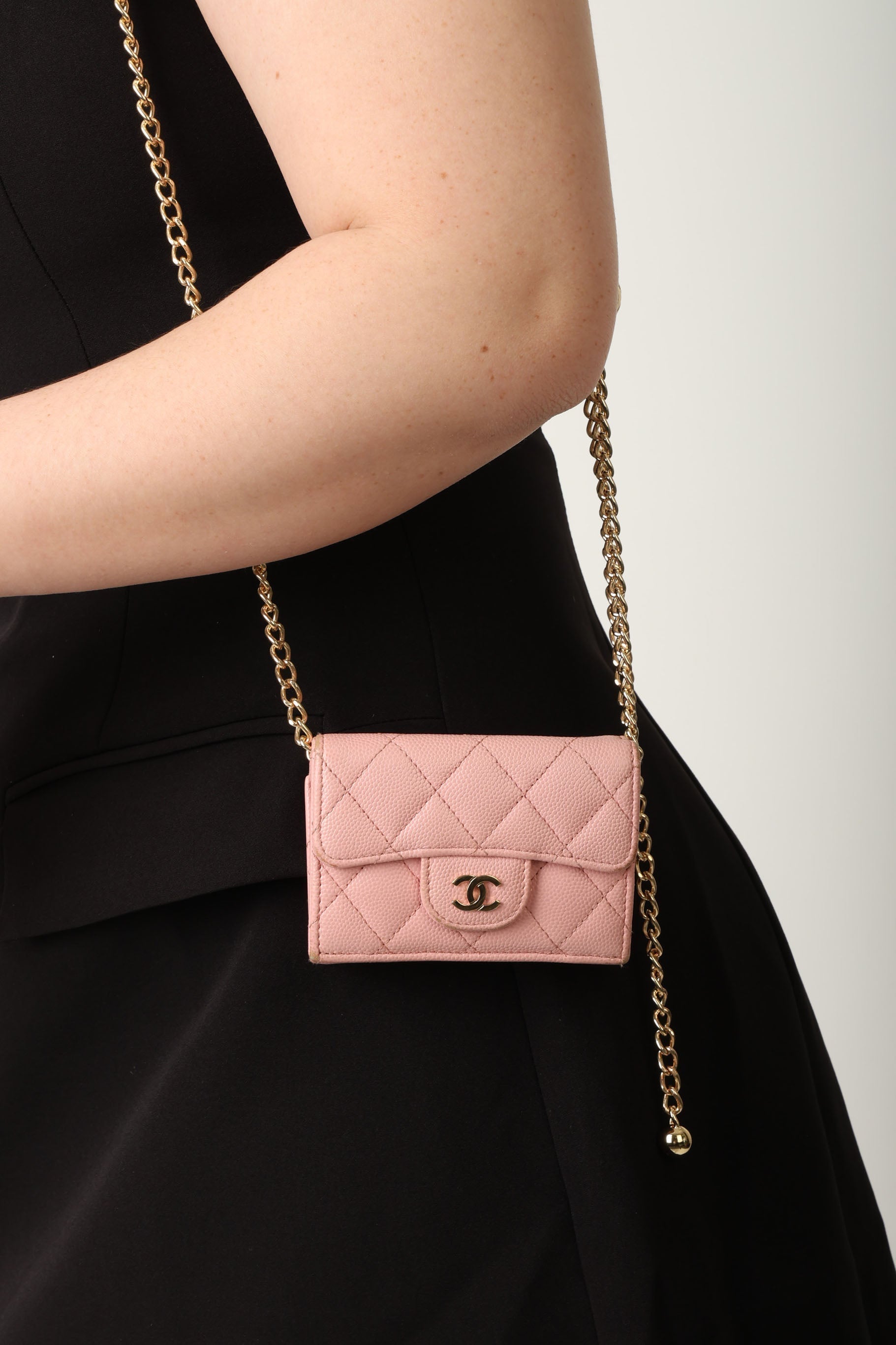 Dropping in the shop is a classic Chanel Caviar Cardholder w/ Chain in a cute pink with champagne gold hardware! Perfect mini size for traveling or everyday errands. Adding a generic gold chain for versatility.