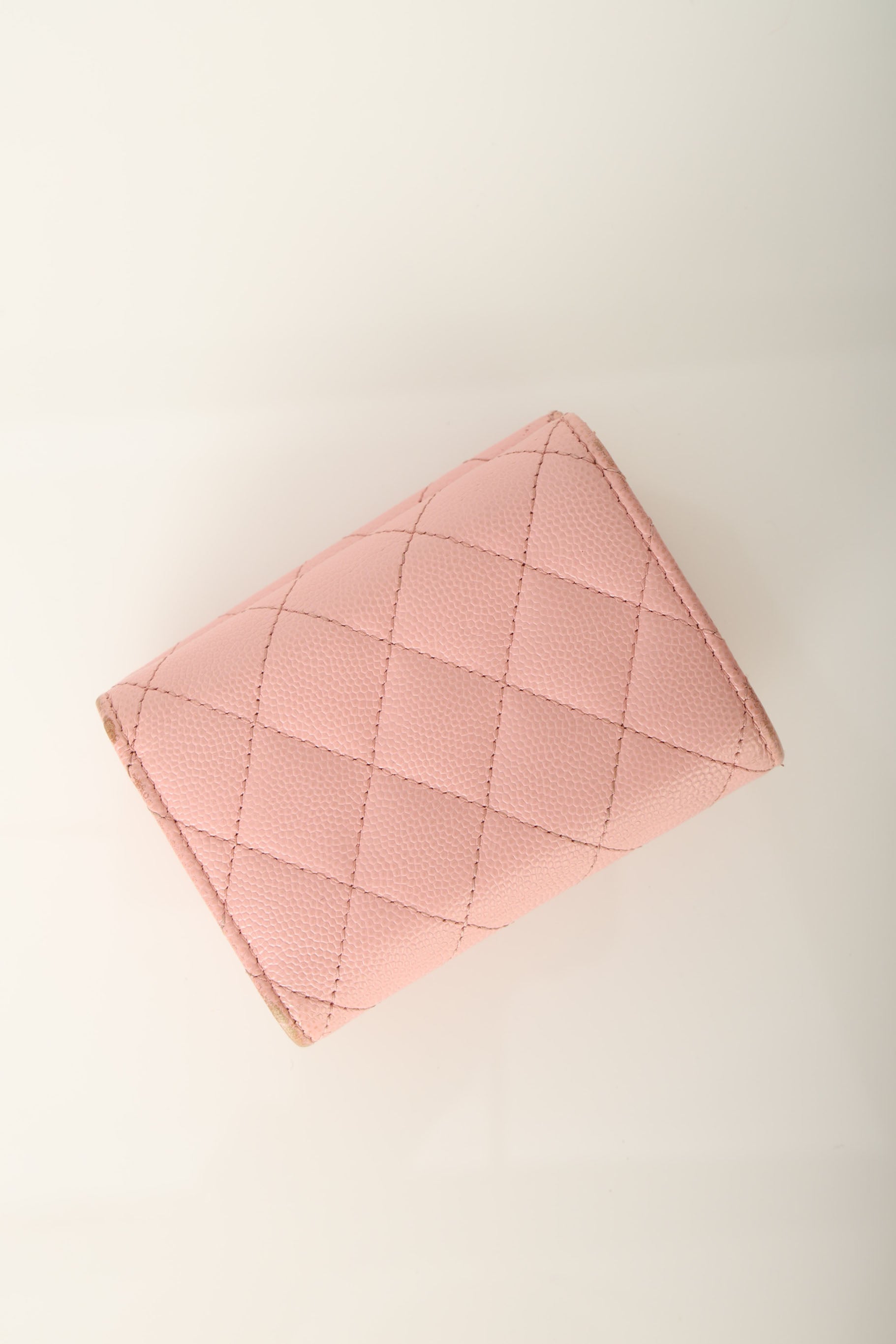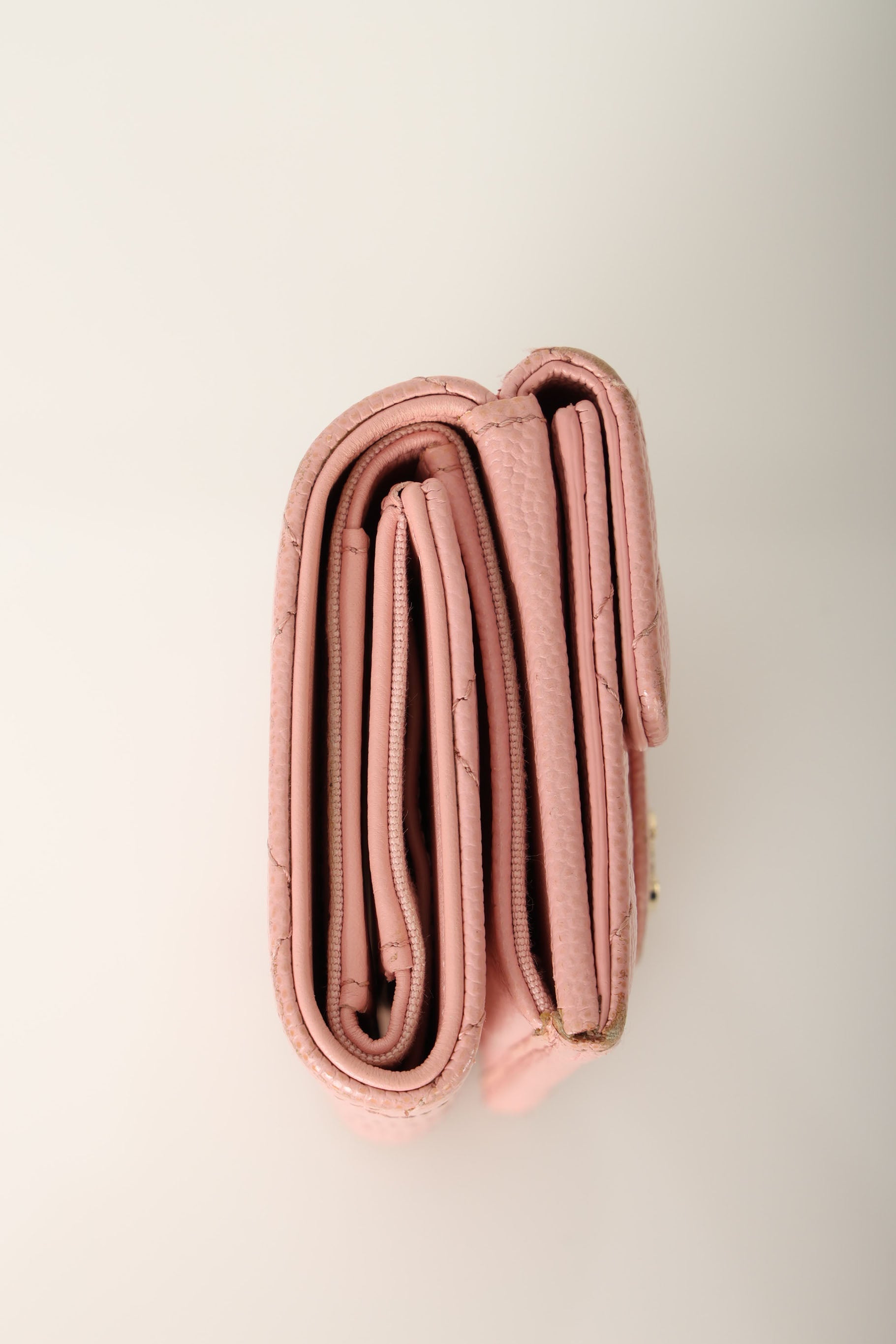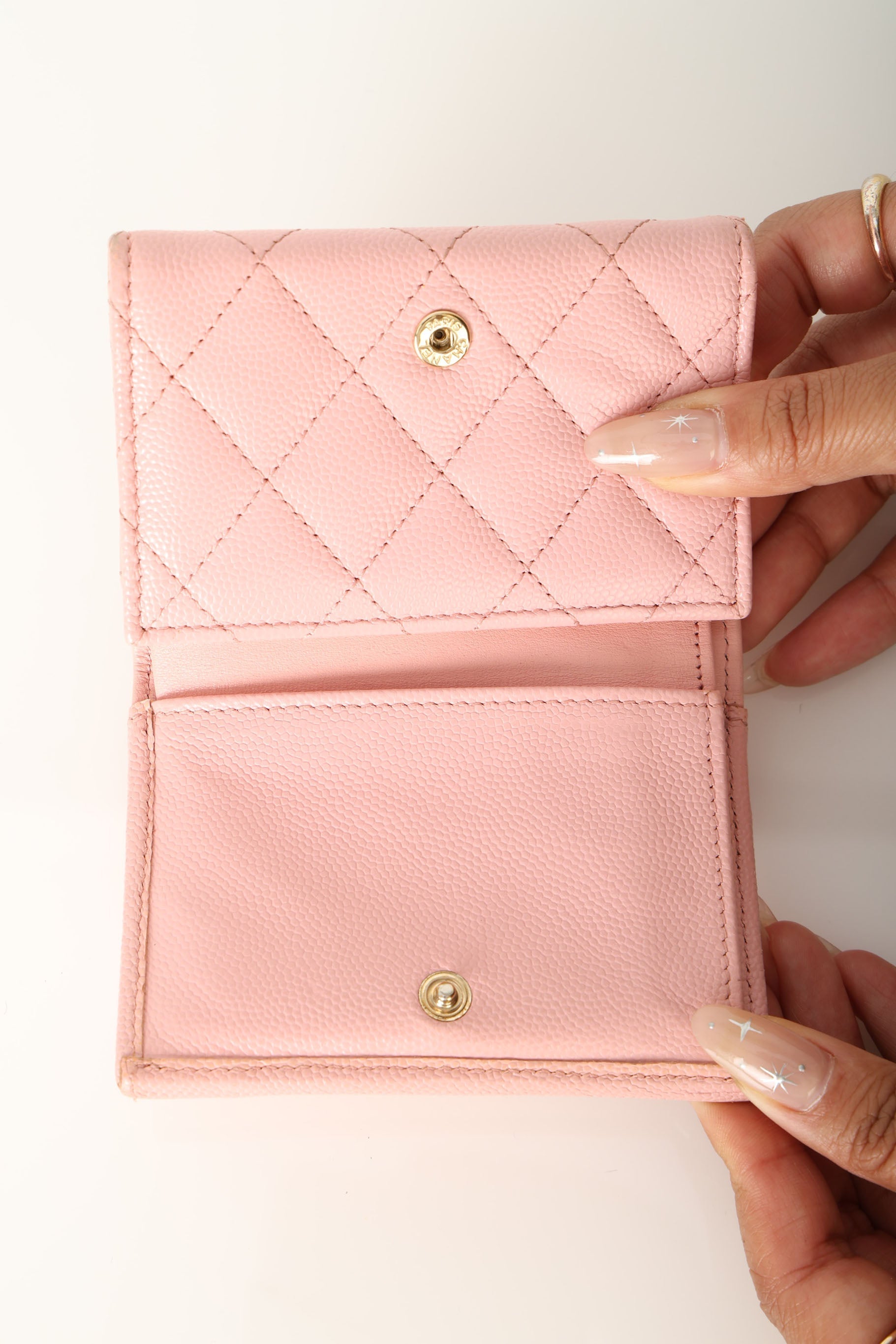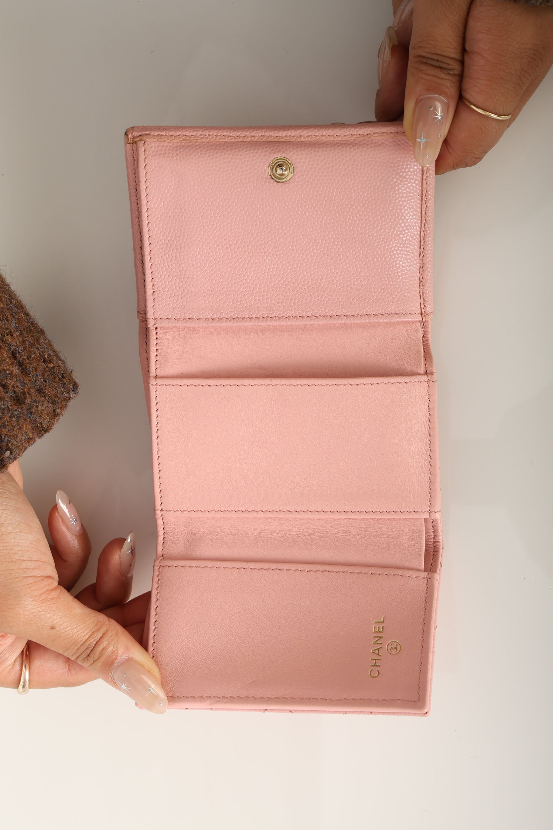 Chanel 2021 Caviar Trifold Wallet w/ Chain