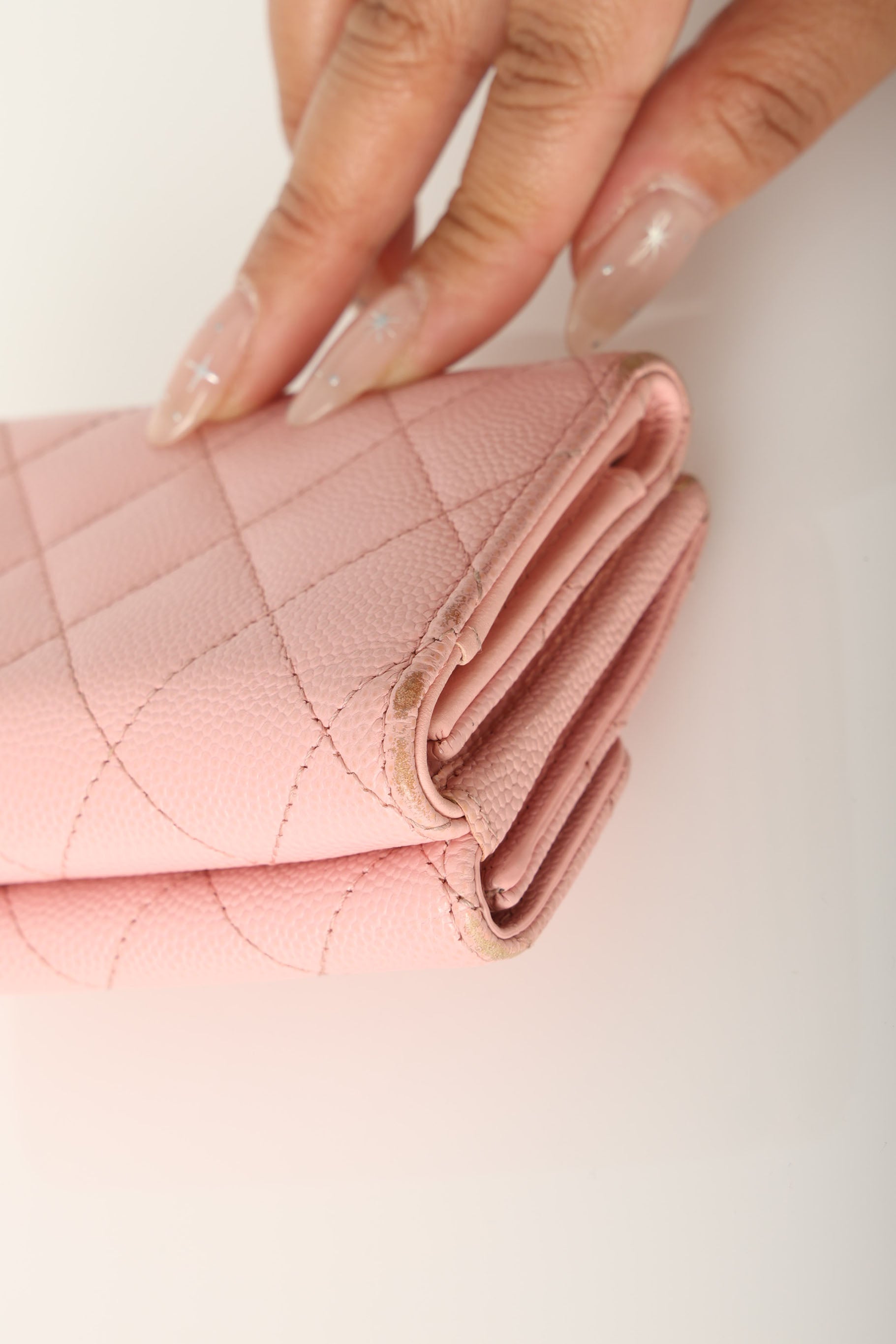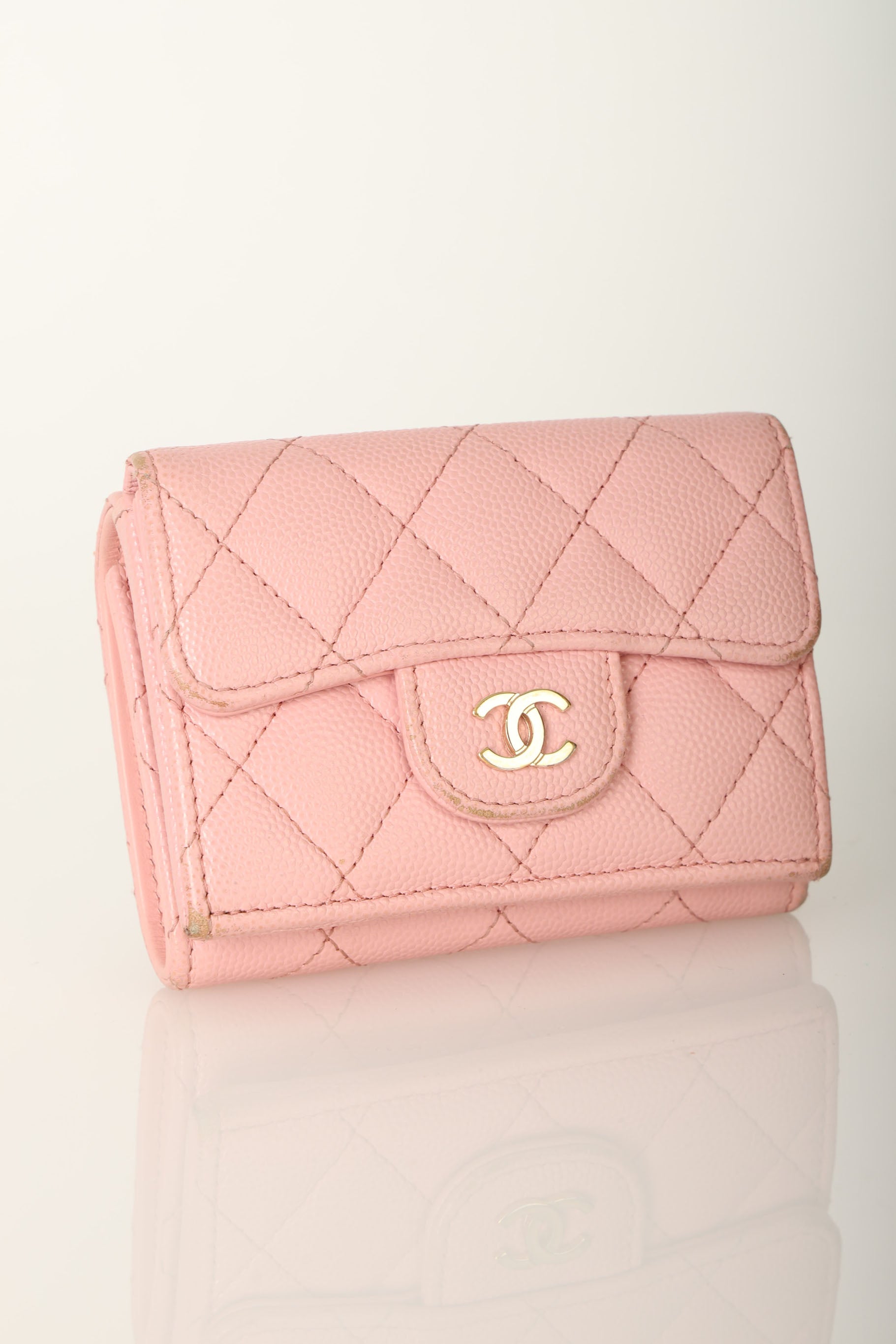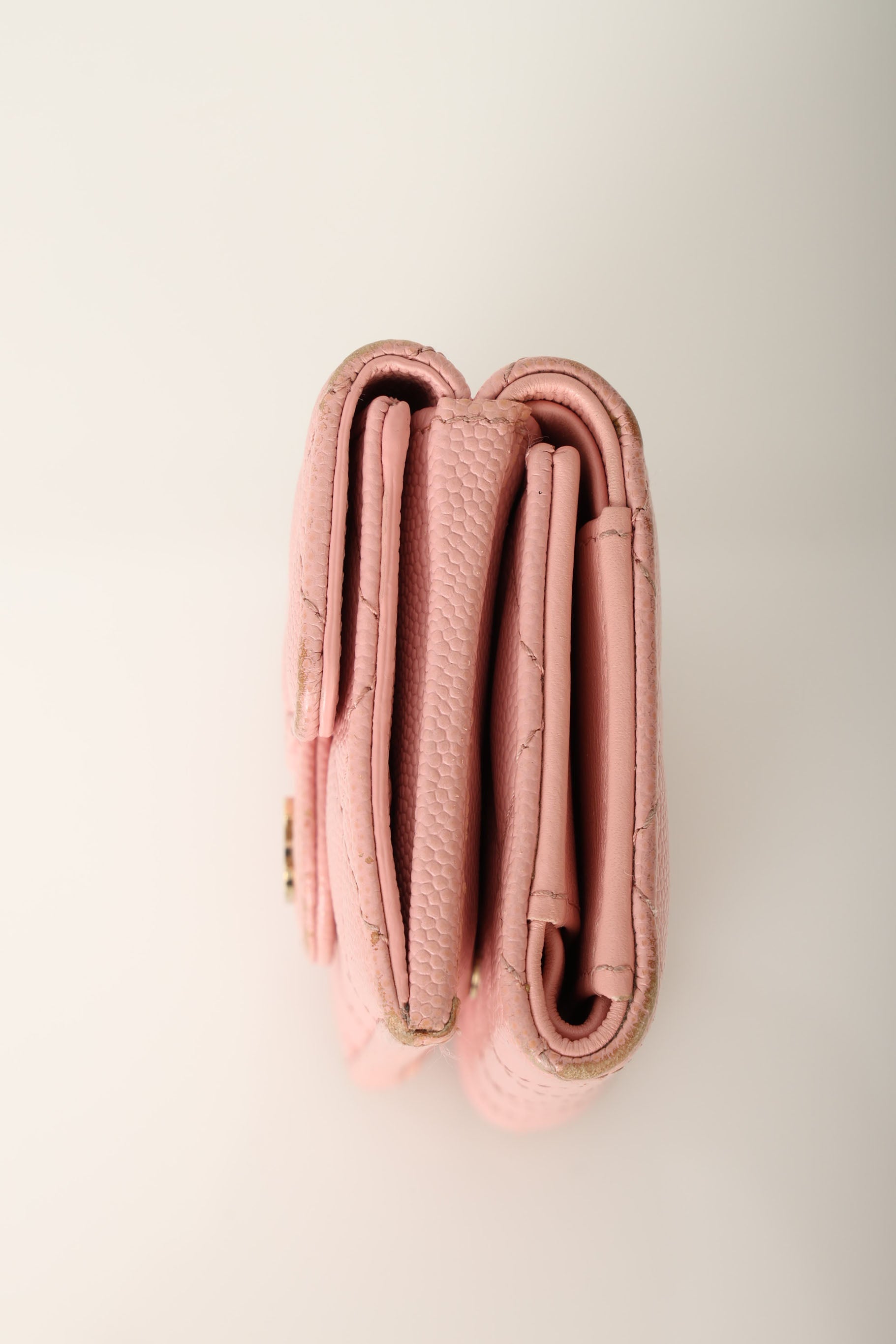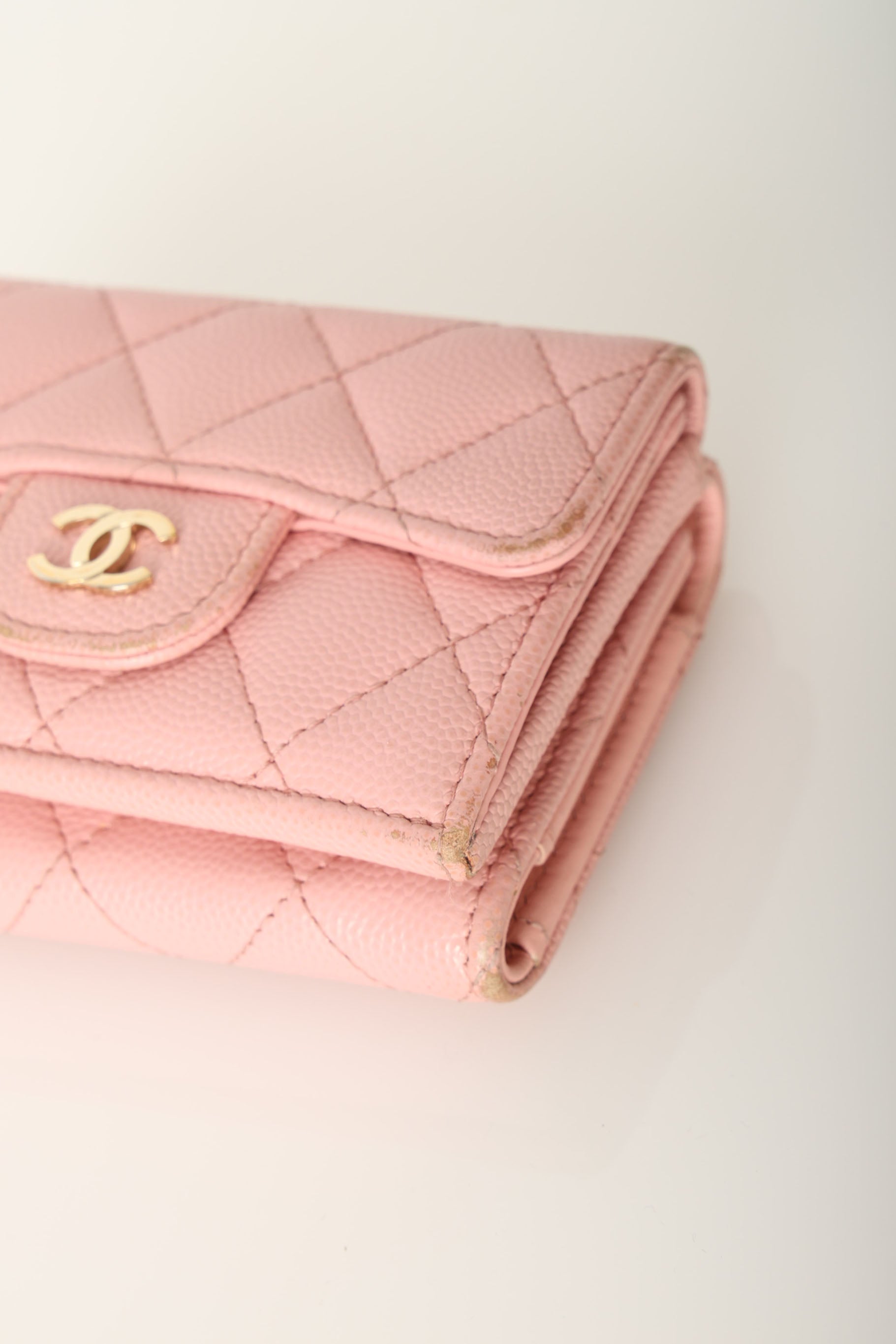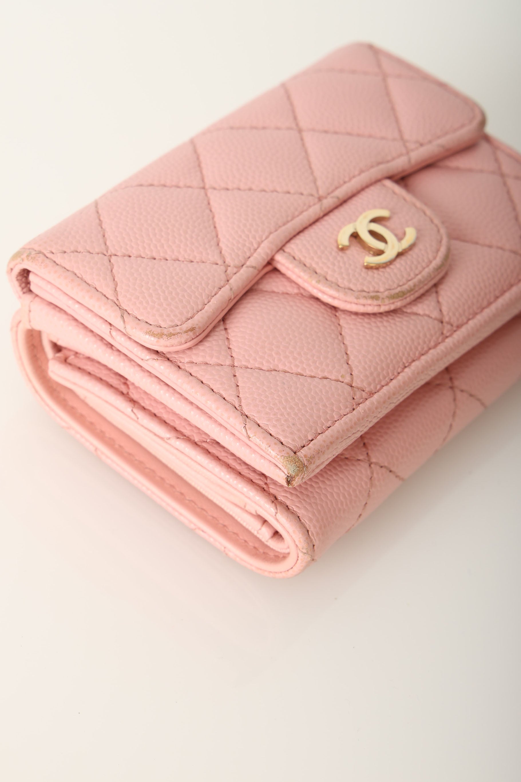Chanel 2021 Caviar Trifold Wallet w/ Chain