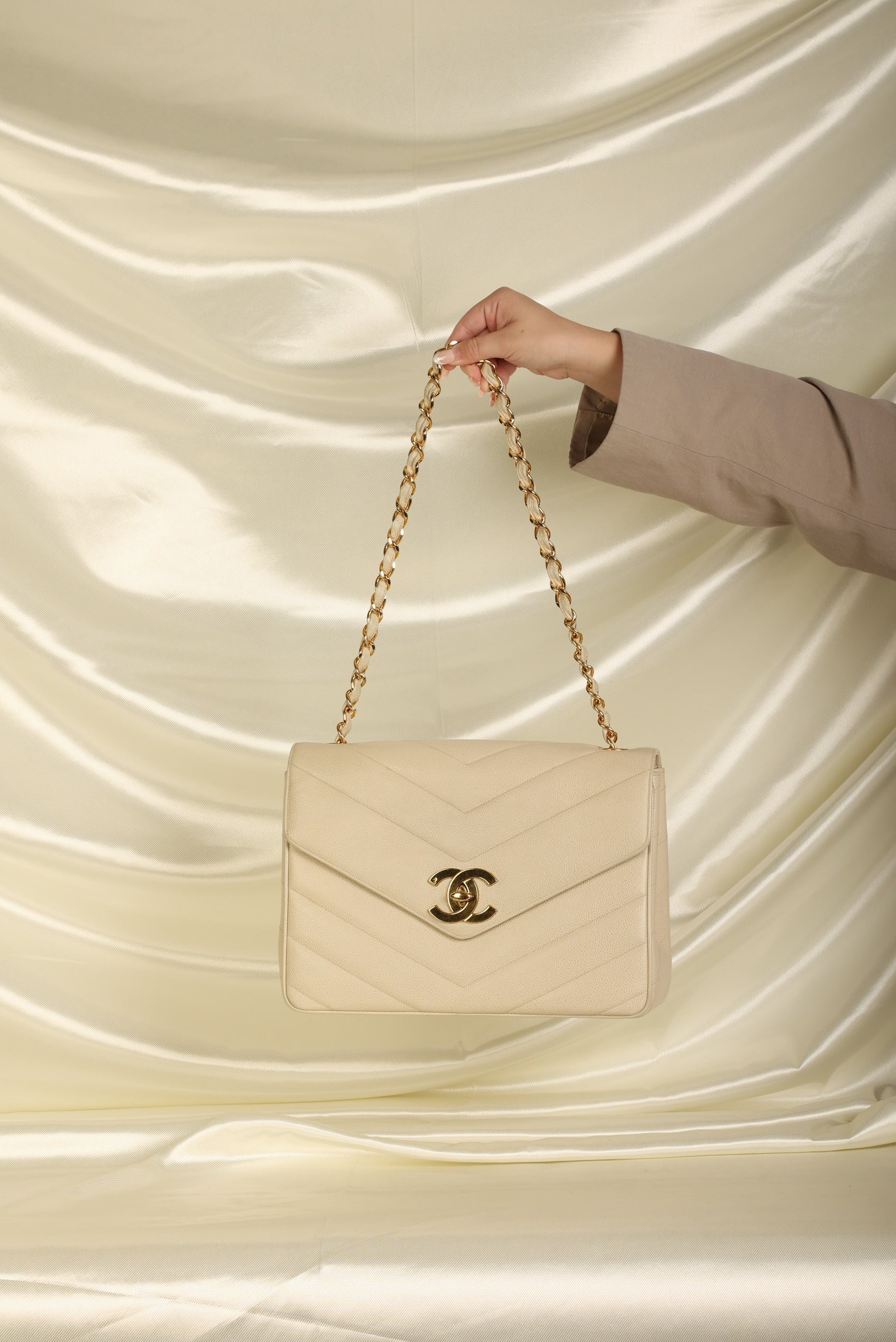 Chanel 1994 Caviar Chevron Jumbo Flap