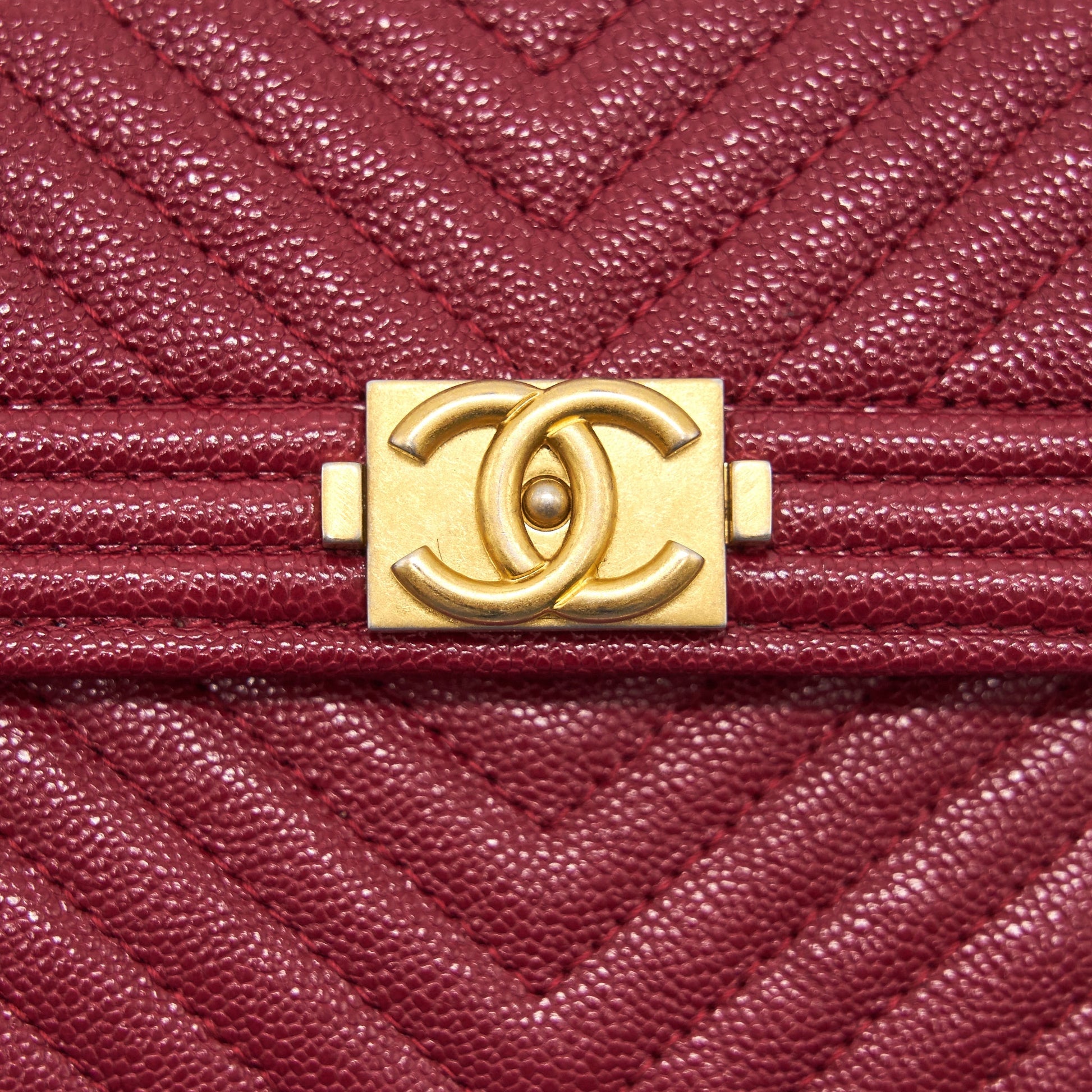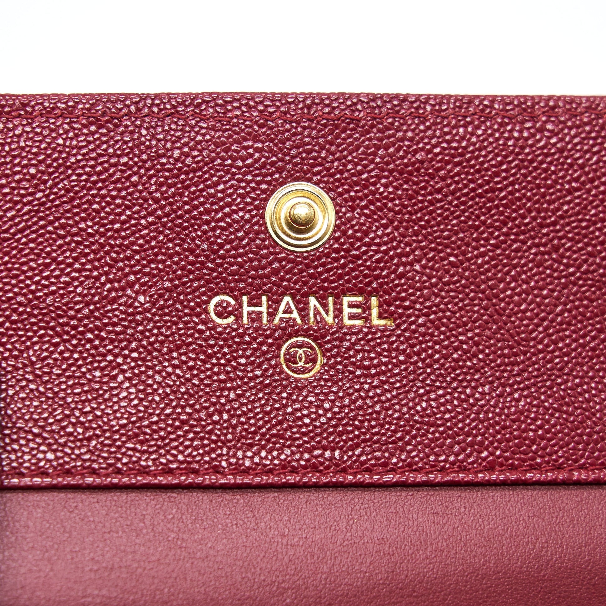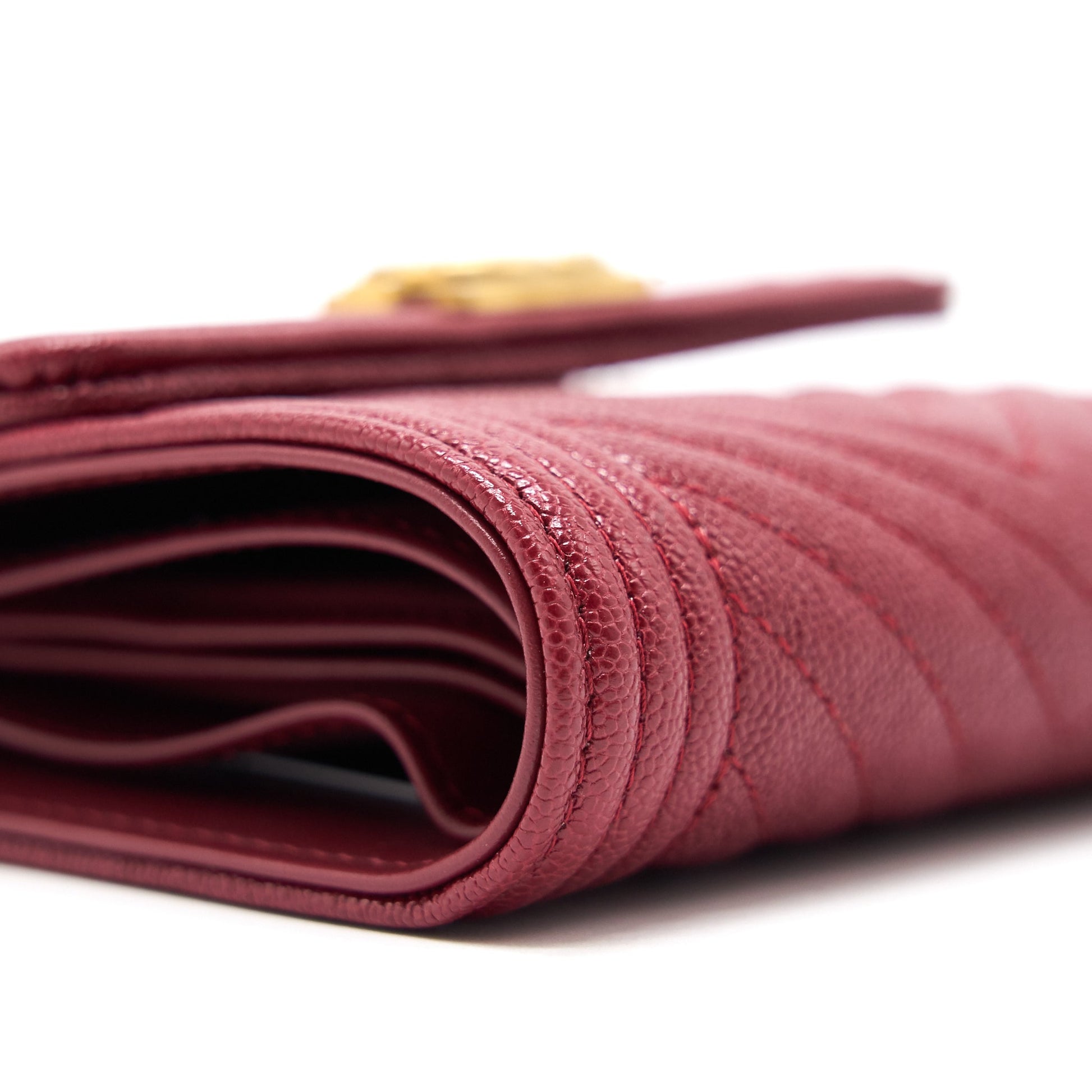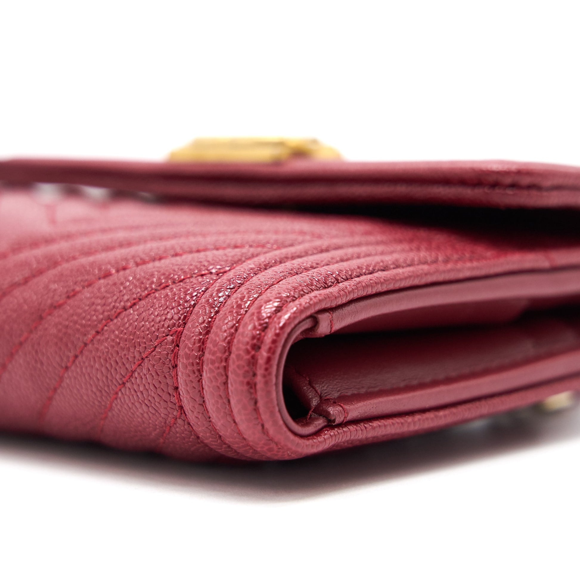 Chanel Caviar Chevron Quilted Boy Compact Wallet Red