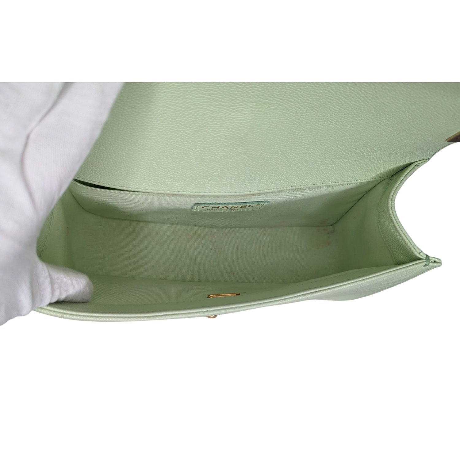Chanel Caviar Chevron Quilted Medium Boy Flap Light Green