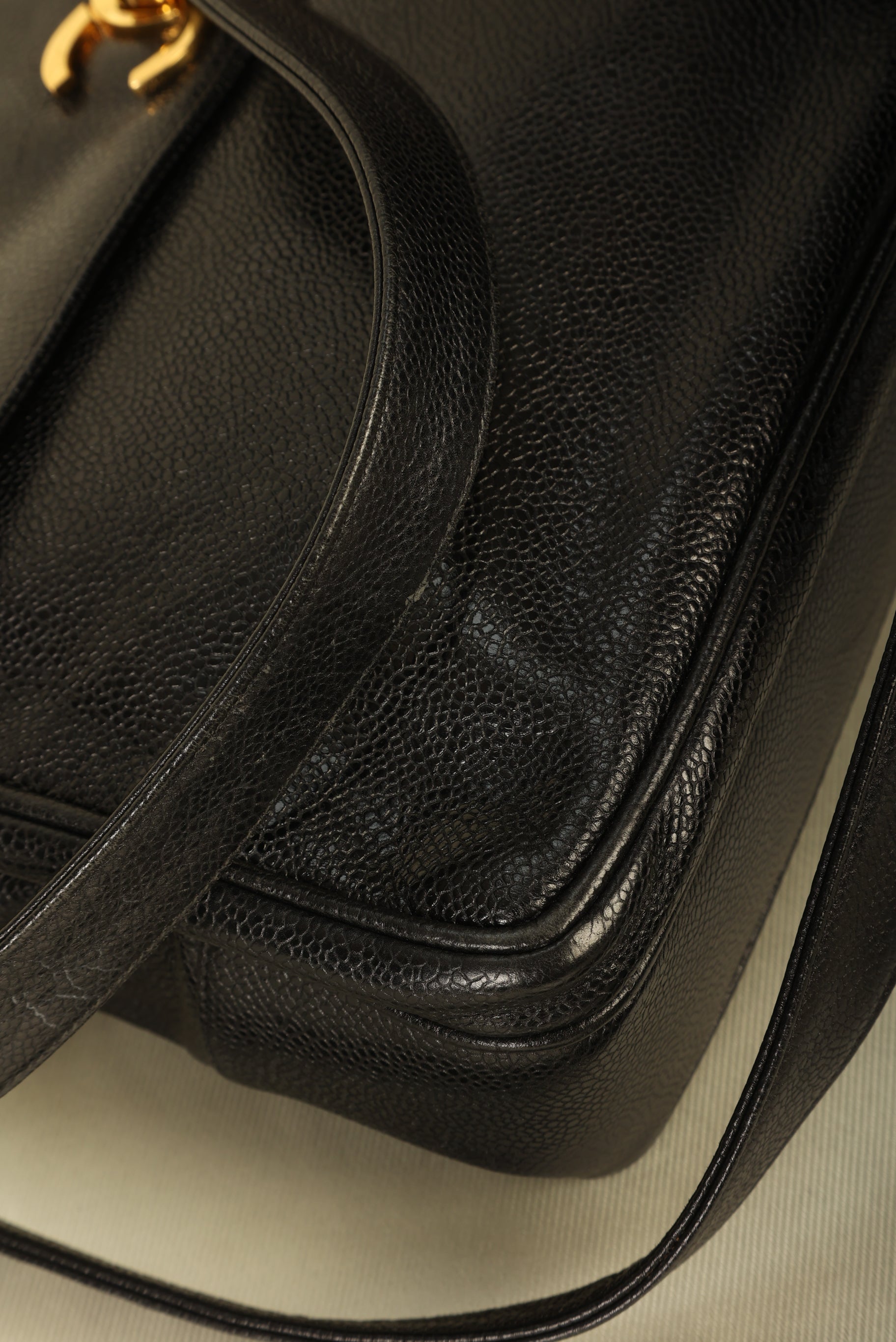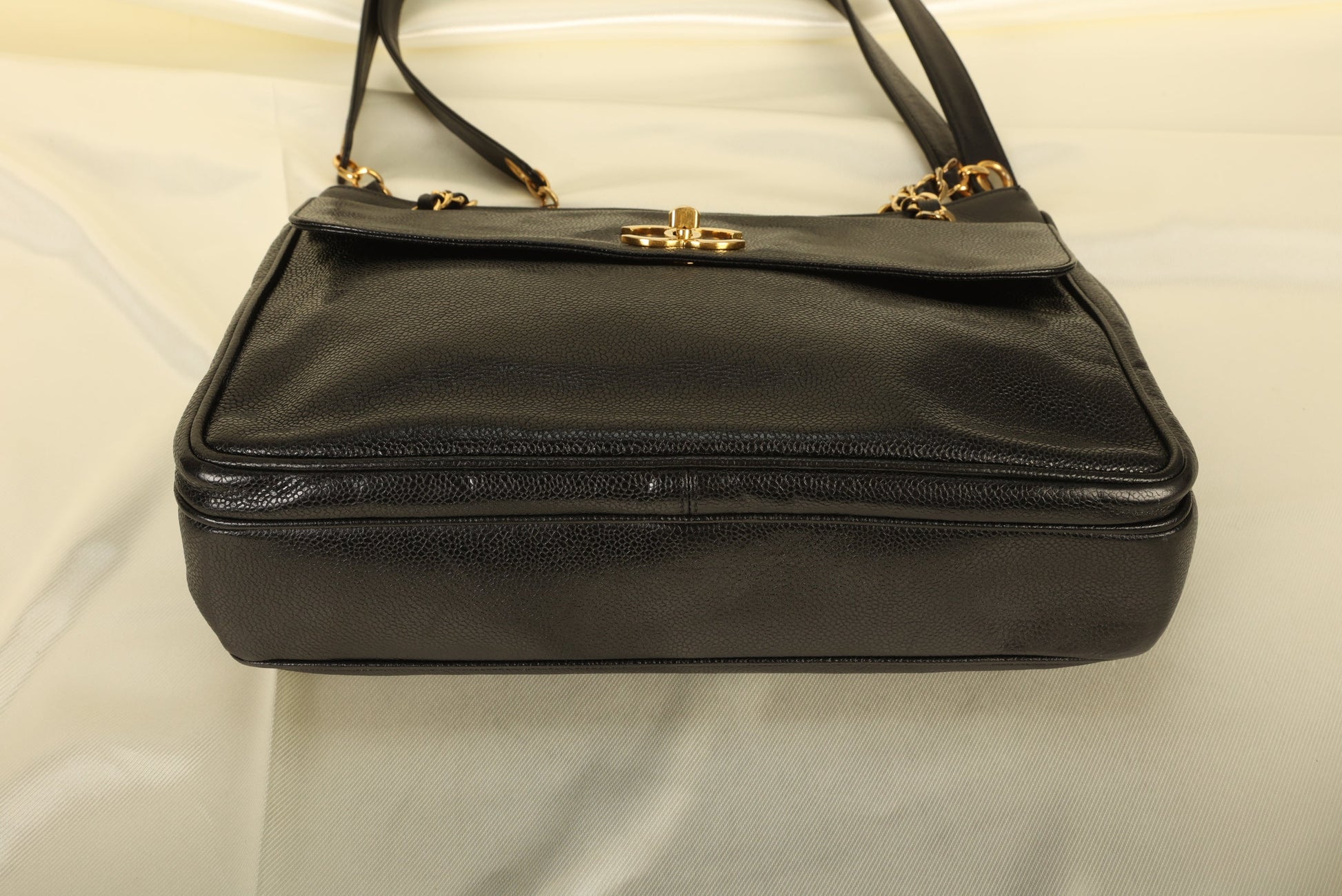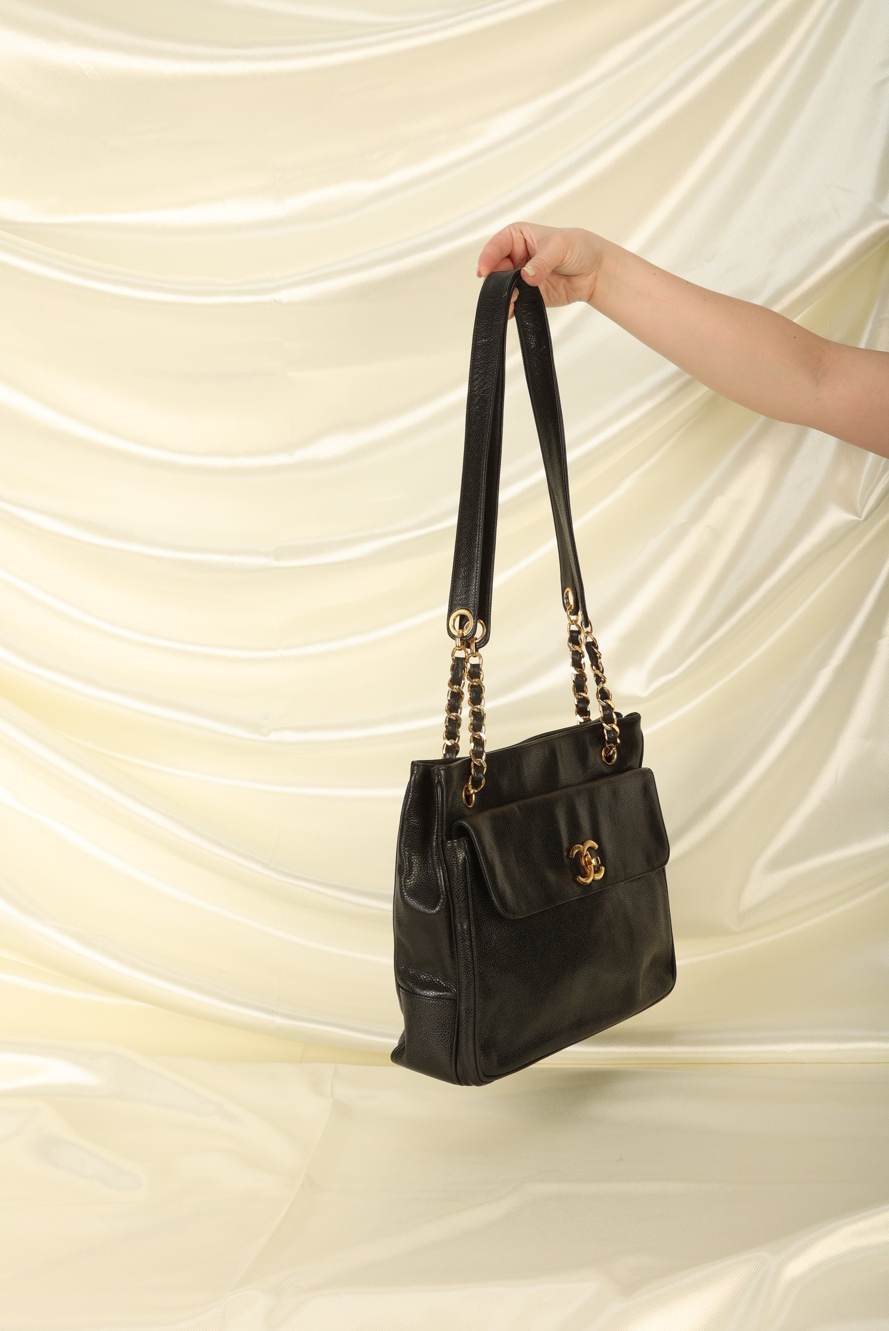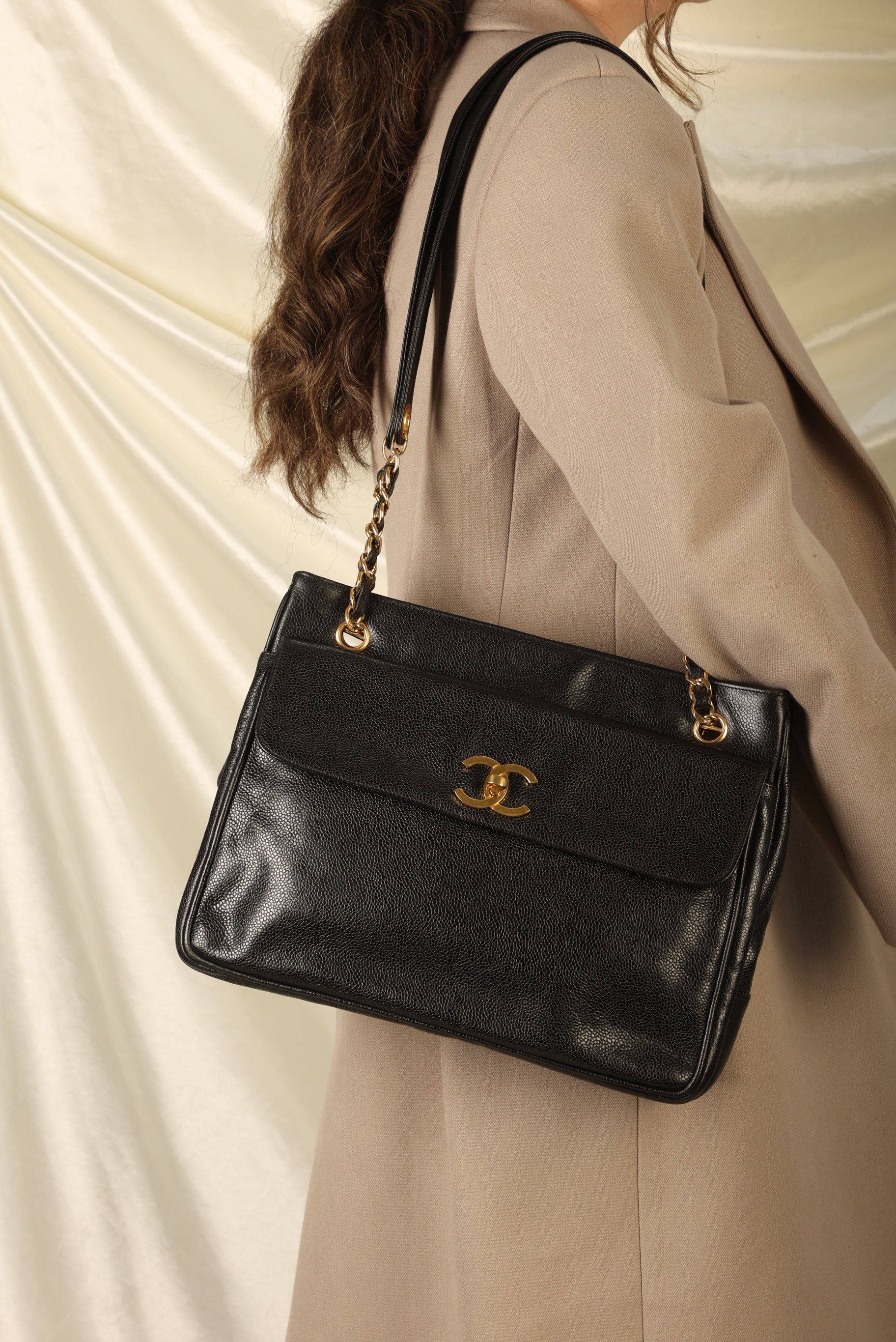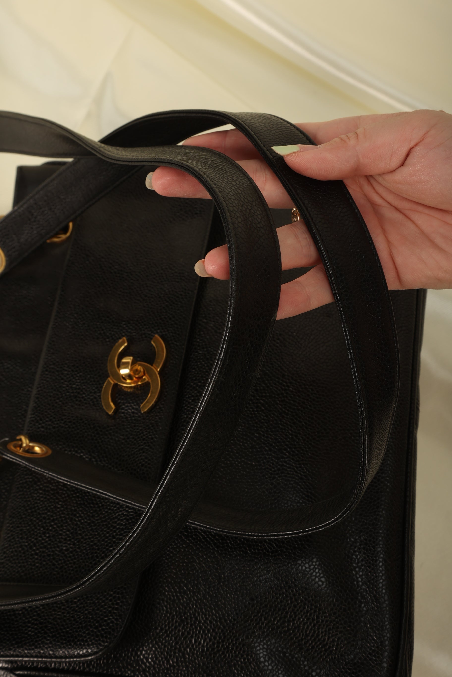 2 BAGS IN 1! I own this??bag as well and love the versatility of her. One side is crafted with the Chanel Timeless logo and the other side is a 24K gold plated turnlock logo. Both sides have pockets. Interior is spacious and can fit an iPad and more! I bring this with me to coffee shops and it fits everything I need for the day. With 24k gold plated chains. Multiple compartments. A classic piece to enjoy for years! Gives an effortless chic vibe when with a coat or blazer!