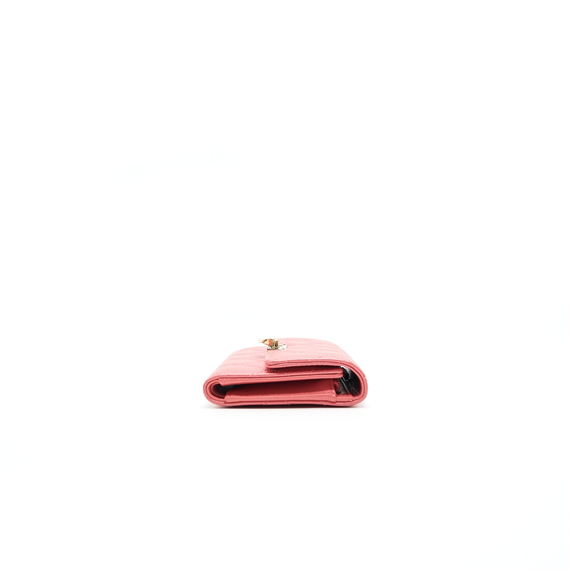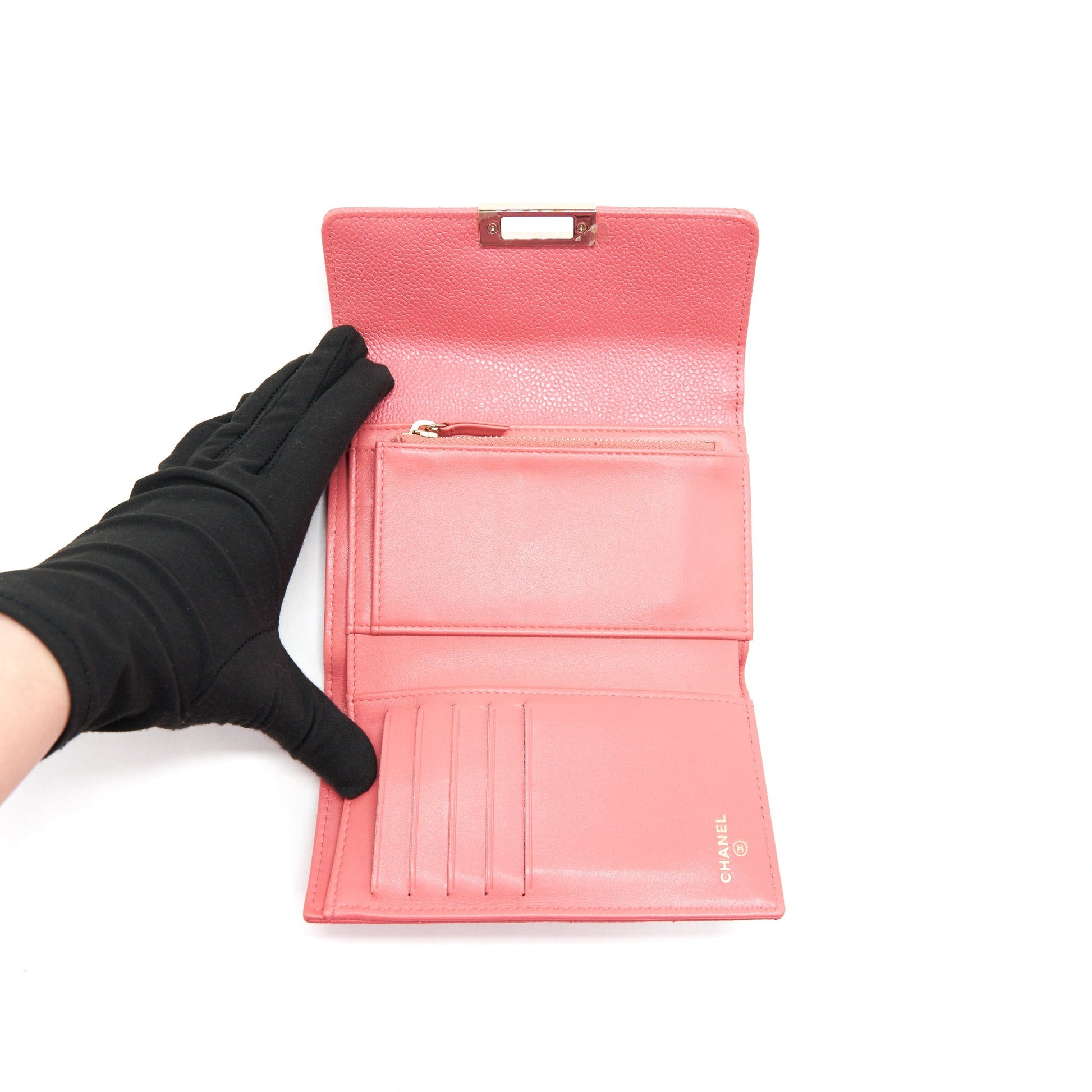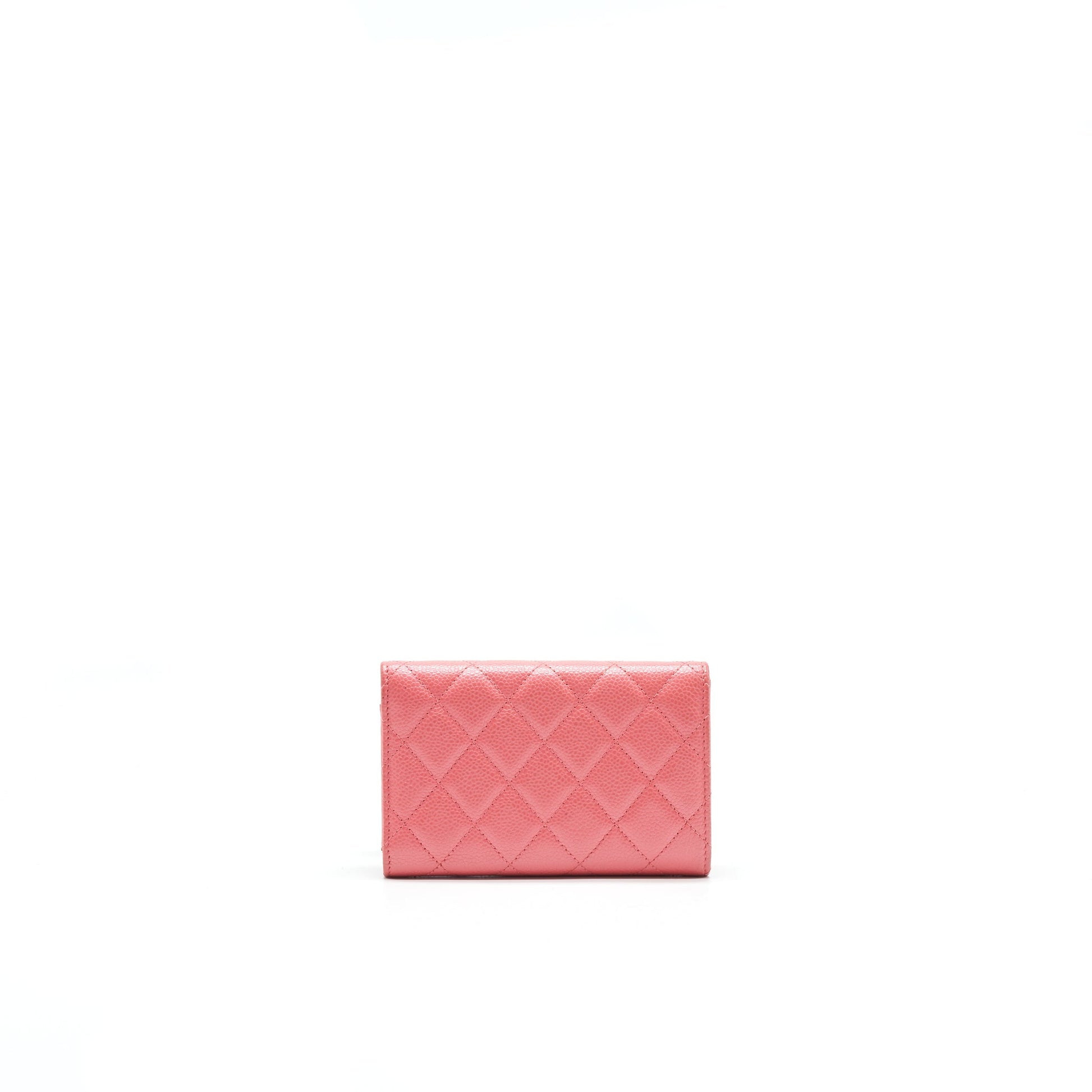 CHANEL CAVIAR FLAP WALLET ROSE PINK WITH GOLD CC LOGO
