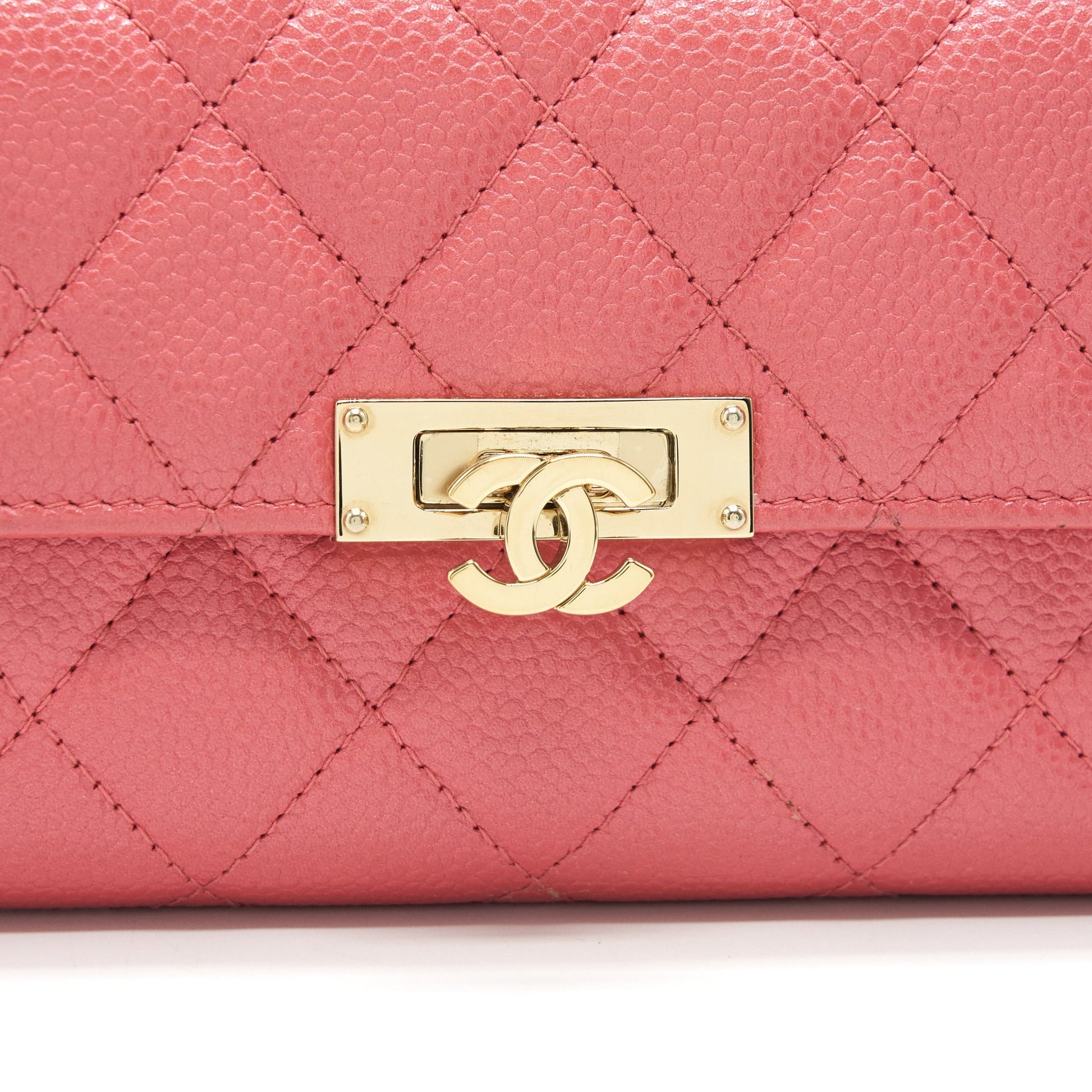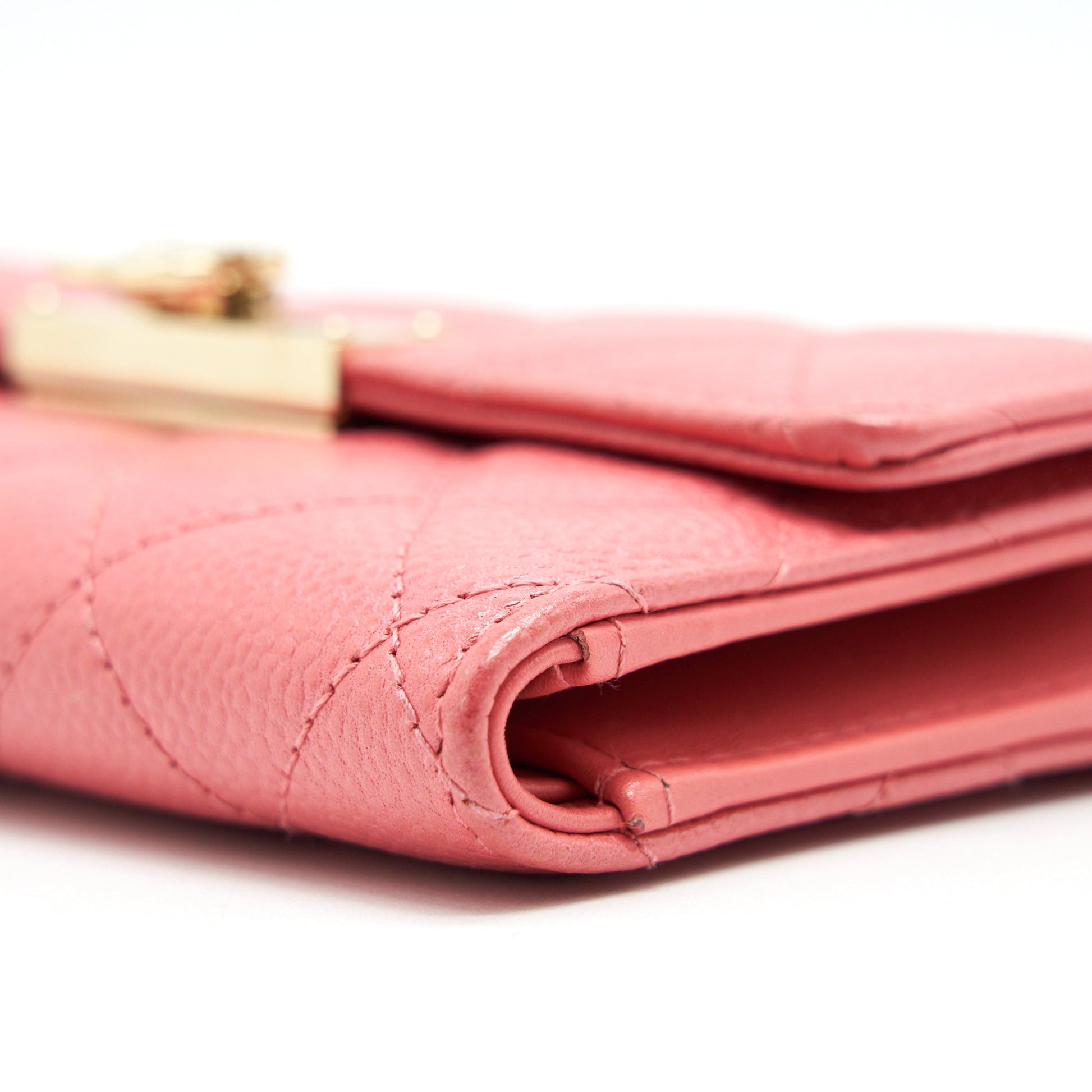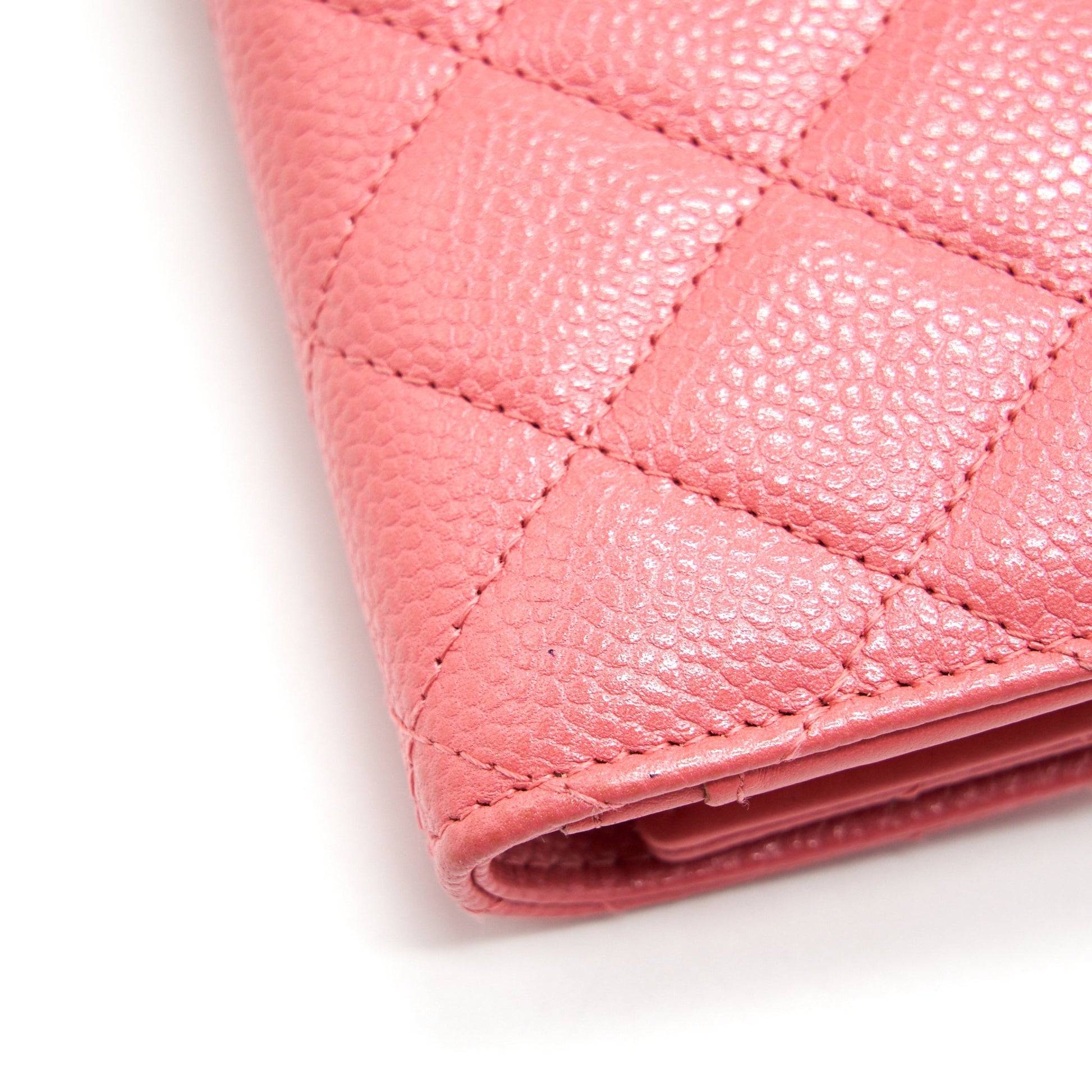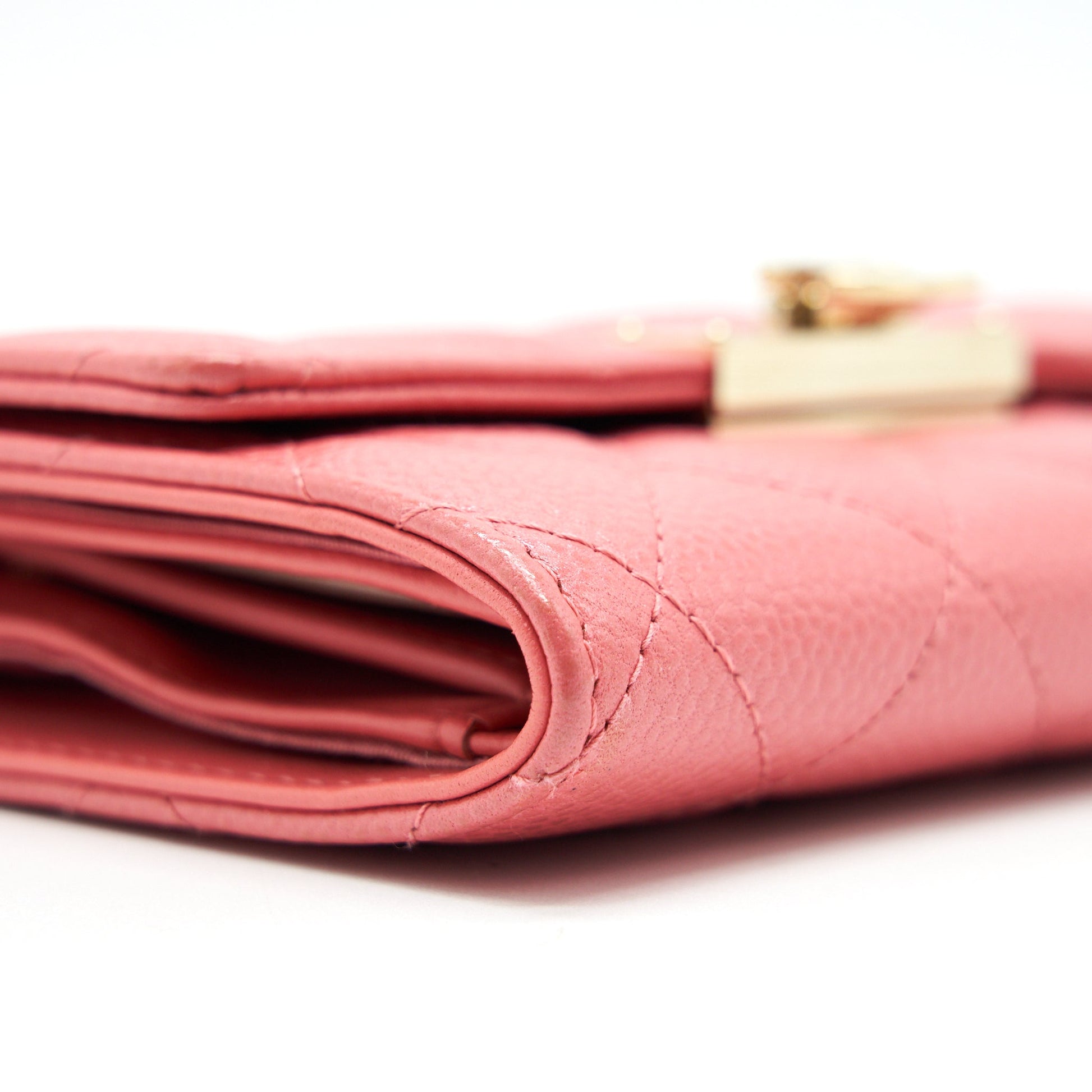 CHANEL CAVIAR FLAP WALLET ROSE PINK WITH GOLD CC LOGO