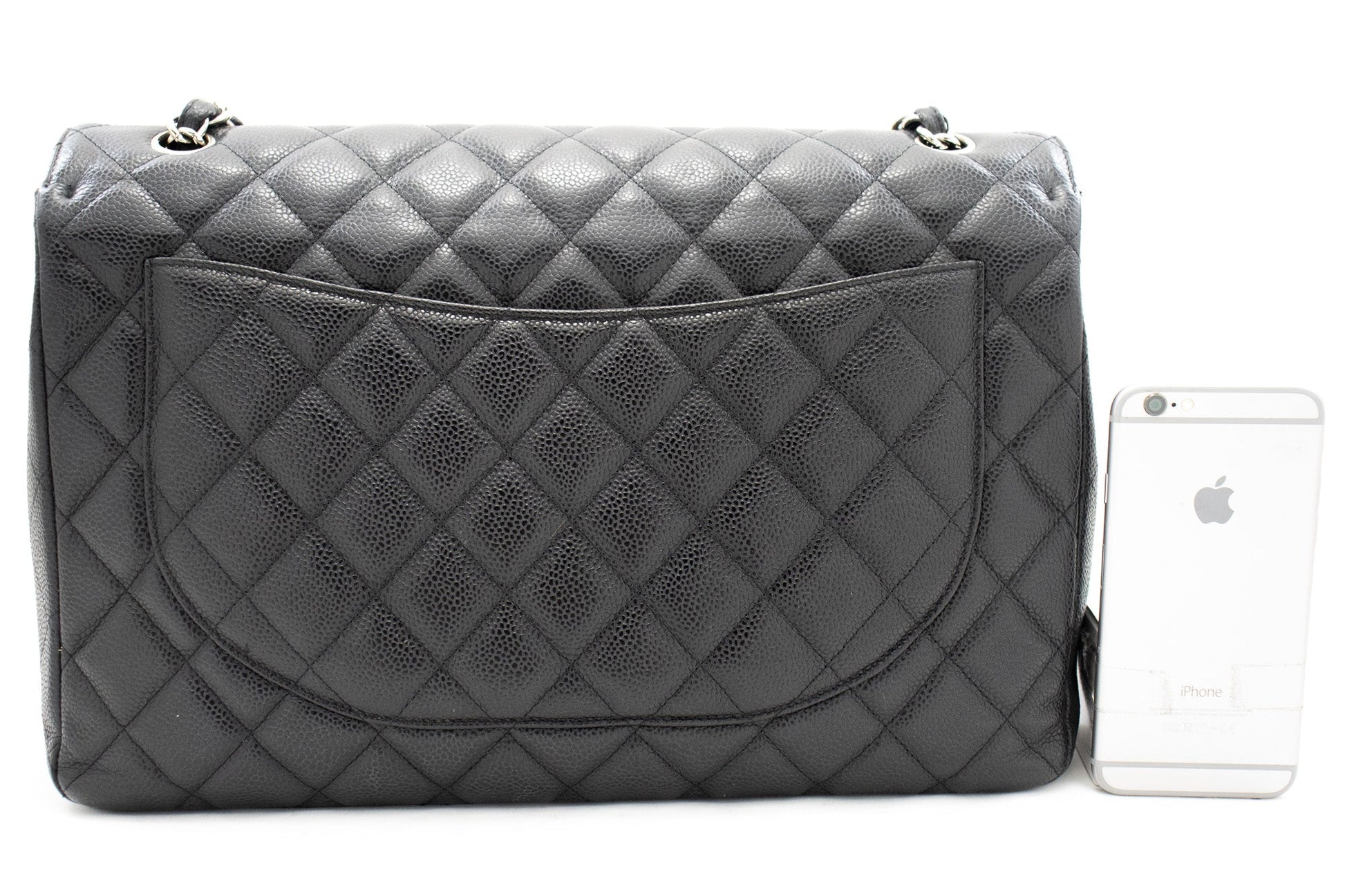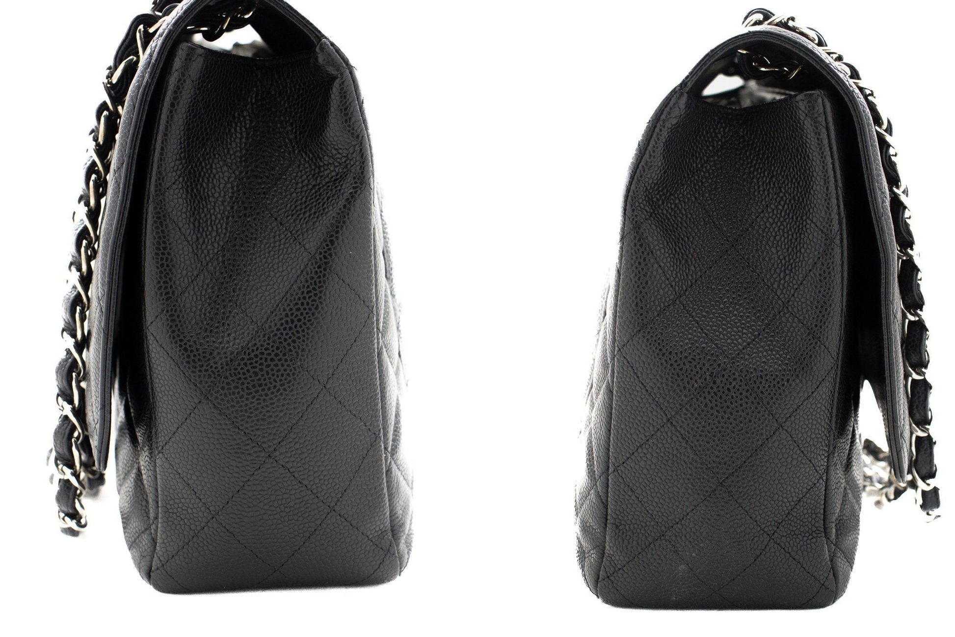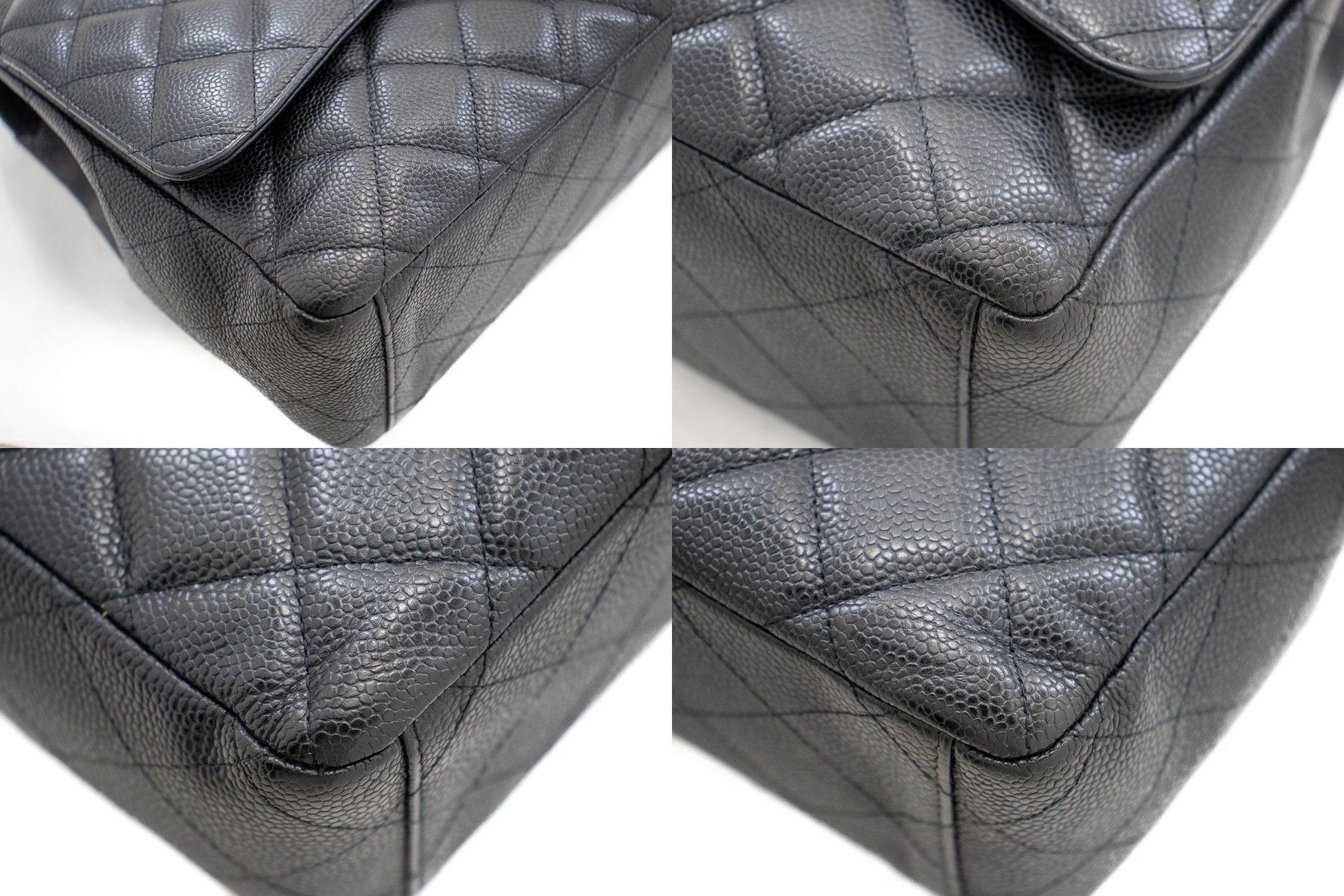 CHANEL Caviar Grained Calfskin Flap Chain Shoulder Bag Black 13" i90