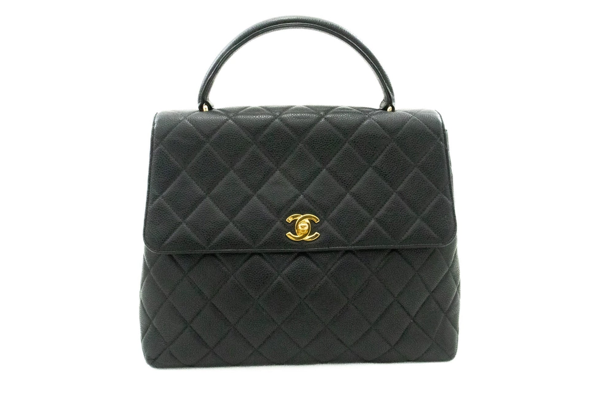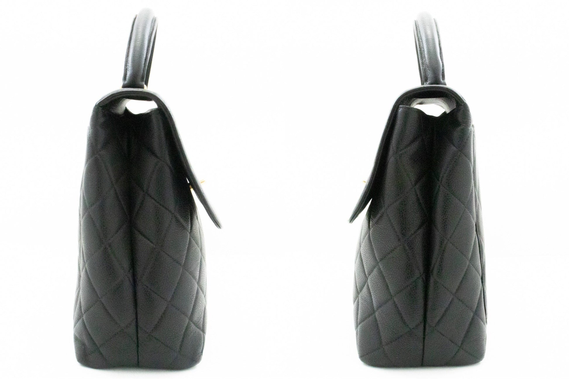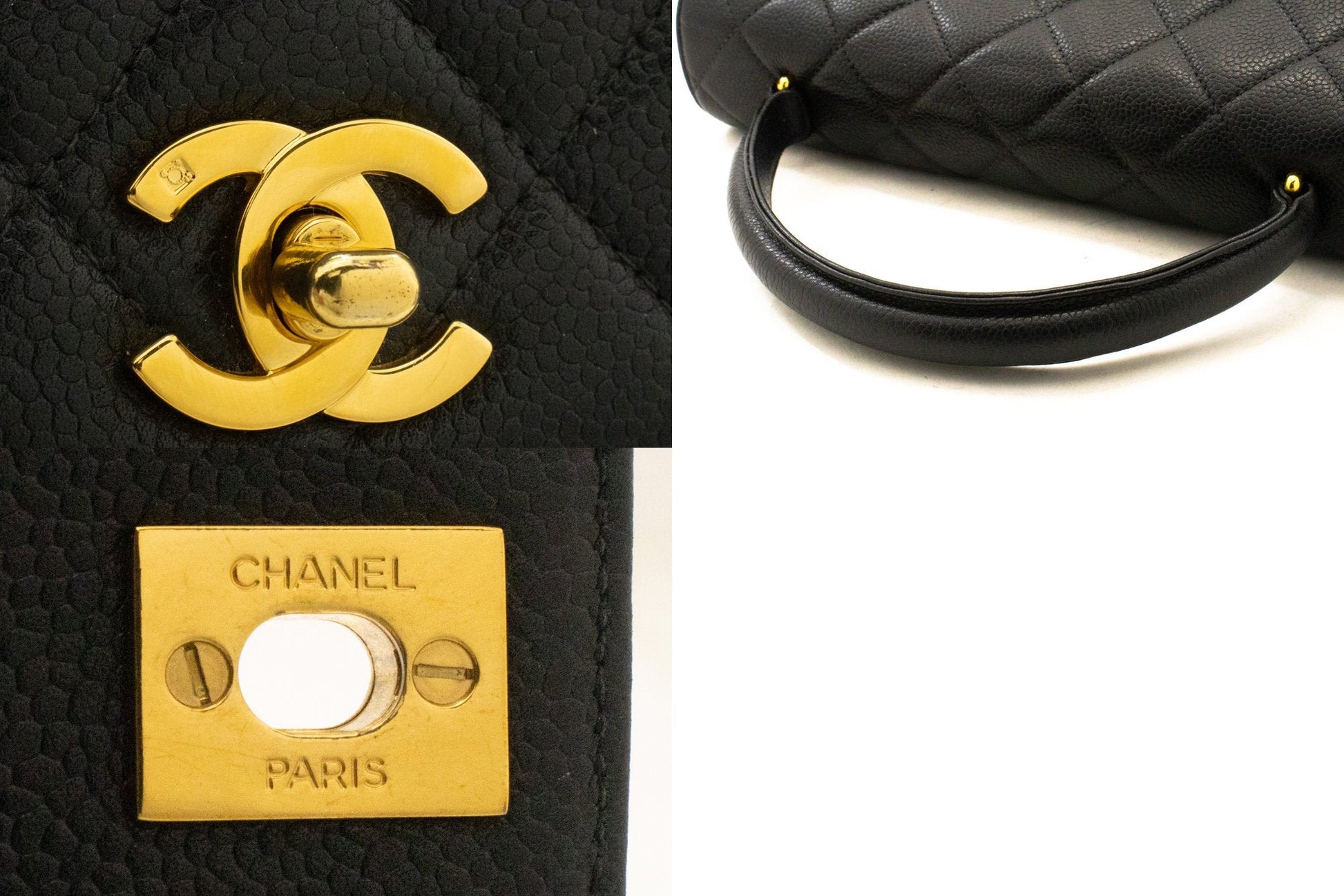 An CHANEL Caviar Handbag Top Handle Bag Kelly Black Flap Leather Gold k55 This item is Vintage / Classic. The year of manufacture would be 1996-1997.