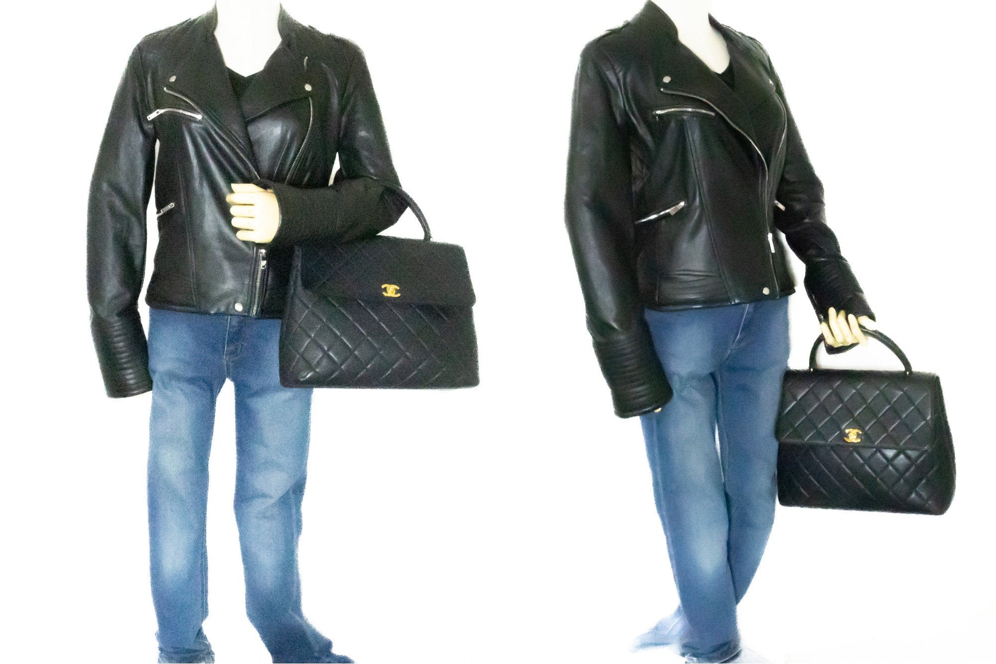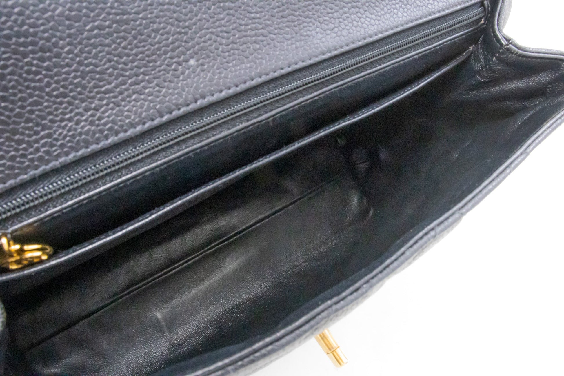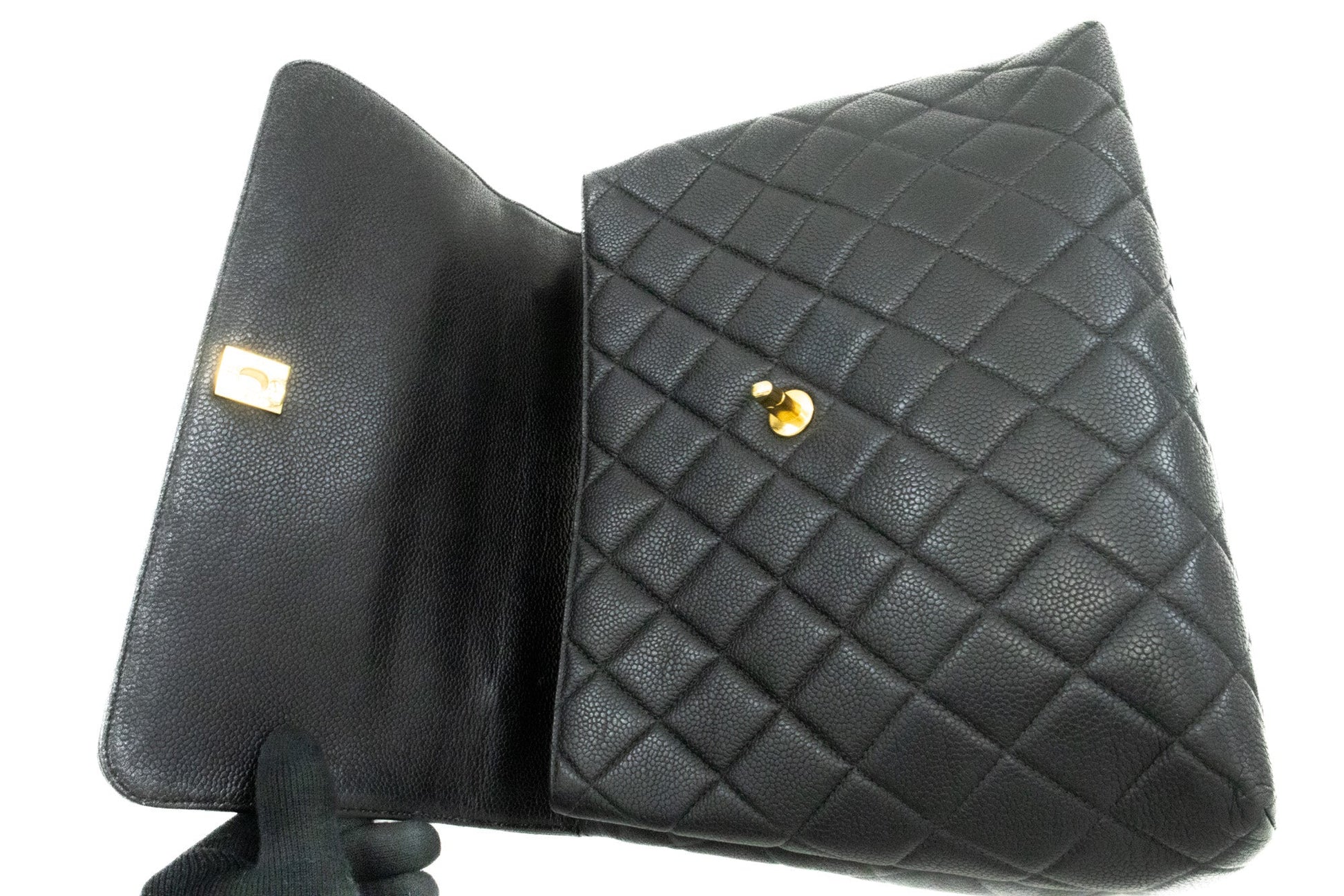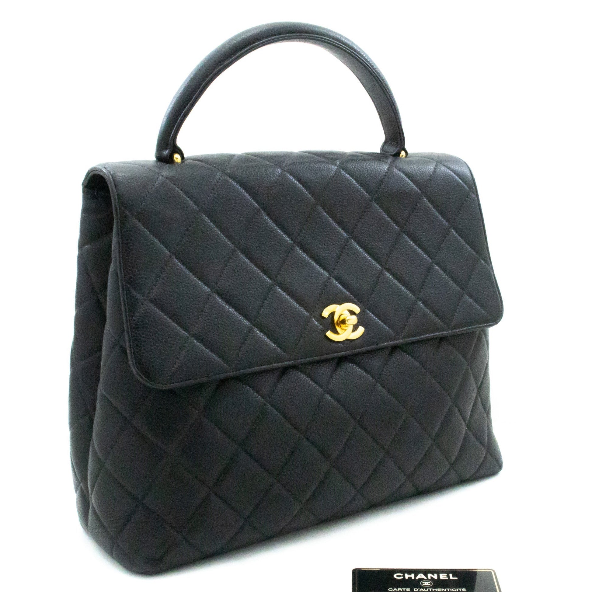 An CHANEL Caviar Handbag Top Handle Bag Kelly Black Flap Leather Gold k55 This item is Vintage / Classic. The year of manufacture would be 1996-1997.