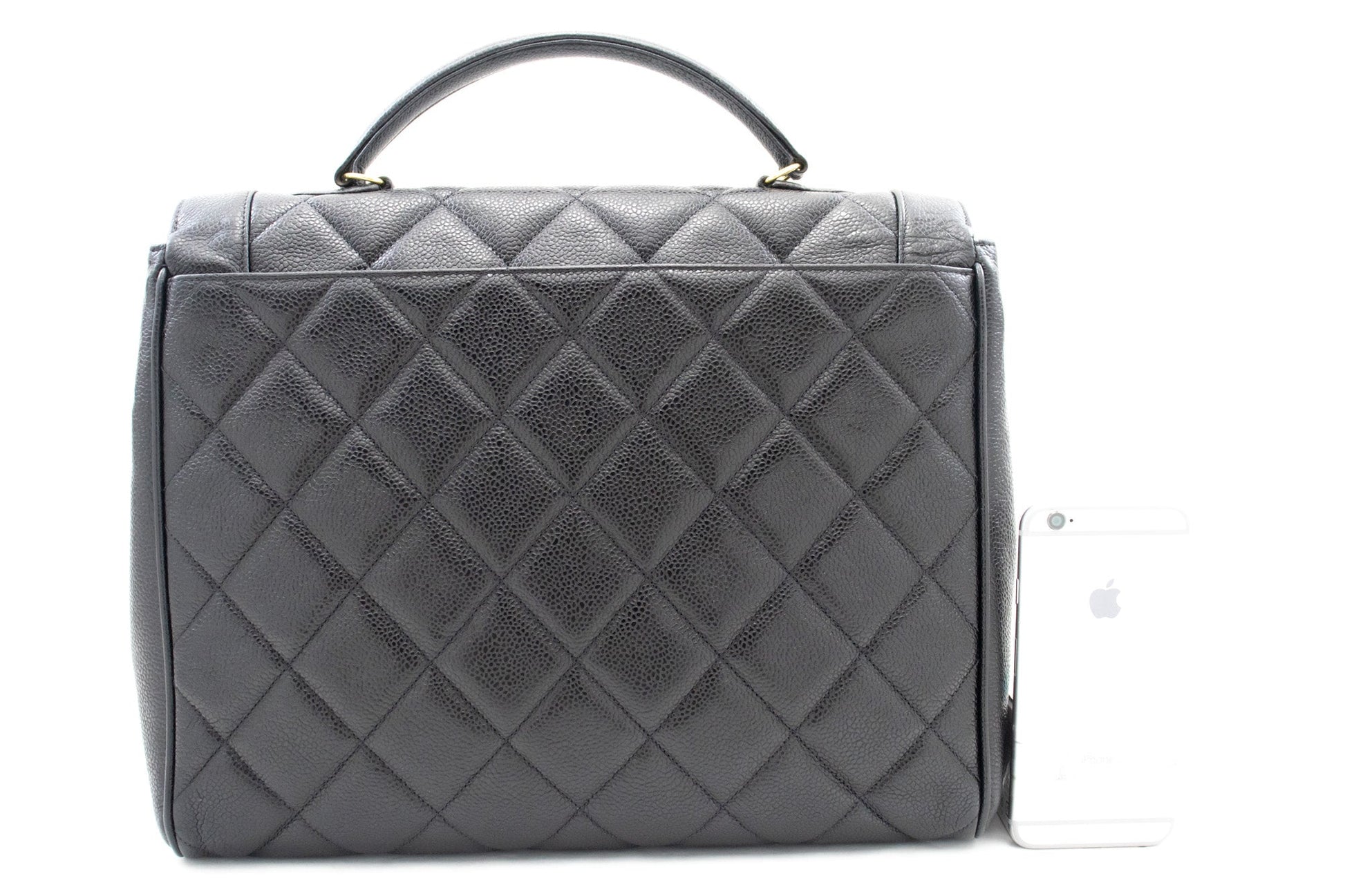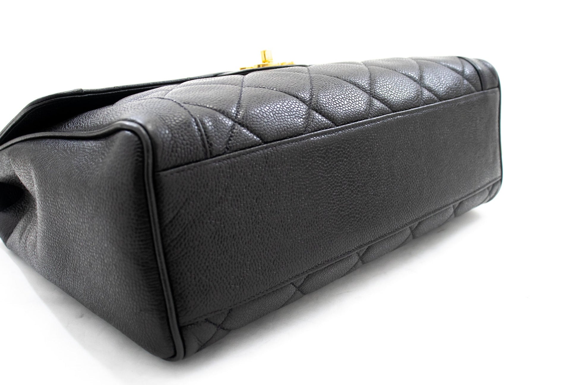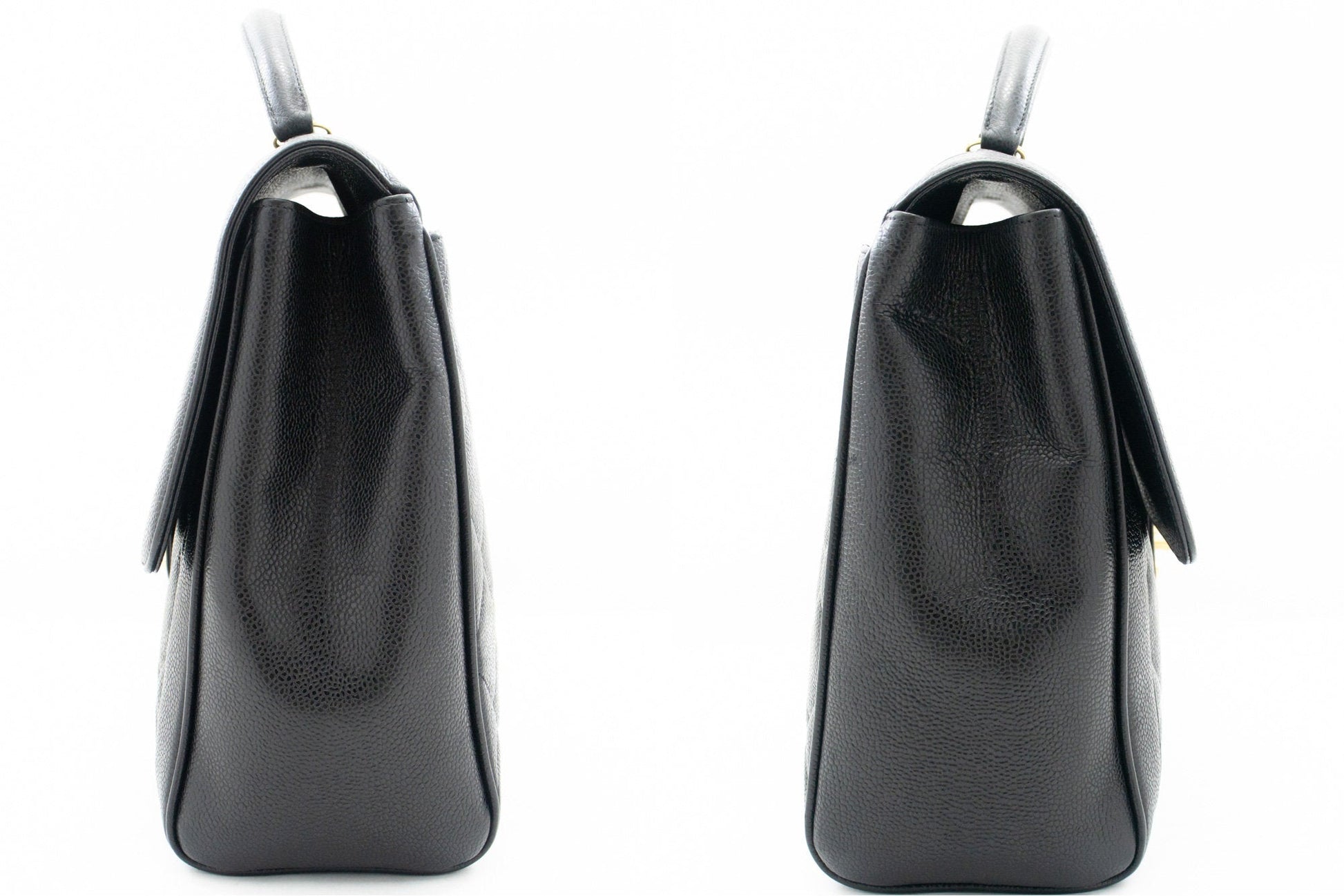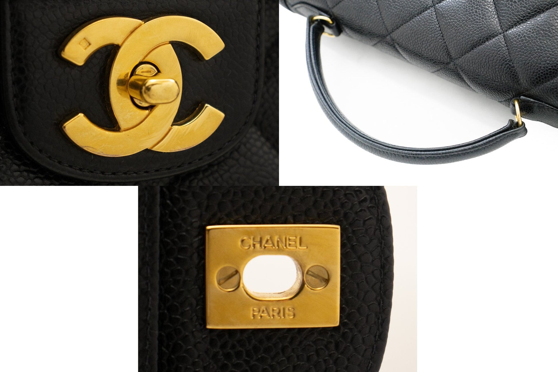An CHANEL Caviar Handbag Top Handle Bag Kelly Black Flap Leather Gold k75 This item is Vintage / Classic. The year of manufacture would be 1994-1996.