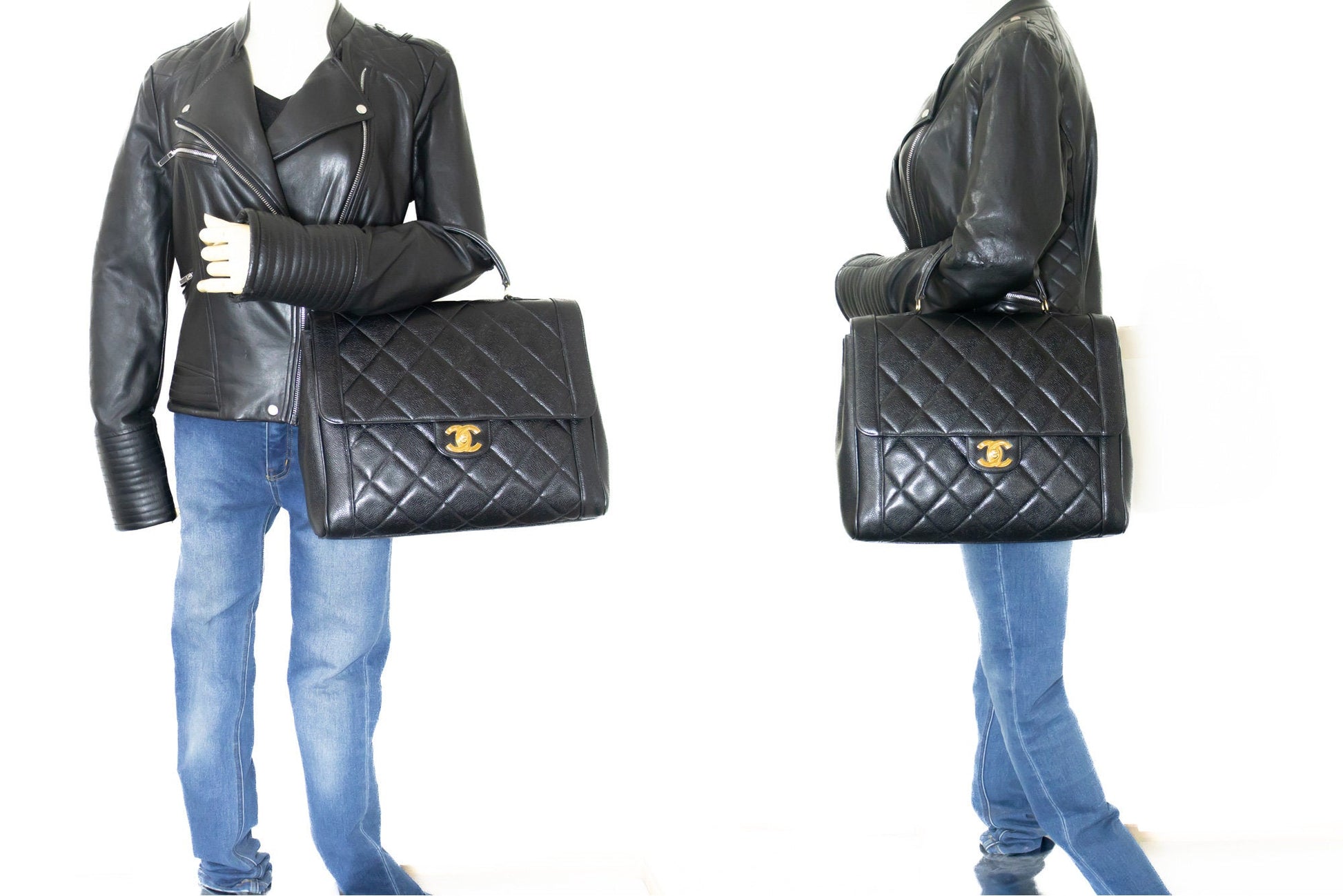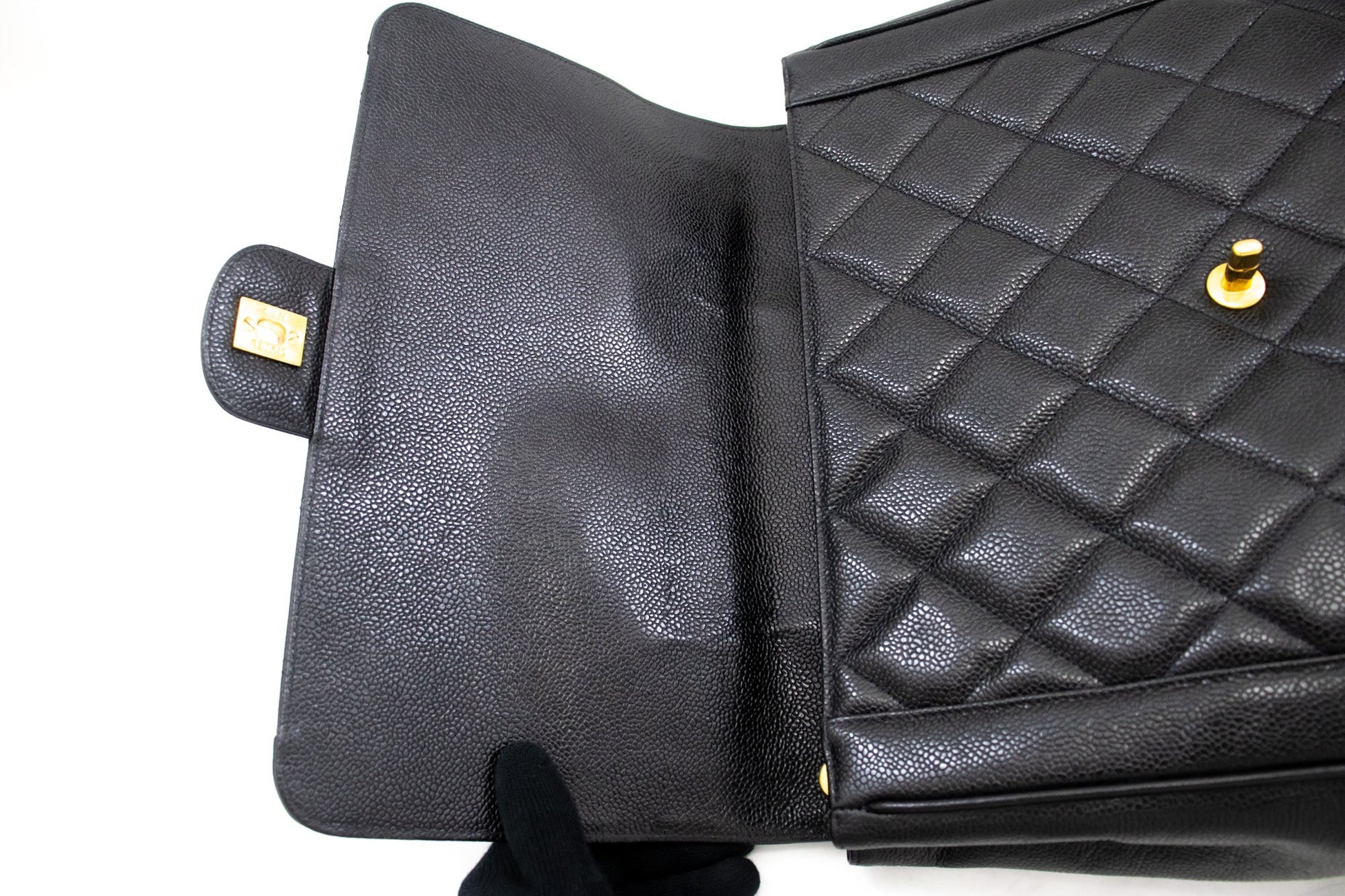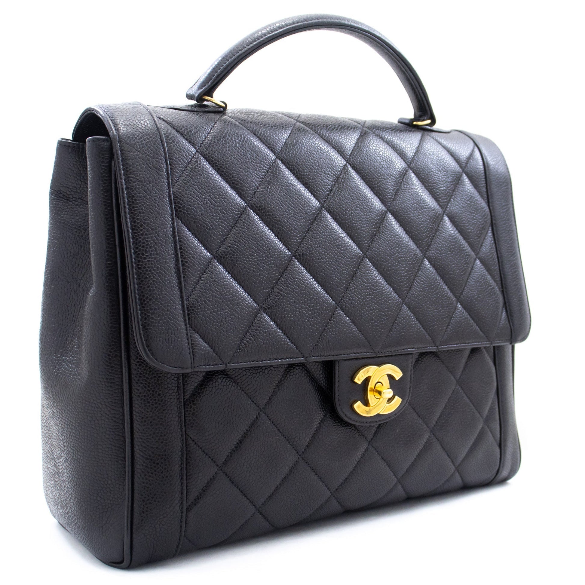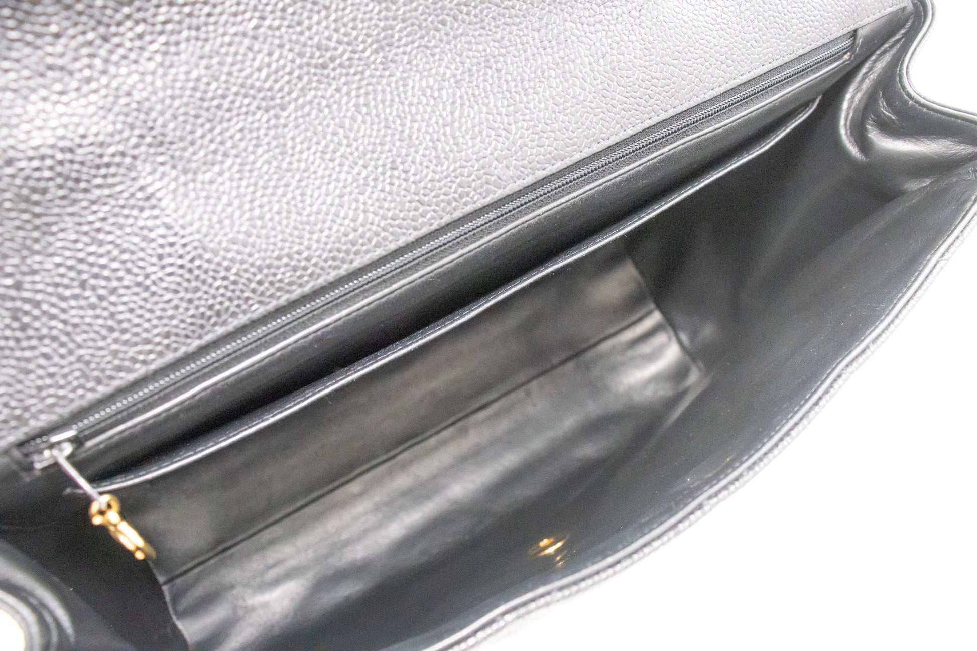 An CHANEL Caviar Handbag Top Handle Bag Kelly Black Flap Leather Gold k75 This item is Vintage / Classic. The year of manufacture would be 1994-1996.