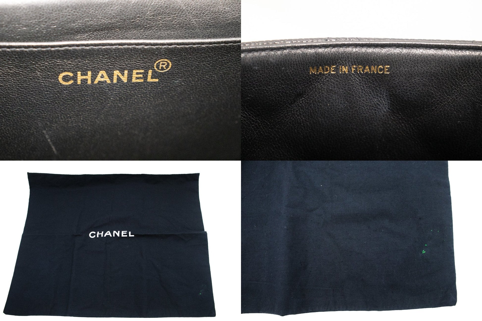 CHANEL Caviar Handbag Top Handle Bag Kelly Black Flap Leather Gold k75