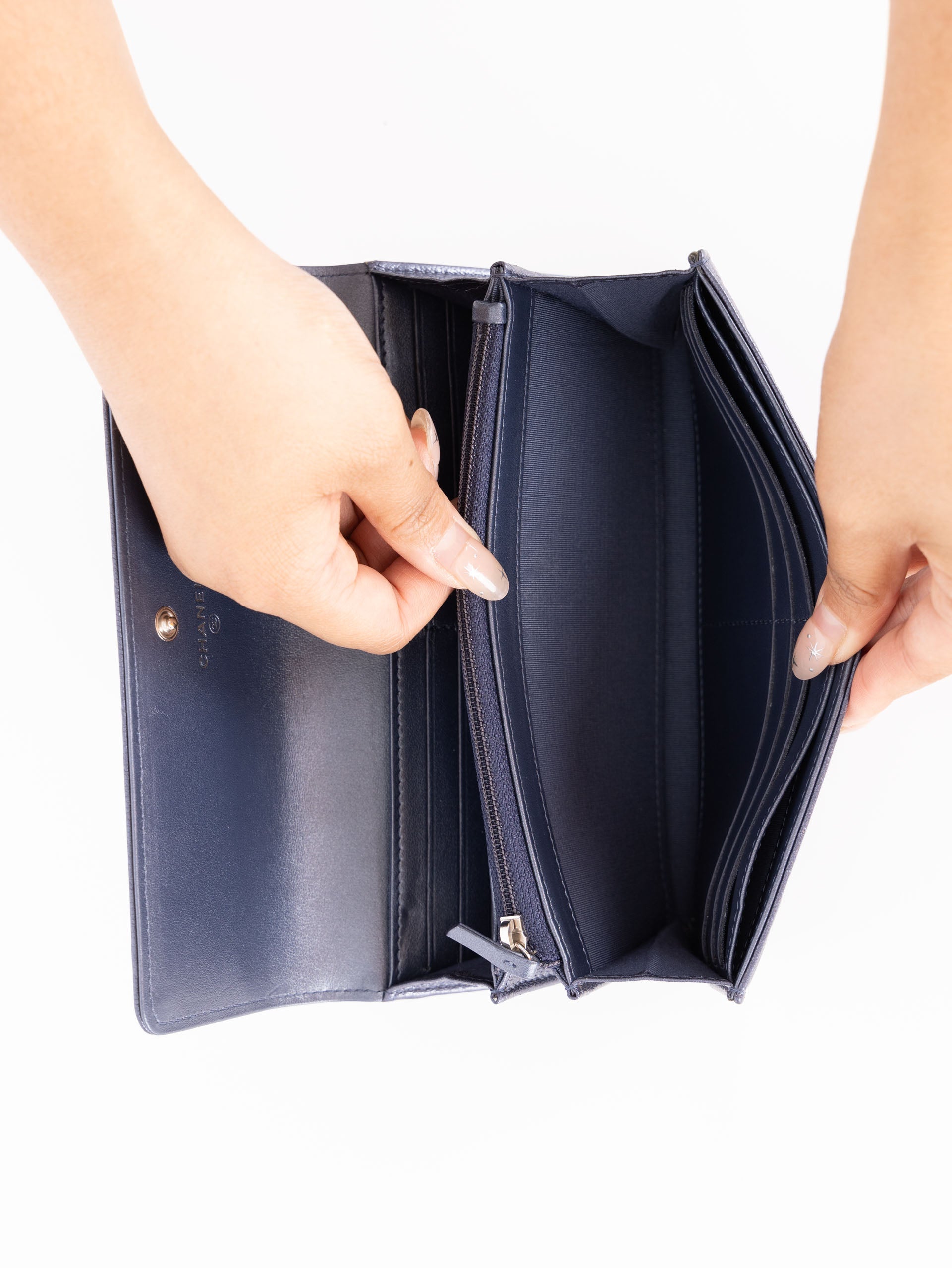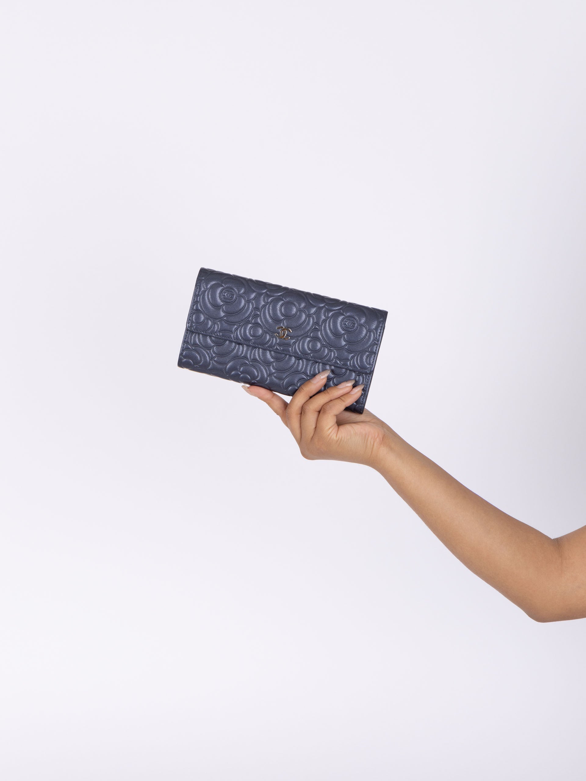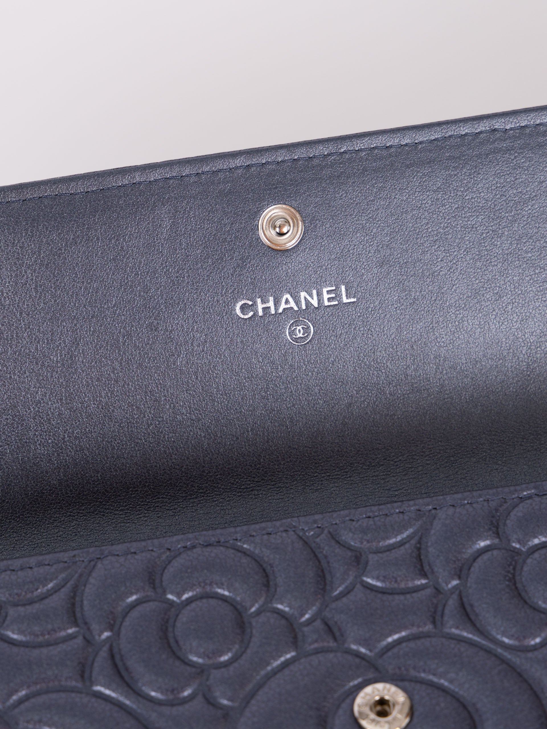 Chanel 2019 Goatskin Iridescent Camellia Wallet w/ Chain