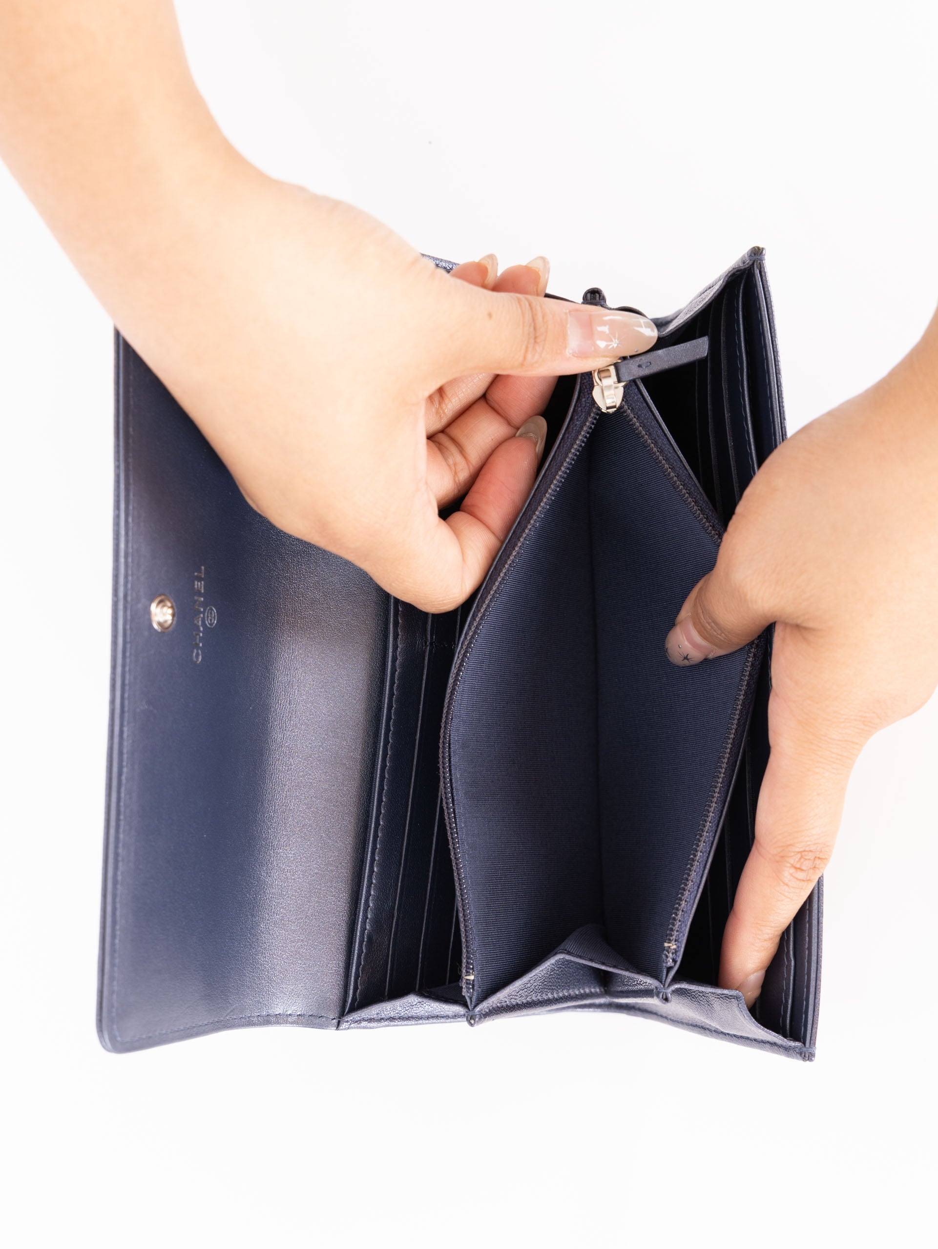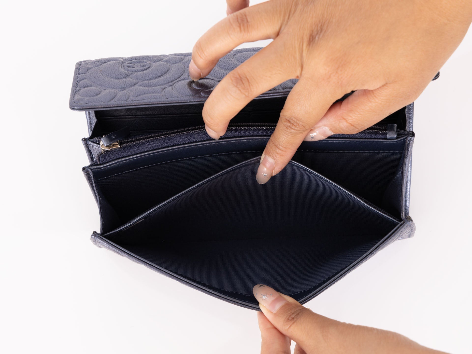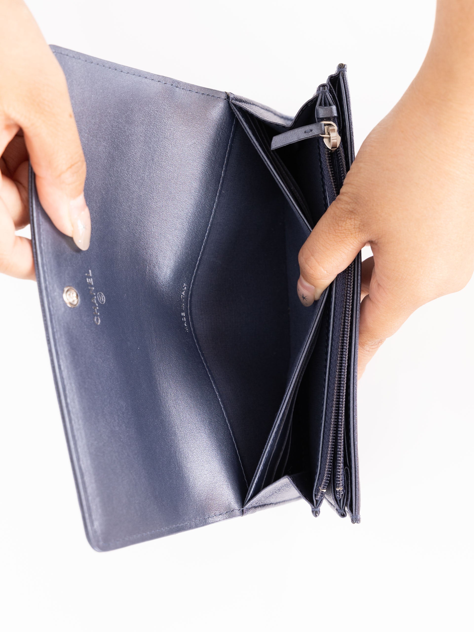 Chanel 2019 Goatskin Iridescent Camellia Wallet w/ Chain