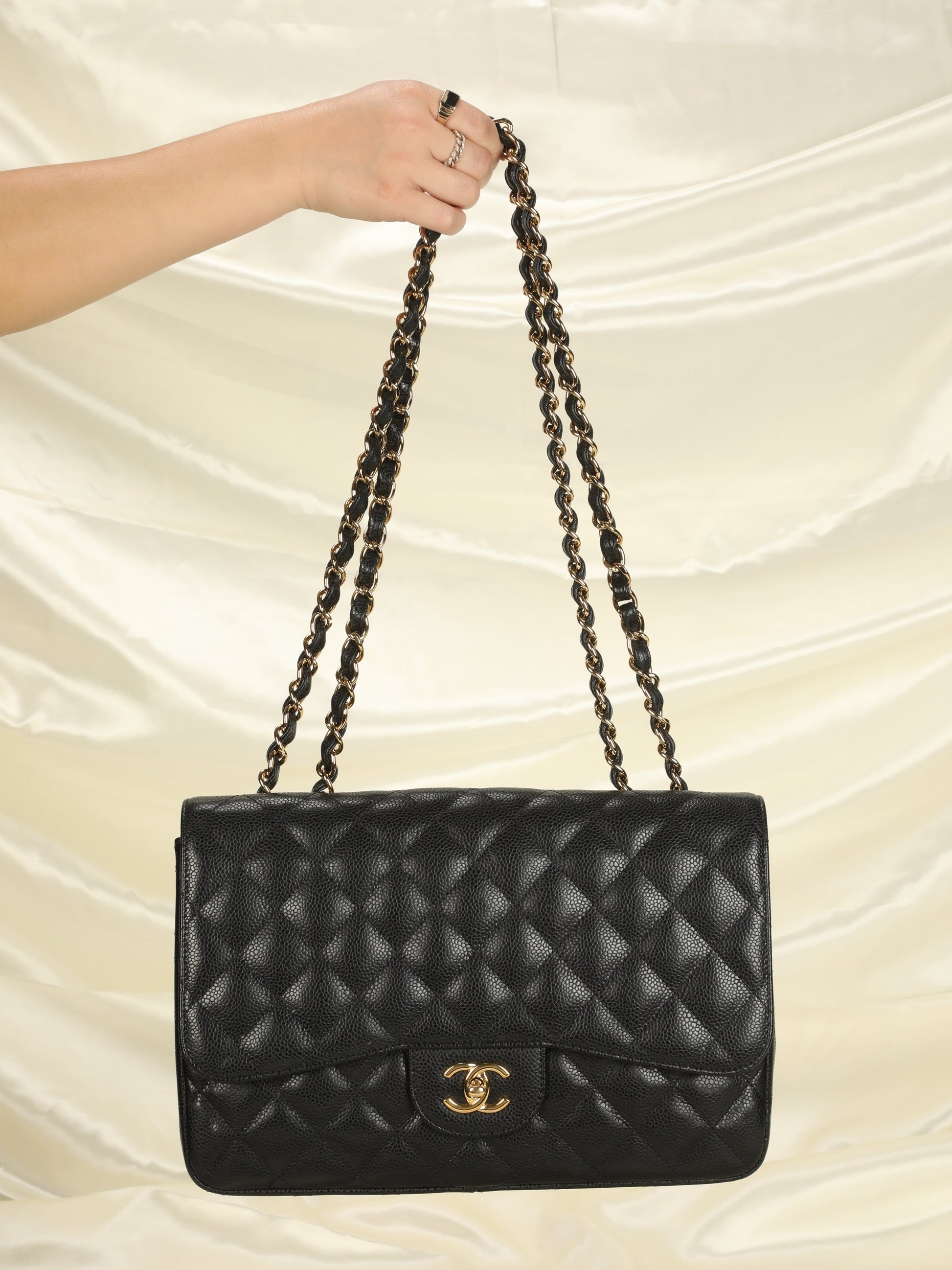 First time sourcing a Chanel Caviar Jumbo classic flap!! An extremely rare gem as the single flap was discontinued in 2014. Single flap allows bag to be lighter to carry vs. double flap.????Exact bag in this condition 7000-9000. Watch my recent IG or TikTok video to see how you can also wear her as a backpack!??