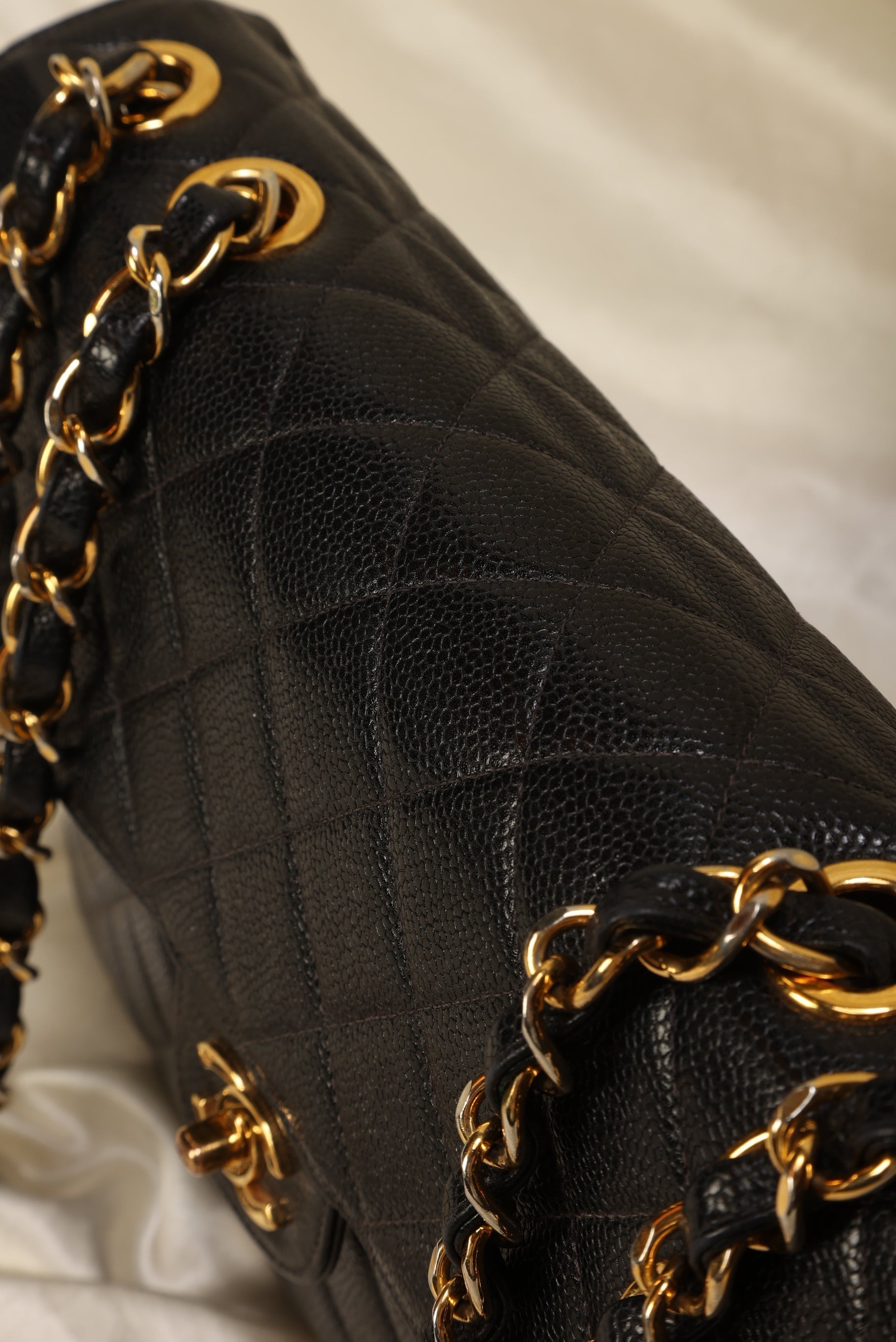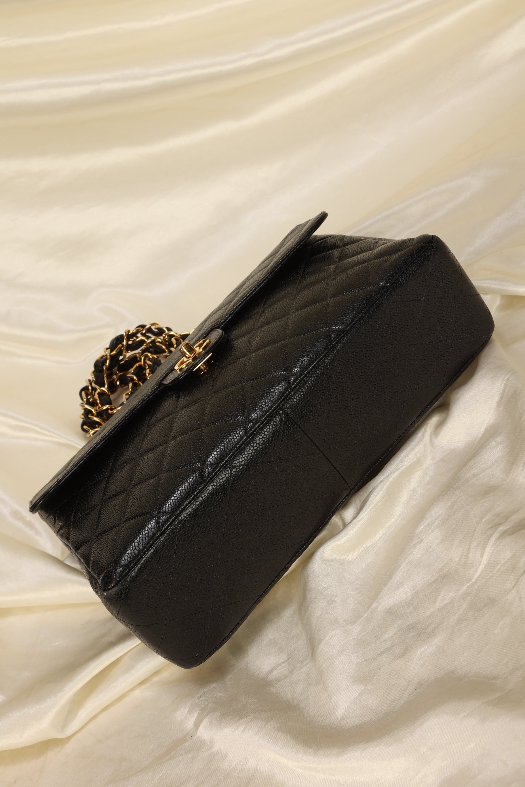 Bringing a rare classic Chanel piece to the shop! A discontinued style- Bag is a single flap, meaning she is lighter than the double flaps.??New investment piece that??can be loved for years to come. Vintage Chanel crafted in the 90's = 24K hardware and the gorgeous caviar leather. Large size allows for maximum space! Don't miss out on this gorgeous find. Bag is 5500-7500!