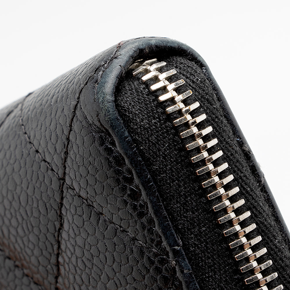 Chanel Caviar Leather CC Zip Around Wallet (SHF-21319)