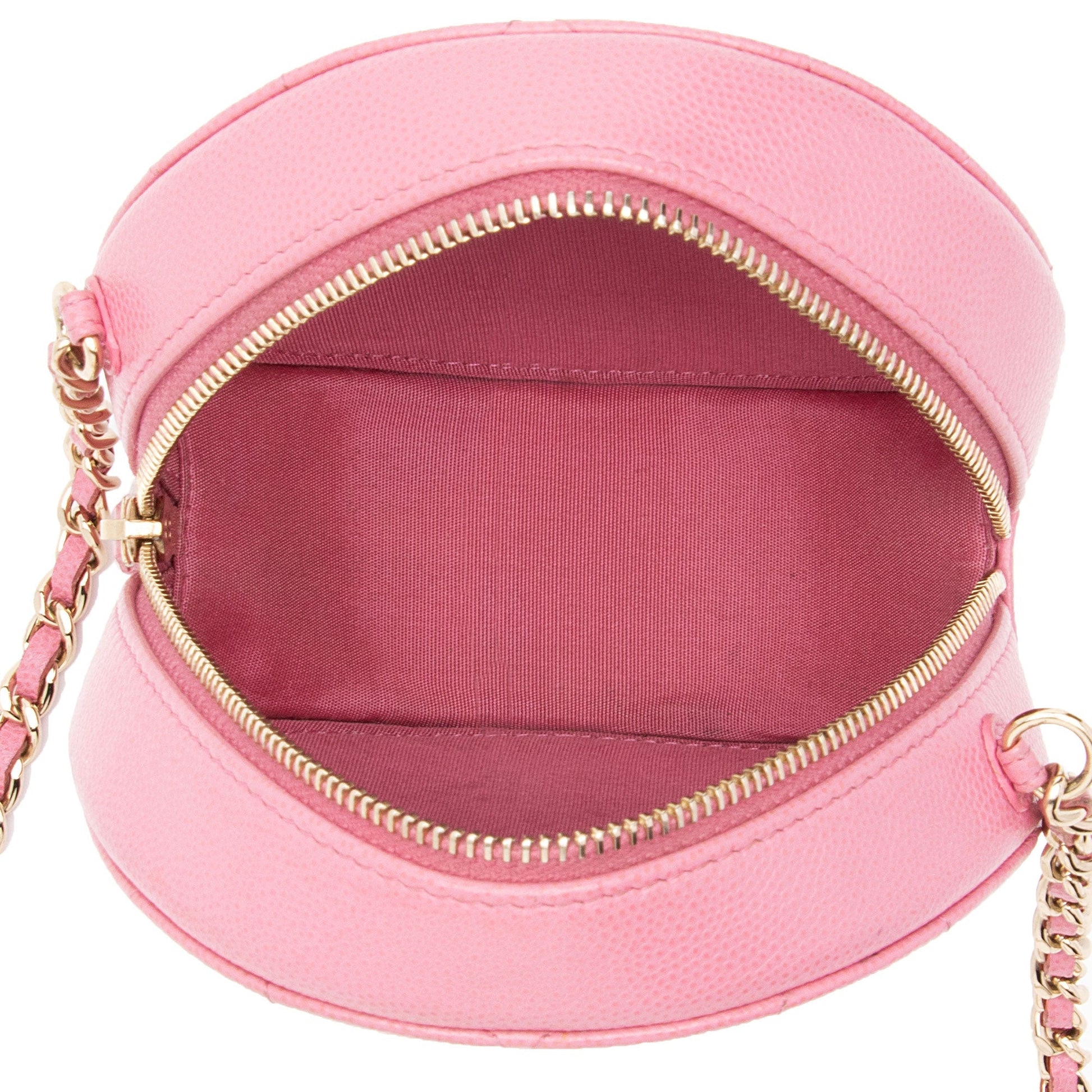 Chanel Caviar Leather Crystal CC Round Clutch with Chain (SHF-FU2AgY)