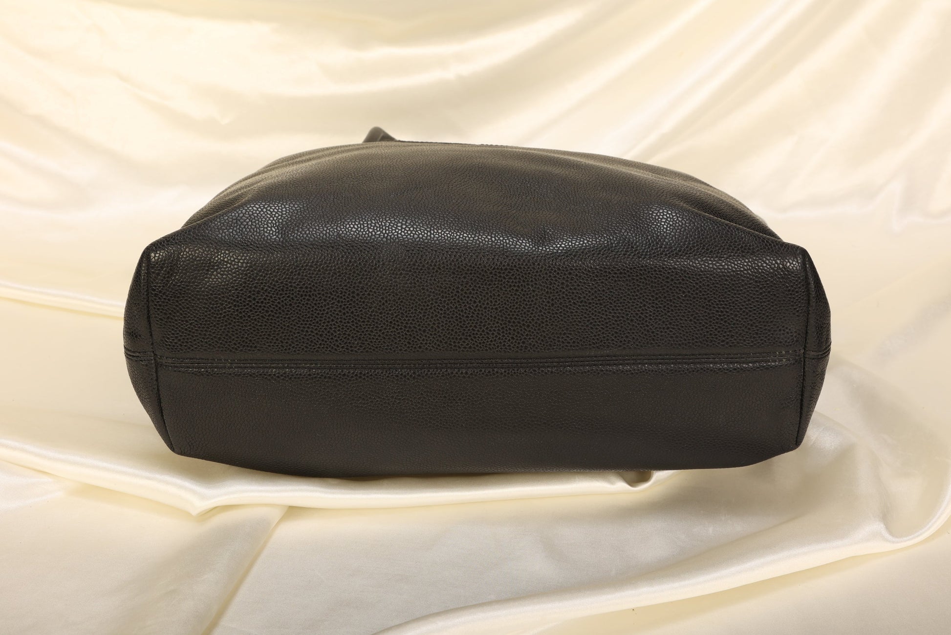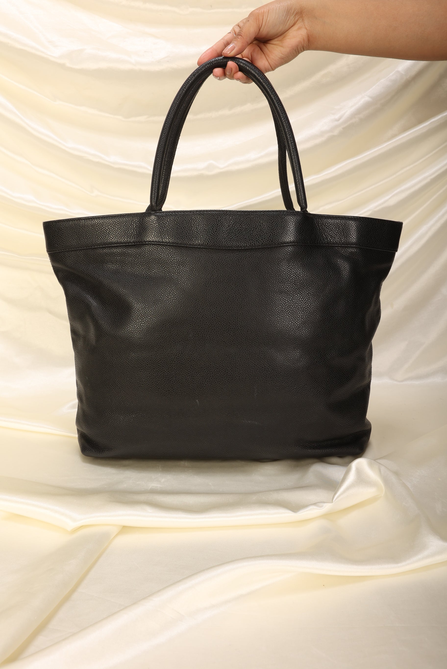 Up for grabs is a stunning Chanel??caviar??tote??bag with beautiful gold chain hardware and 6 Chanel logos all along the bottom. Chanel ball charm as zipper pull. New size allows this piece to be a great outing bag. A classic piece to enjoy for years!