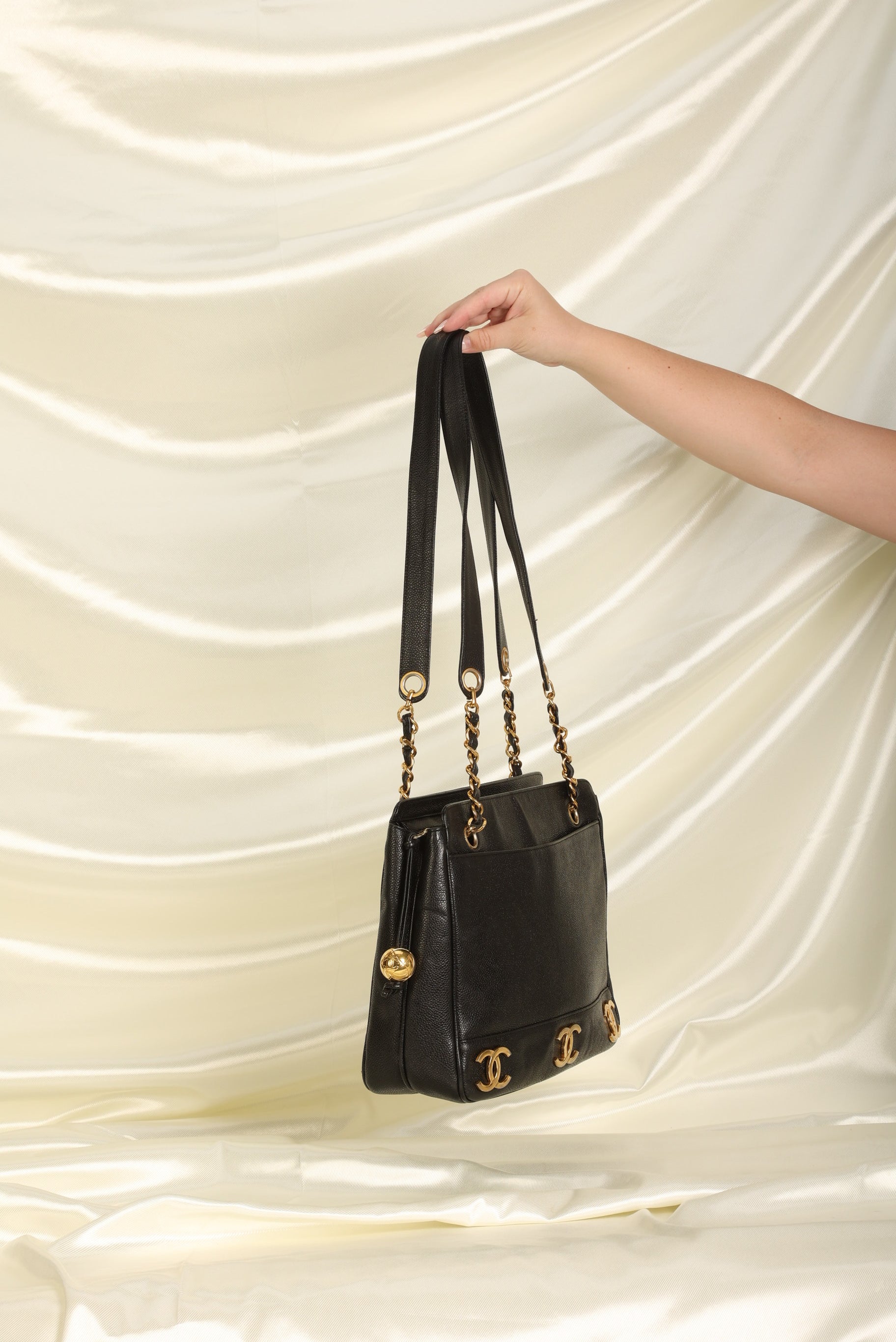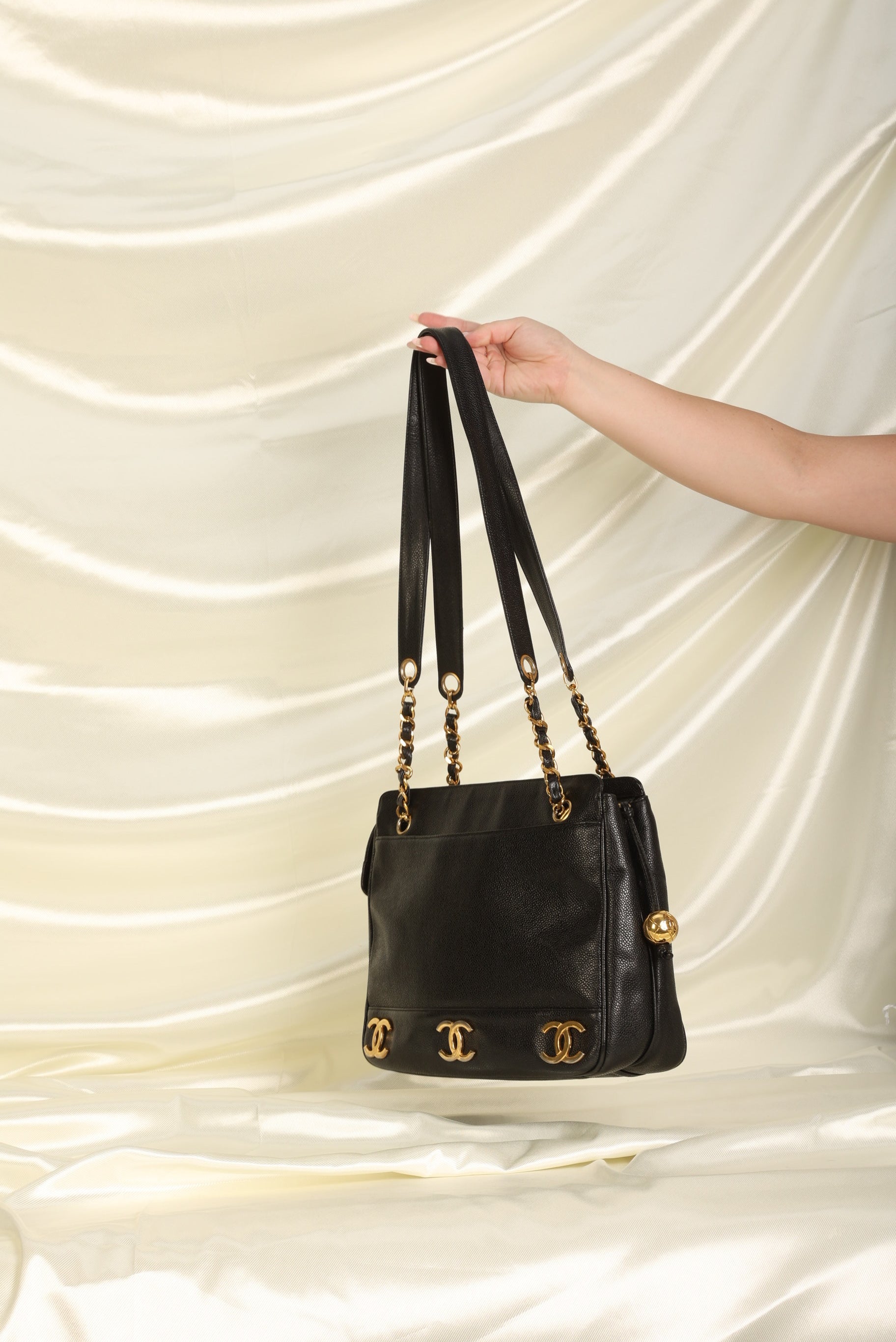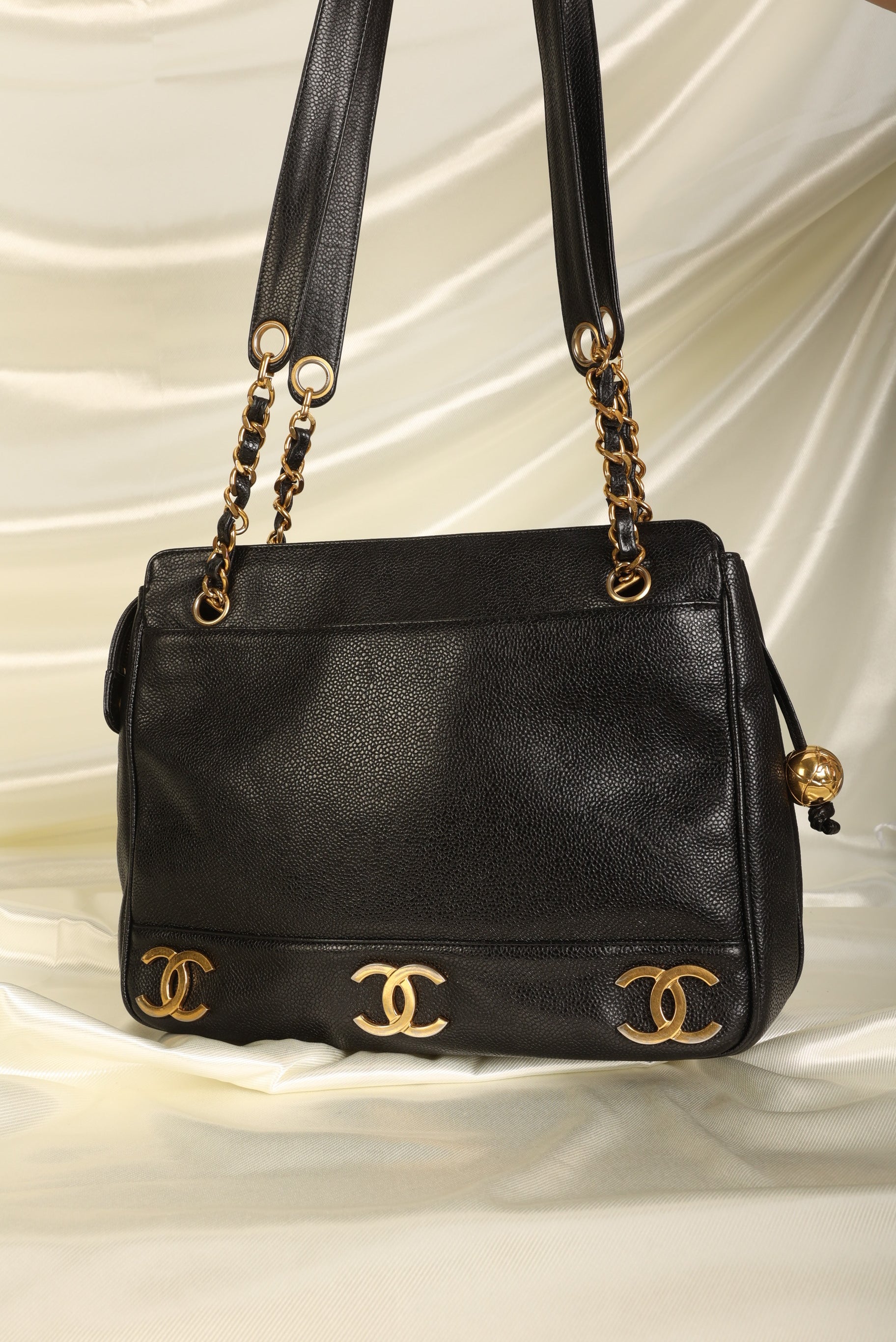 Up for grabs is a stunning Chanel caviar tote with beautiful gold hardware. Eight Chanel logos are featured on the bottom of all sides. Perfect size allows this piece to be a great outing bag, yet can still fit an iPad. A classic piece to enjoy for years to come.
