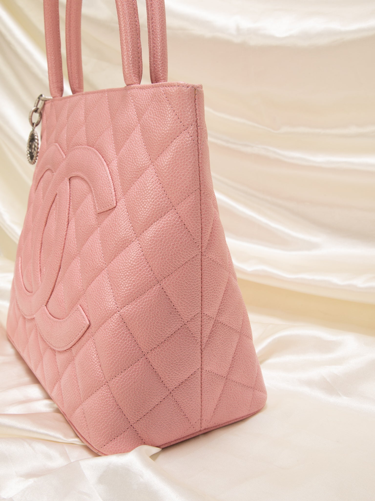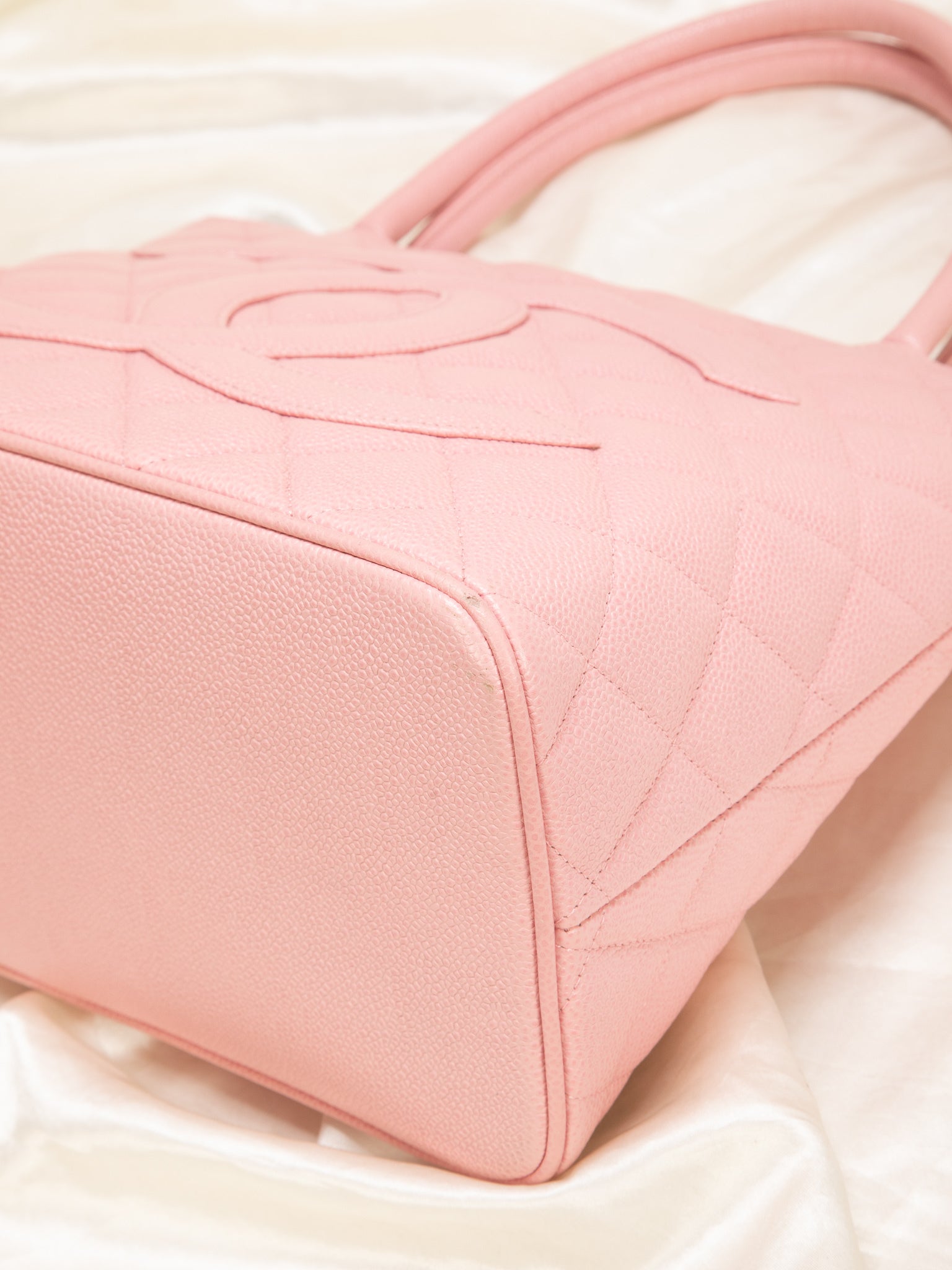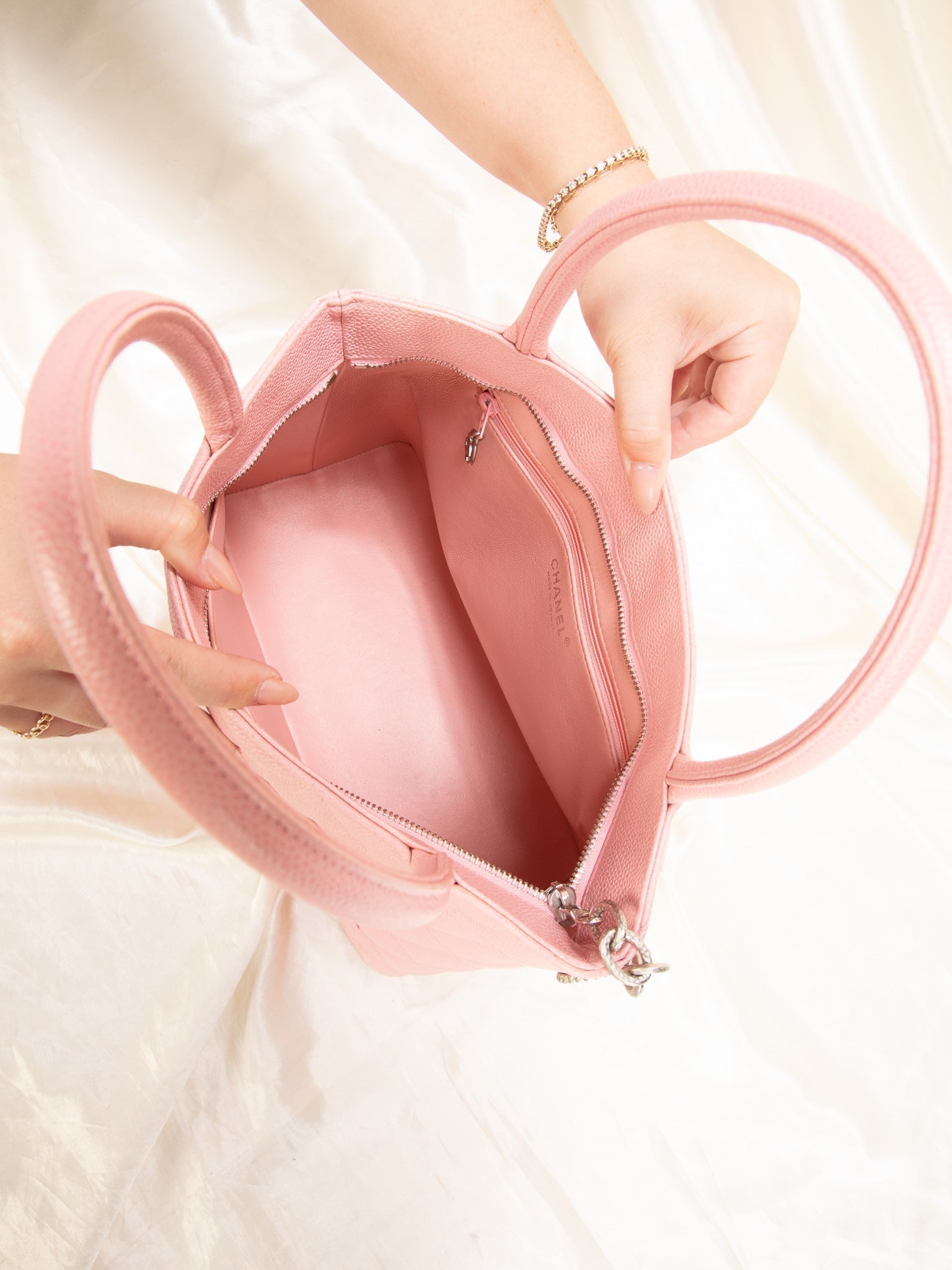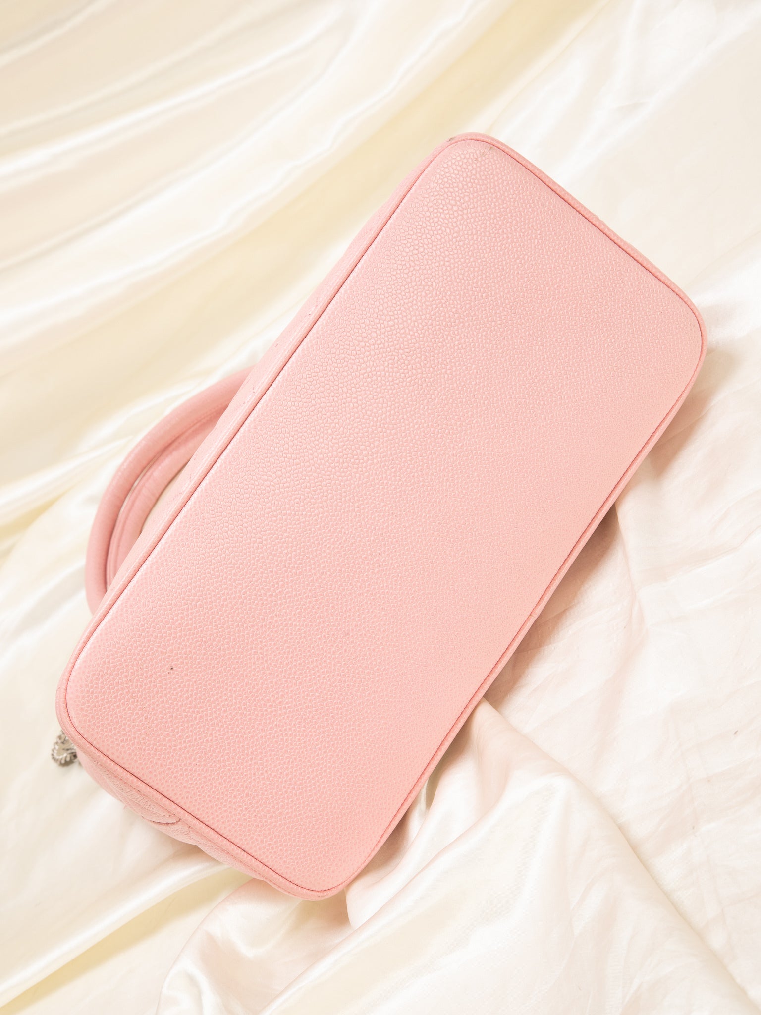 One of Chanel's most classic and popular styles. but in the rare bubblegum pink. ??Beautiful large silver??Chanel charm??as the zipper pull. Caviar leather allows for extreme durability. A classic collector's piece to enjoy for years!