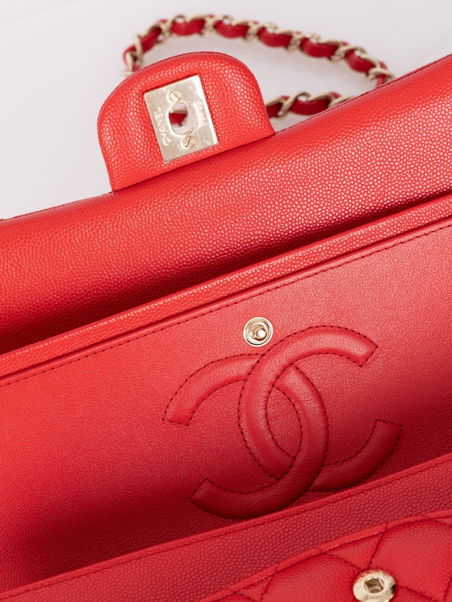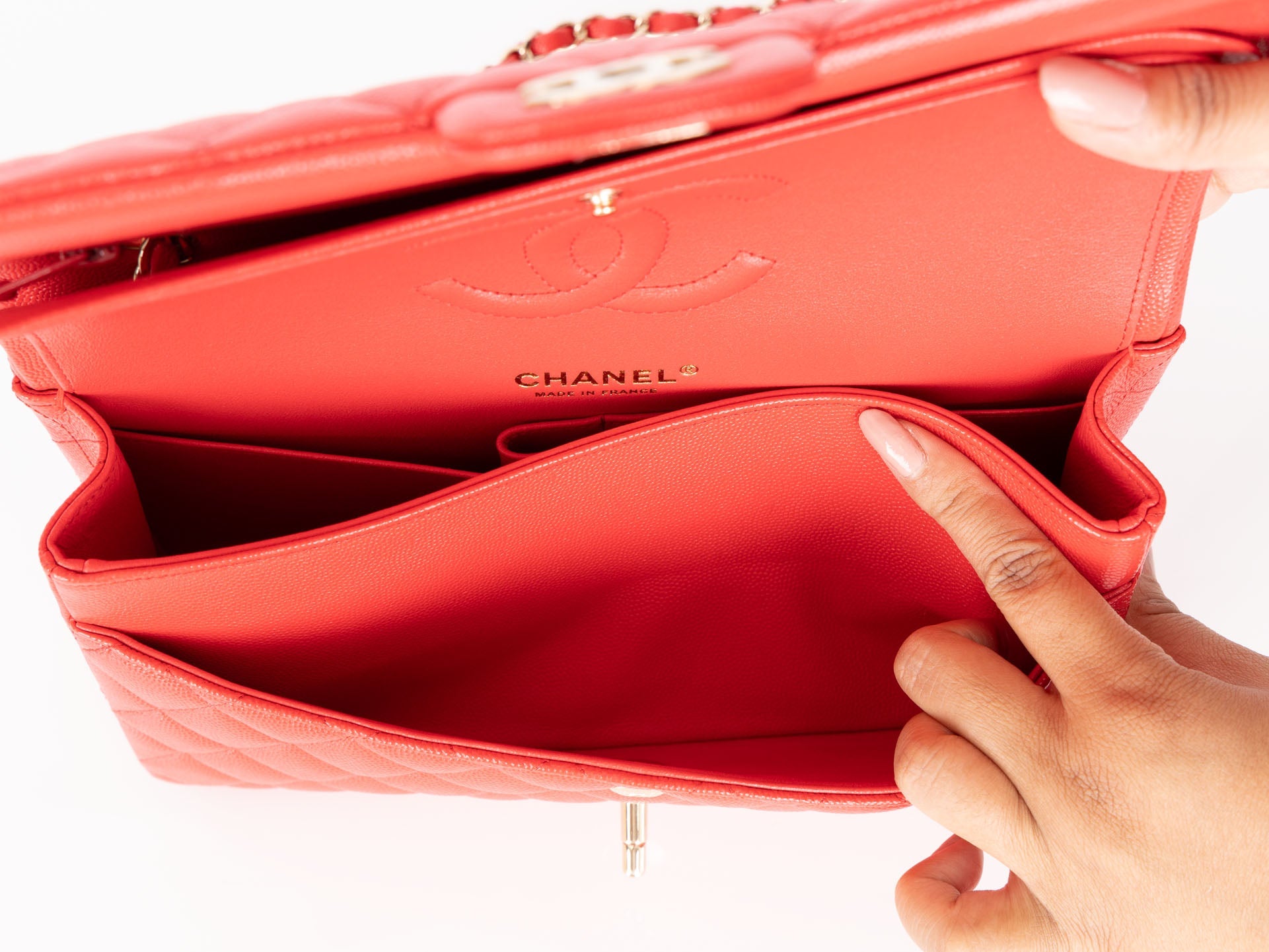 Dropping in the shop is a stunning, durable classic Chanel Caviar Small Double Flap in gorgeous cherry tomato with gold hardware! An New investment piece that can be loved for years to come.