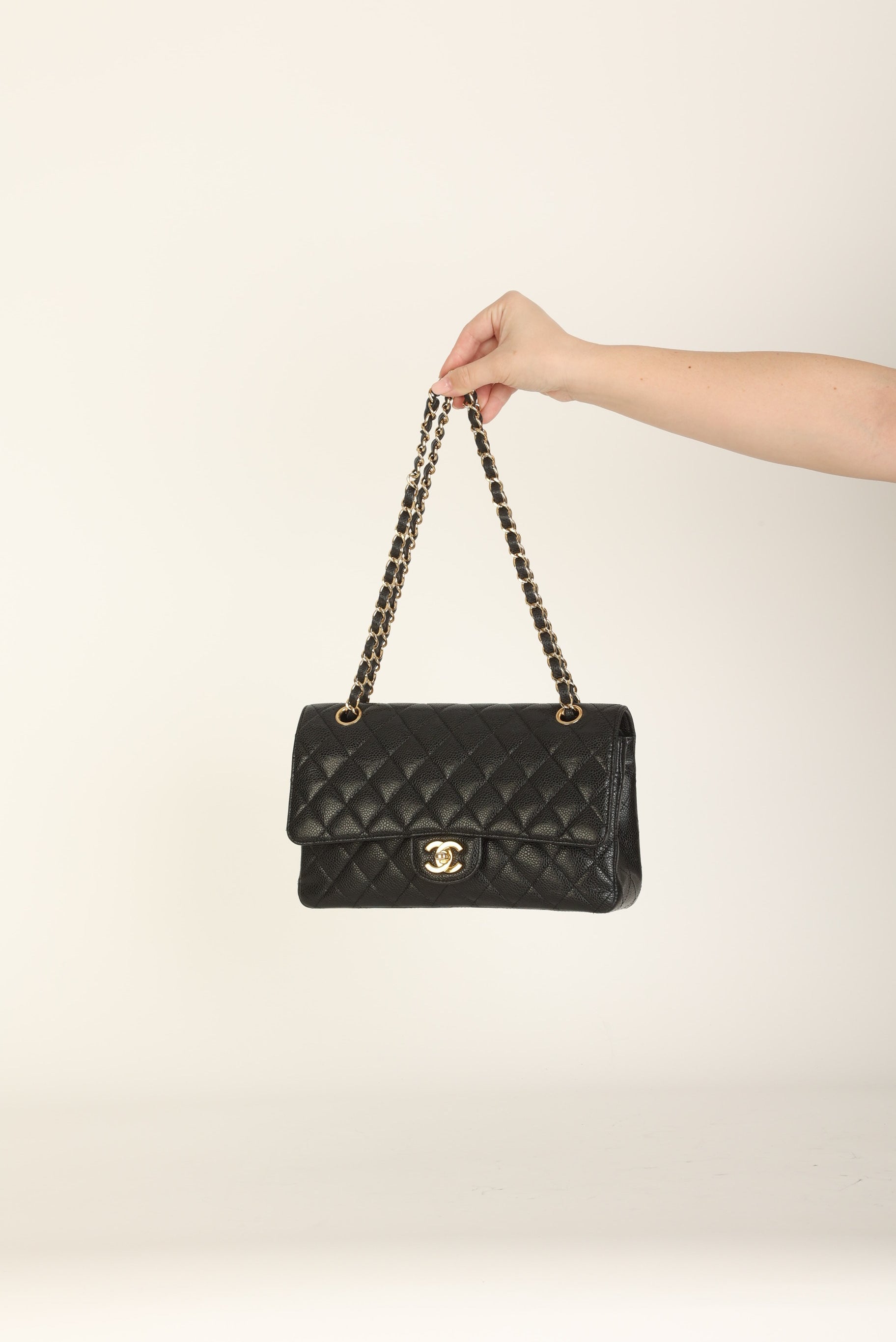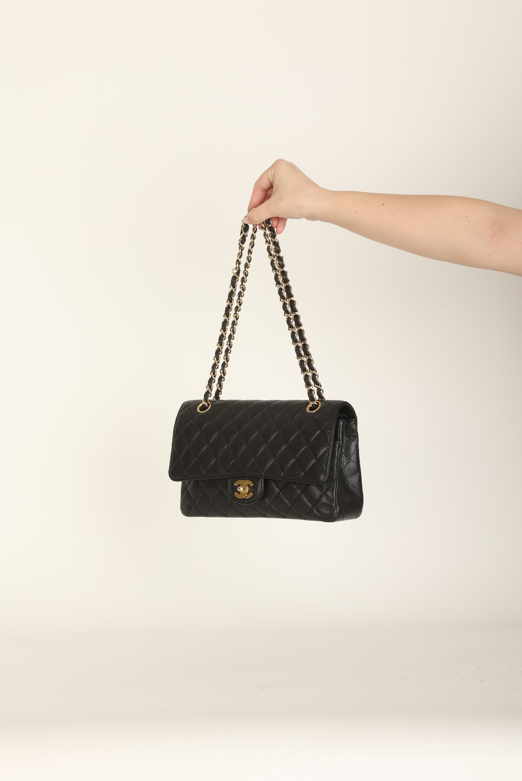 Dropping in the shop is?the Caviar Classic Medium Double Flap! This gold and caviar combo is the most popular size?and highly coveted! This extremely versatile piece can be as a long or short shoulder bag.?You can fit your phone, wallet, keys, sunglasses, and a few other smaller essentials.?