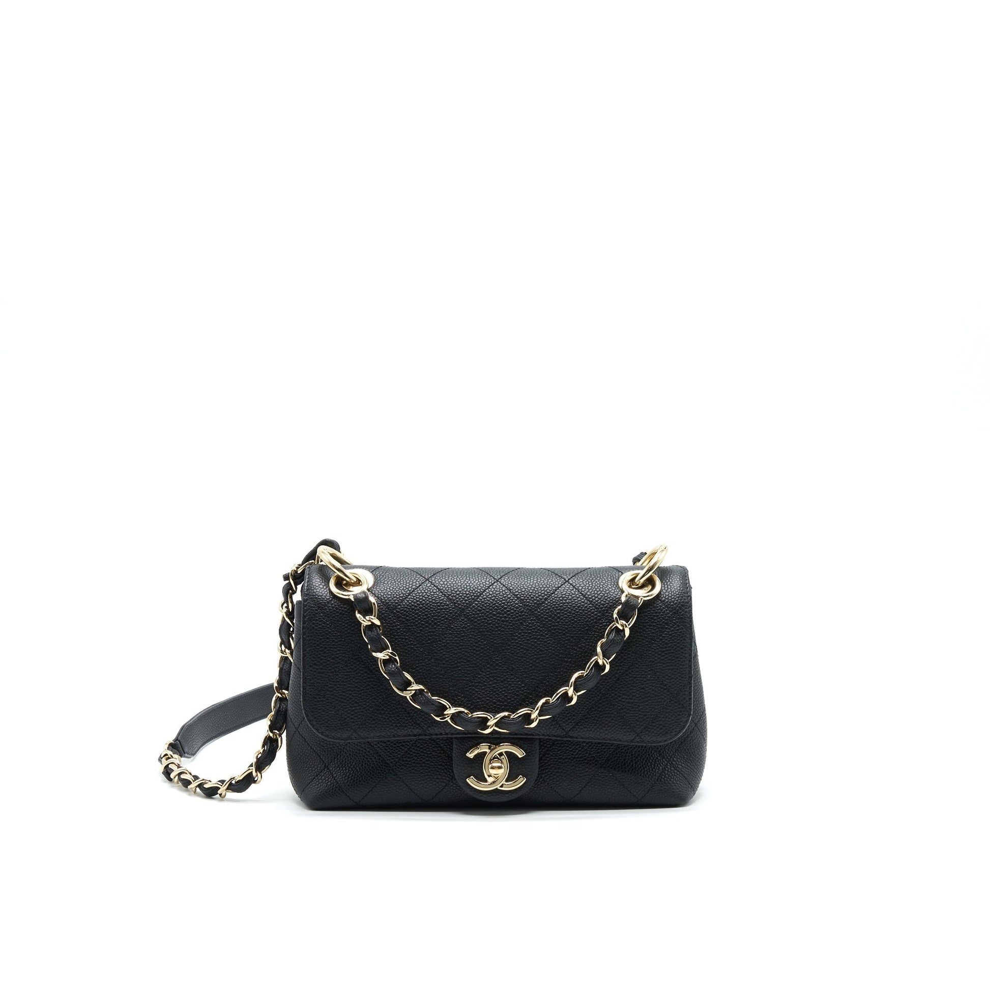 Chanel Caviar quilted flap Bag with handle and Chain Black LGHW