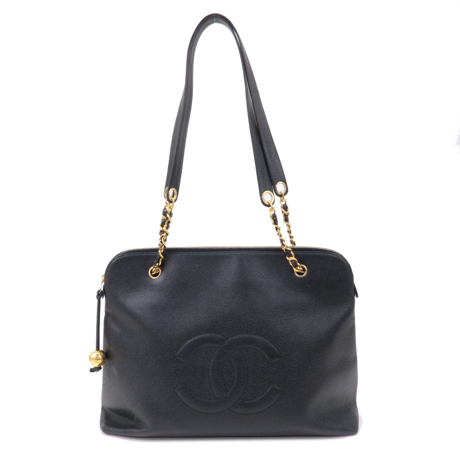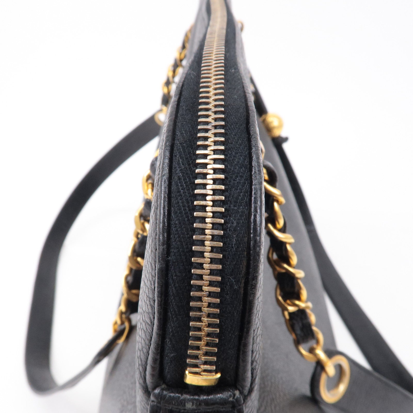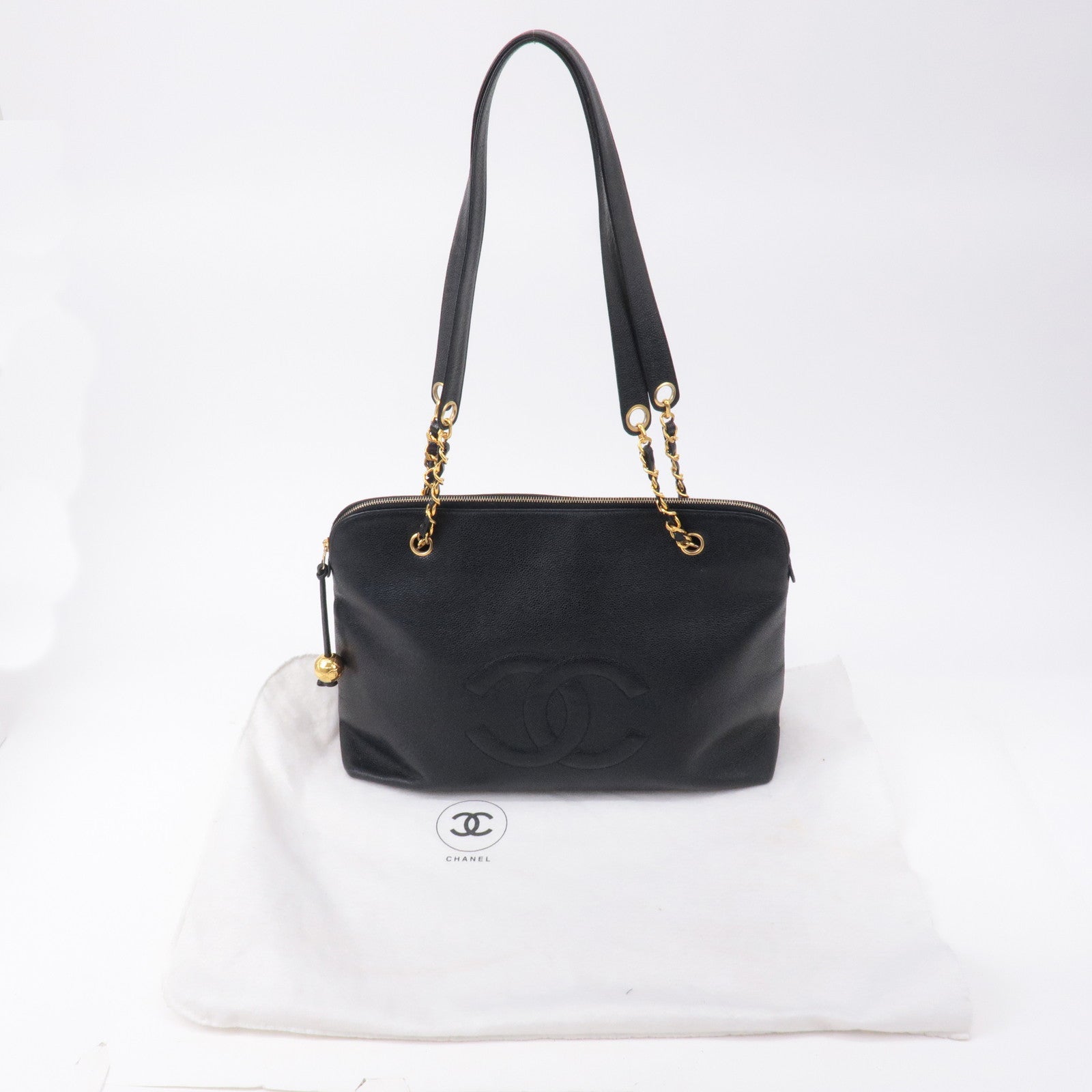 CHANEL Caviar Skin Chain Tote Bag Black Gold Hardware A03578