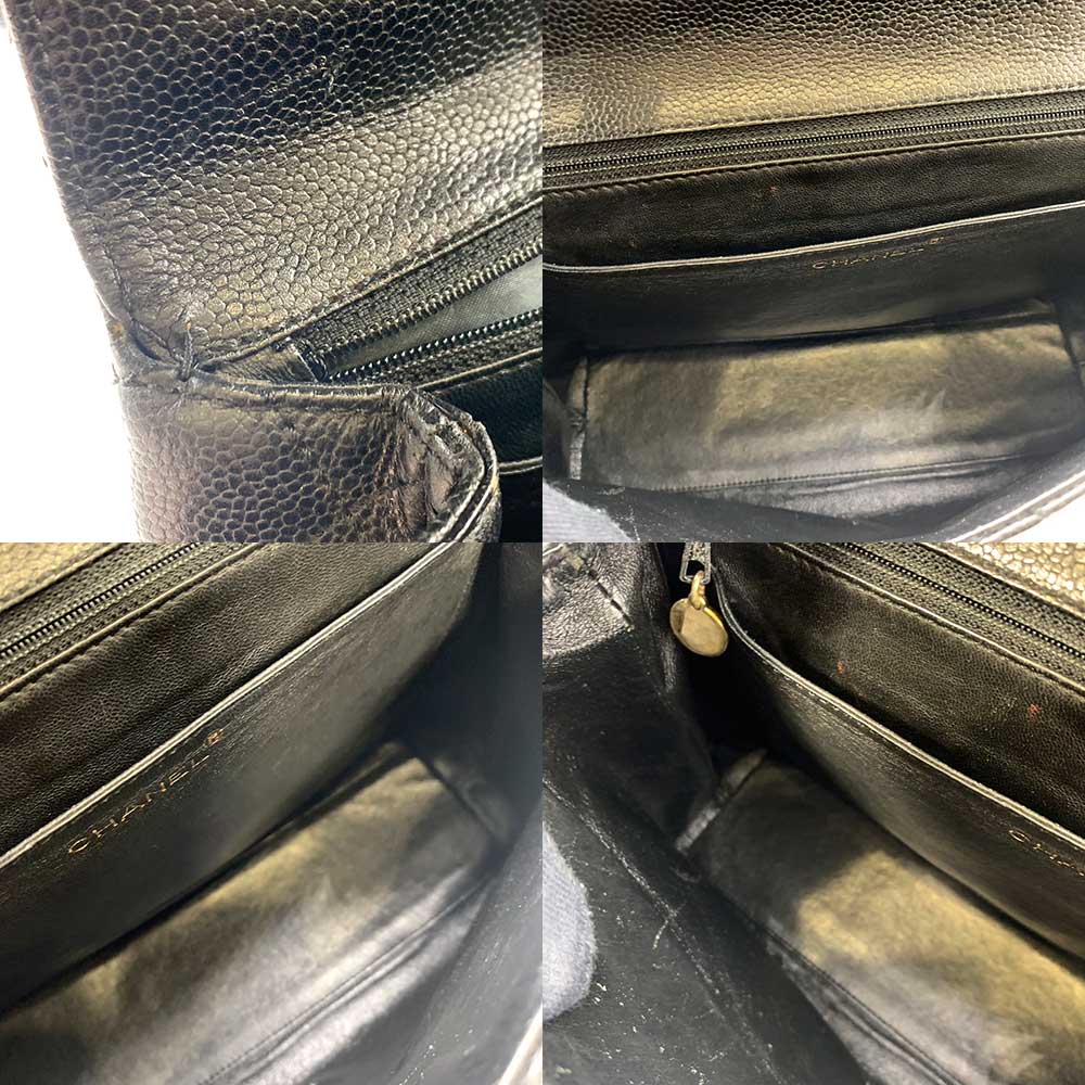 Item name : Chanel Caviar Skin Kelly Handbag Black Gold Hardware