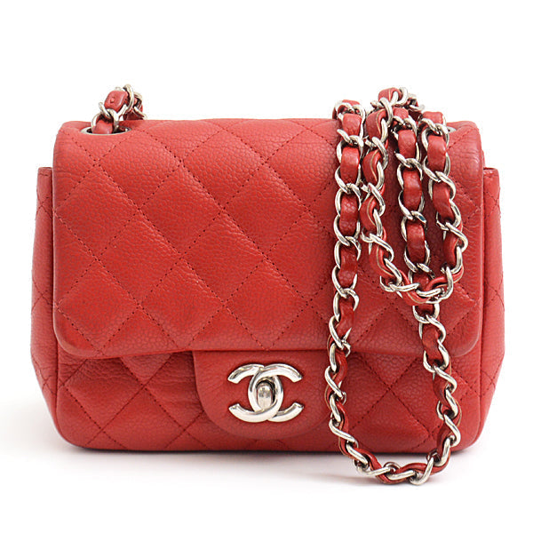 Chanel Red Caviar Skin Mini Matelasse Chain Bag