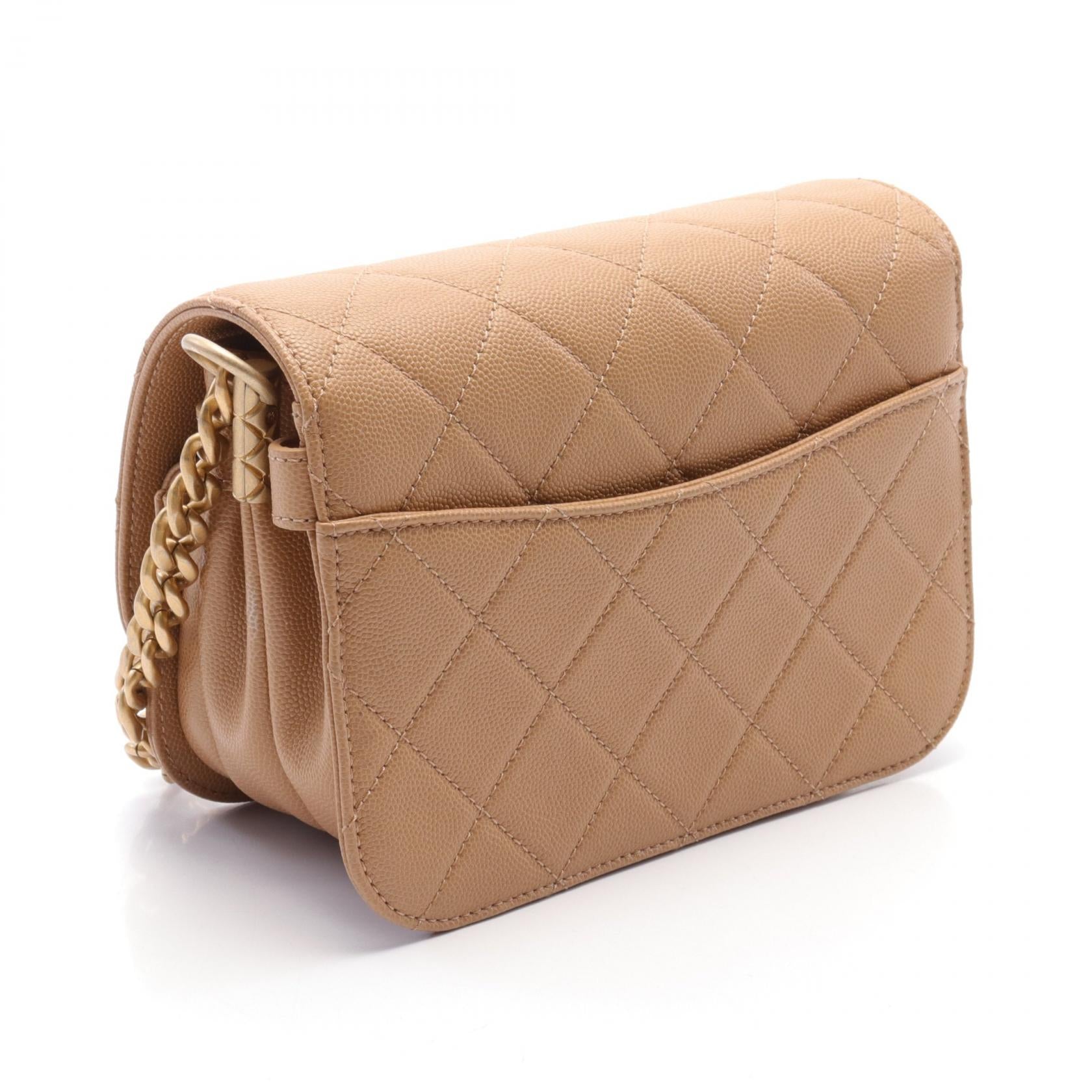 Chanel Caviar Skin Matelasse Shoulder Bag Beige